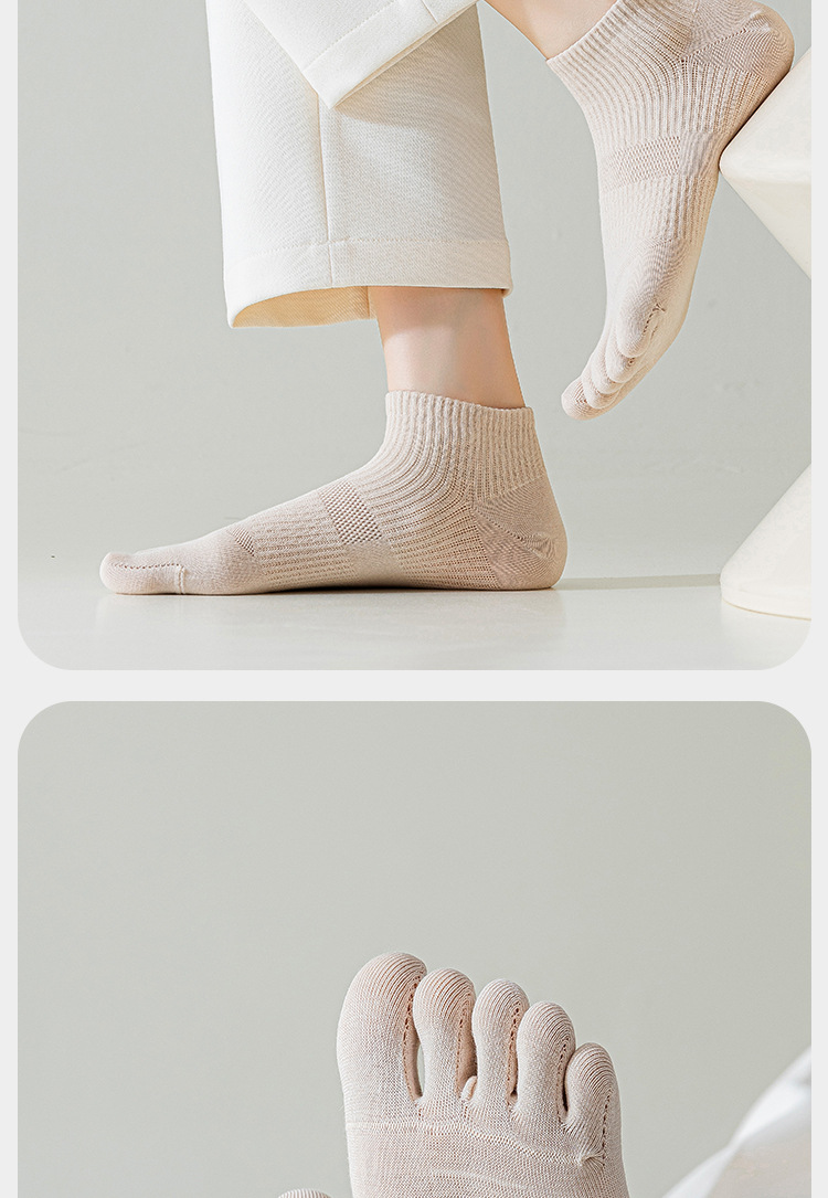 공장 직접 단색 항균 5 손가락 양말 여성용 면화 발가락 양말 봄과 여름 통기성 땀 흡수 스포츠 5 손가락 보트 양말스토어 가기