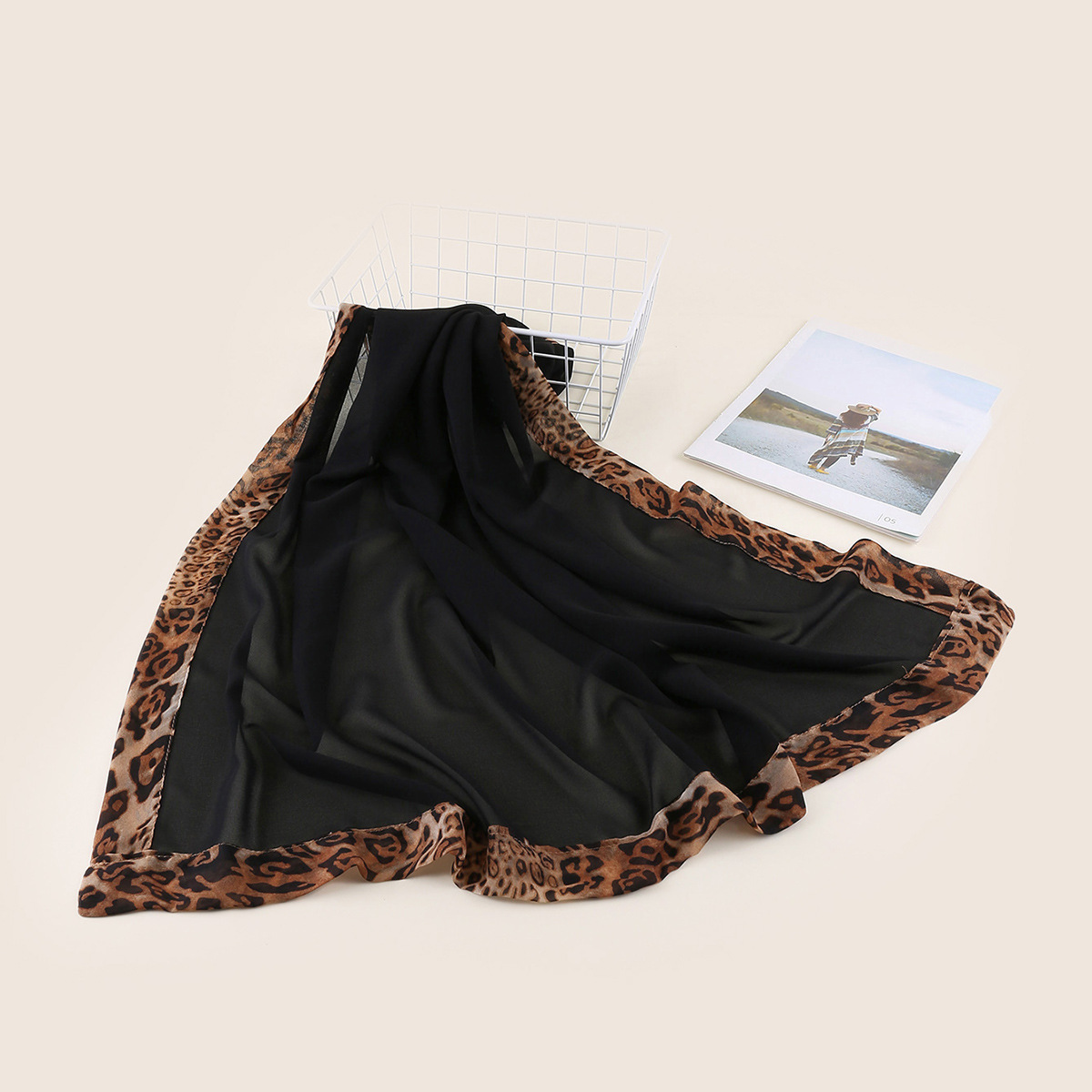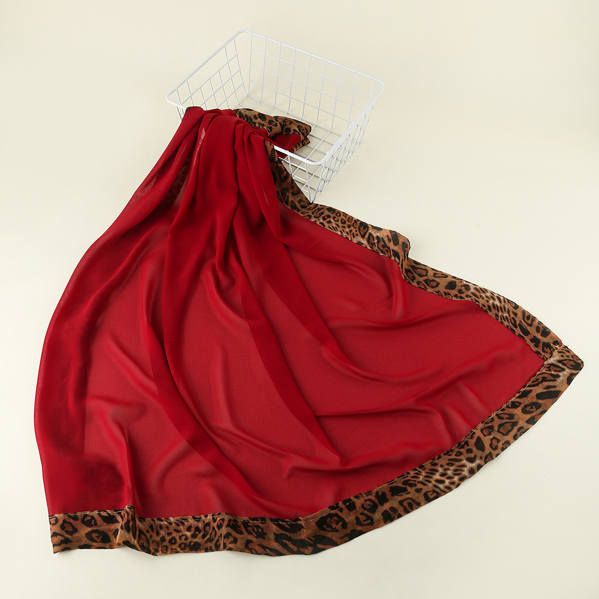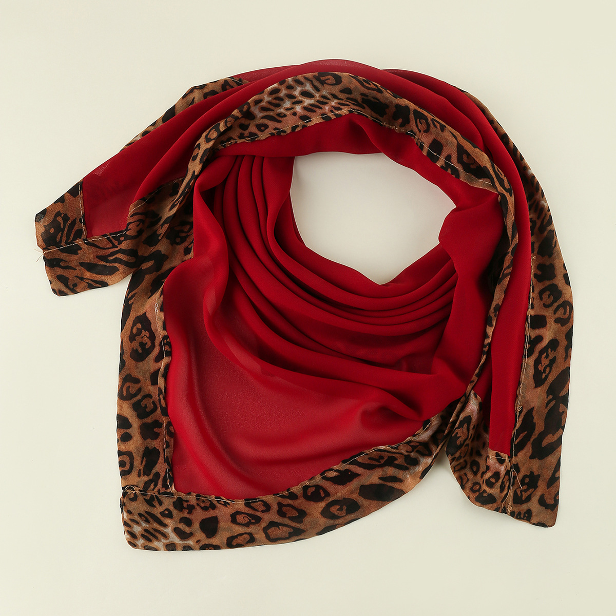 A044 진주 쉬폰 레오파드 무늬 스티칭 스퀘어 스카프 내셔널 스타일 스카프 커버 스카프 일반 색상 단색
