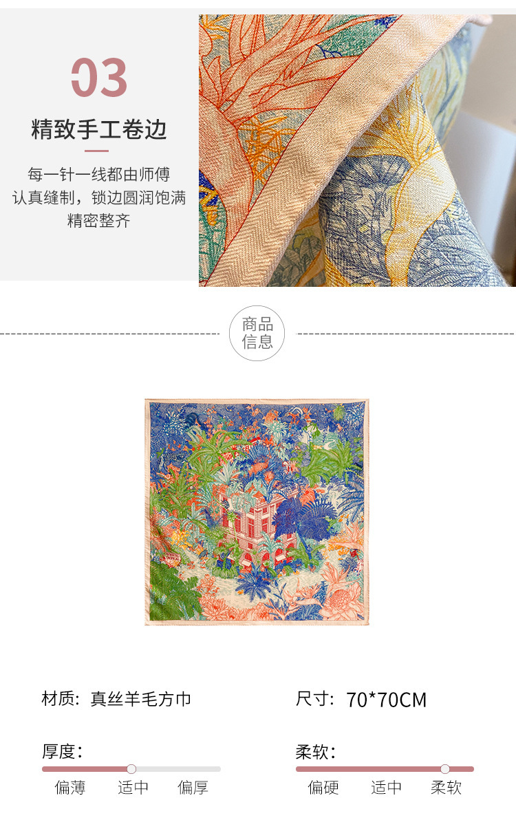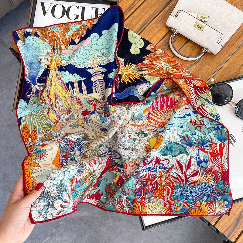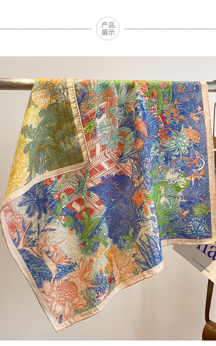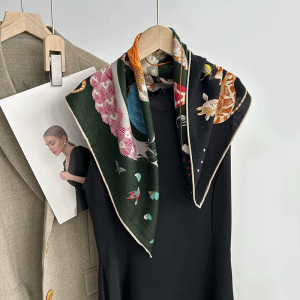 열대 정글 양면 실크 울 스퀘어 겨울 새로운 따뜻한 숄 라이트 럭셔리 스카프 여성용 목 스카프스토어 가기