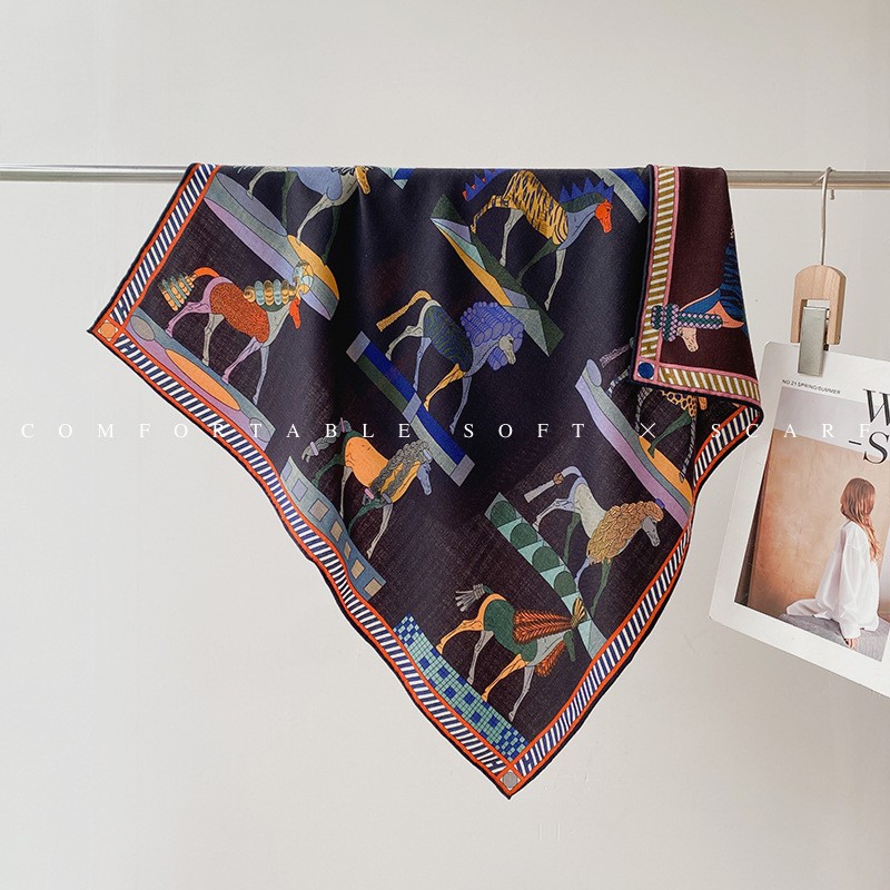 열대 정글 양면 실크 울 스퀘어 겨울 새로운 따뜻한 숄 라이트 럭셔리 스카프 여성용 목 스카프