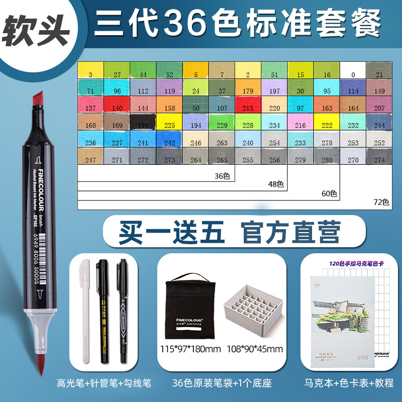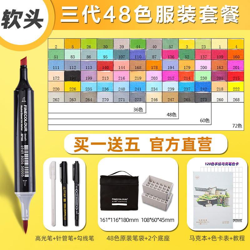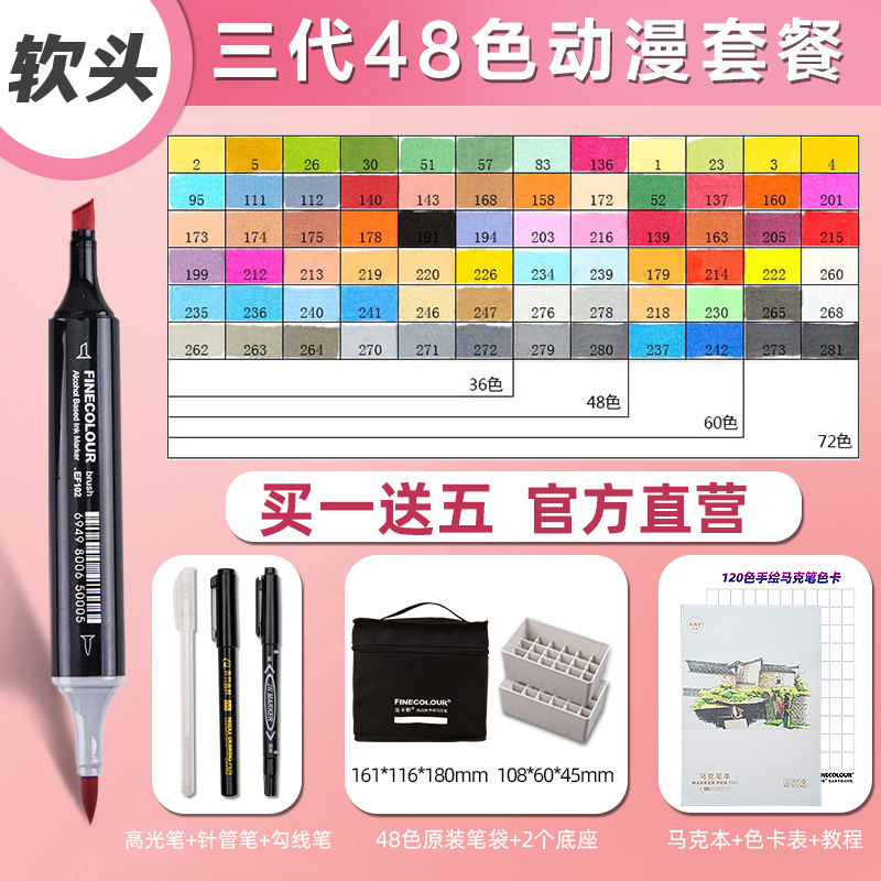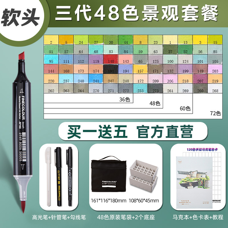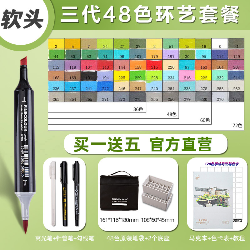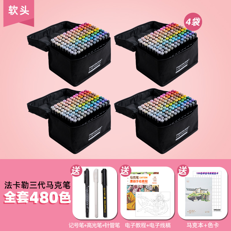 페이칼 마커 펜 3 세대 세트 FINECOLOUR 소프트 헤드 3 세대 알코올 오일 480 컬러 마커 펜 풀 세트스토어 가기