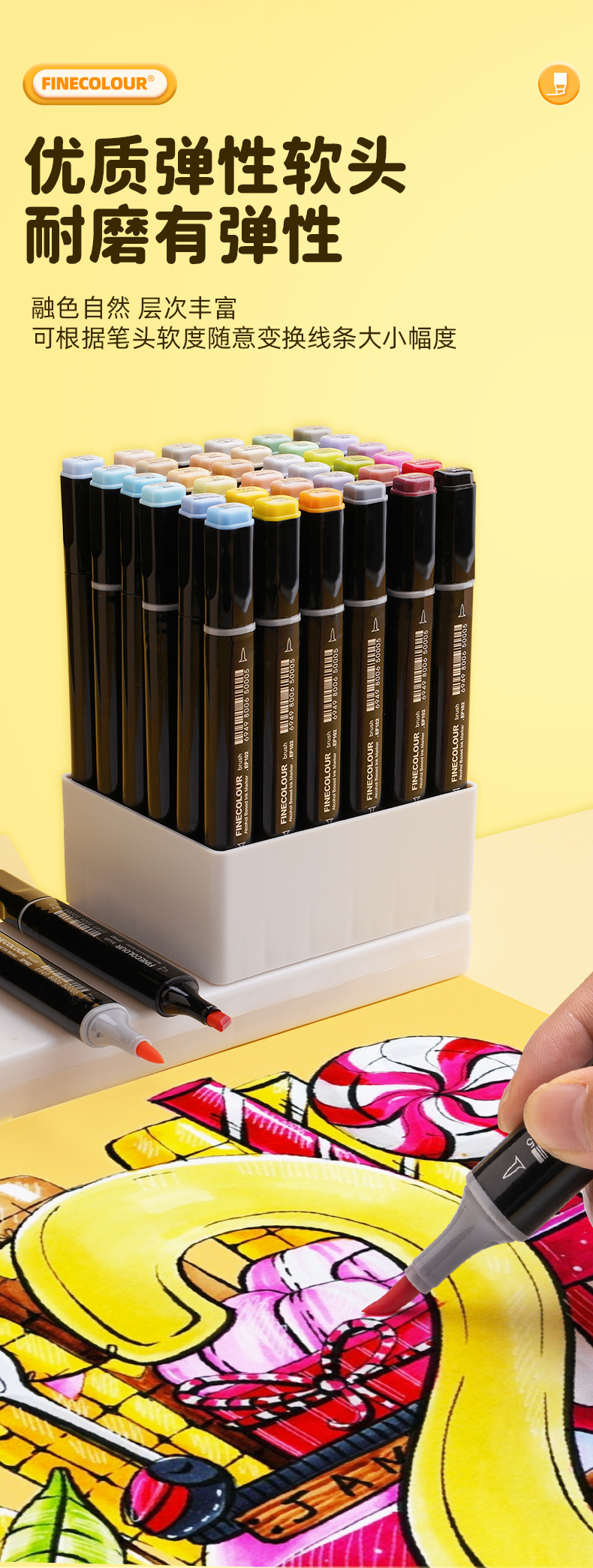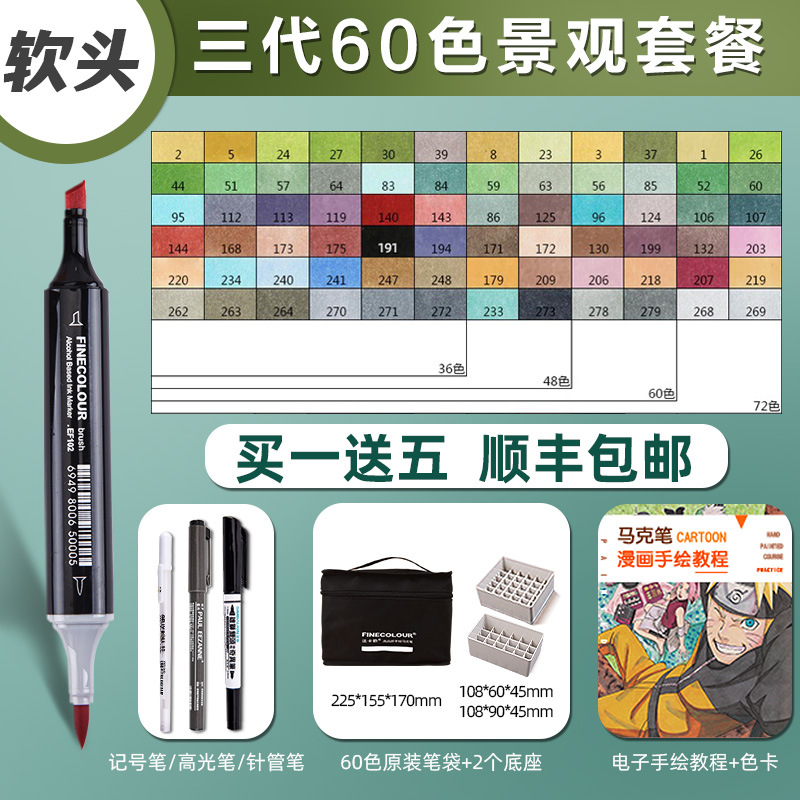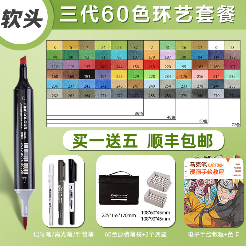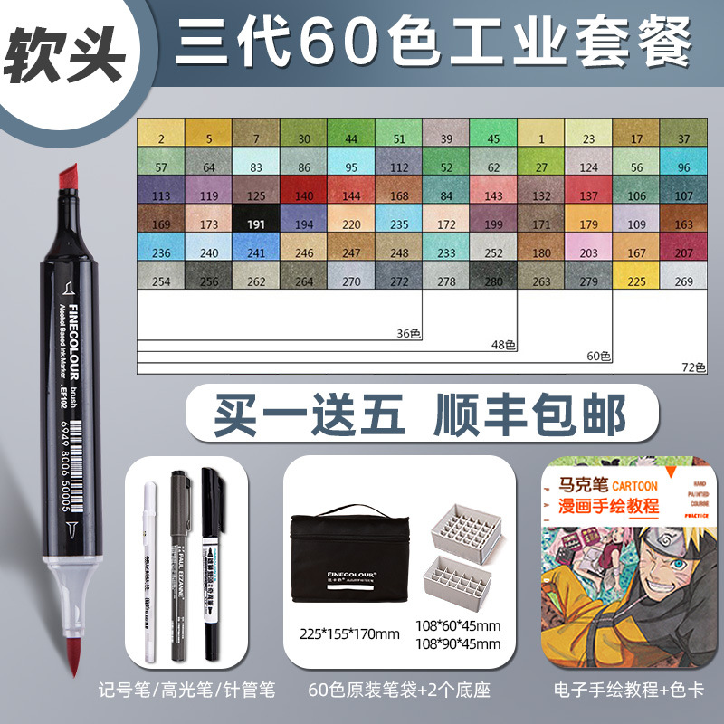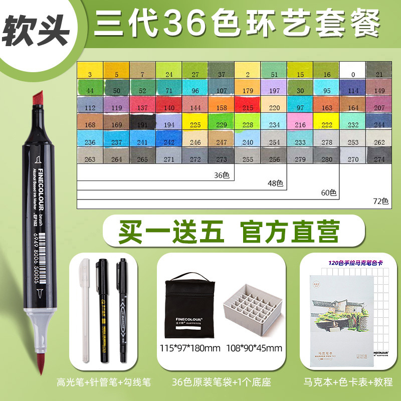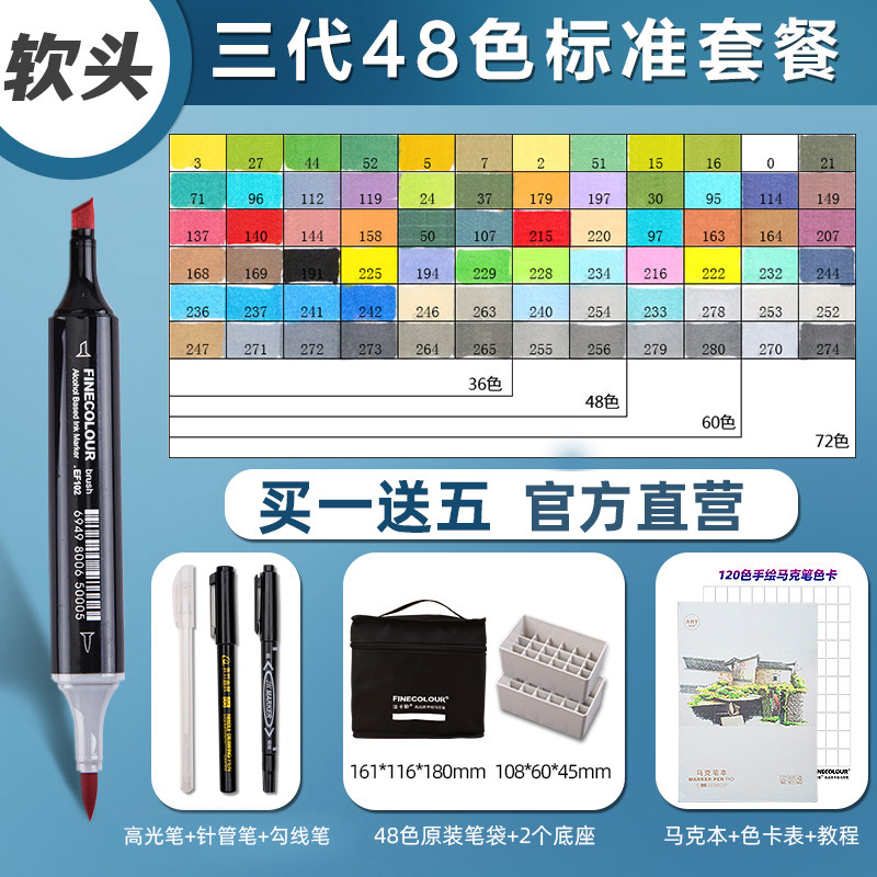 페이칼 마커 펜 3 세대 세트 FINECOLOUR 소프트 헤드 3 세대 알코올 오일 480 컬러 마커 펜 풀 세트스토어 가기