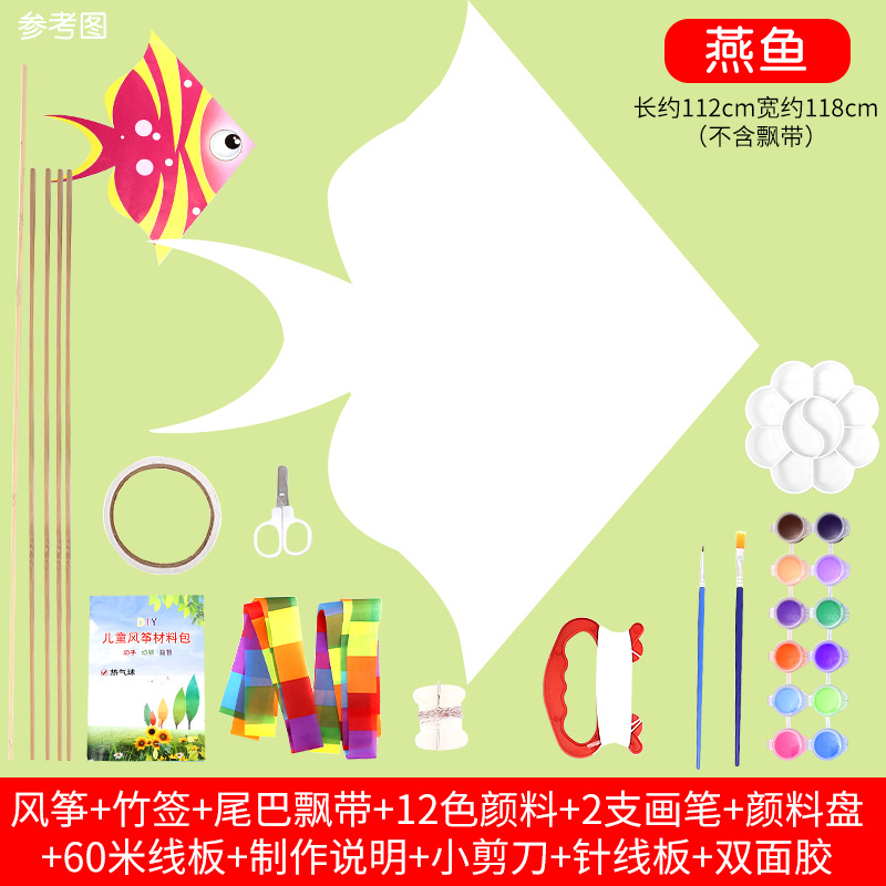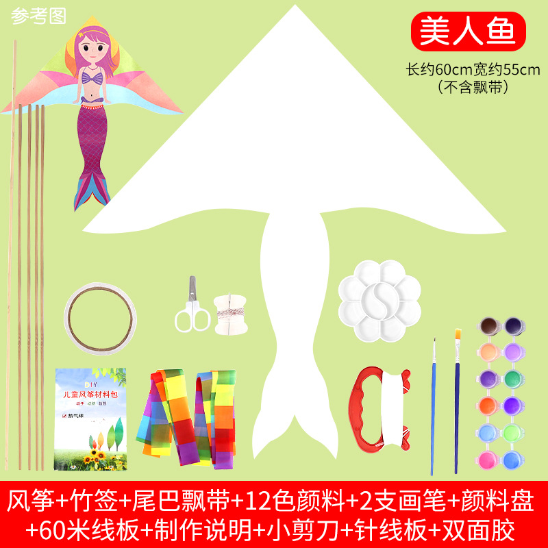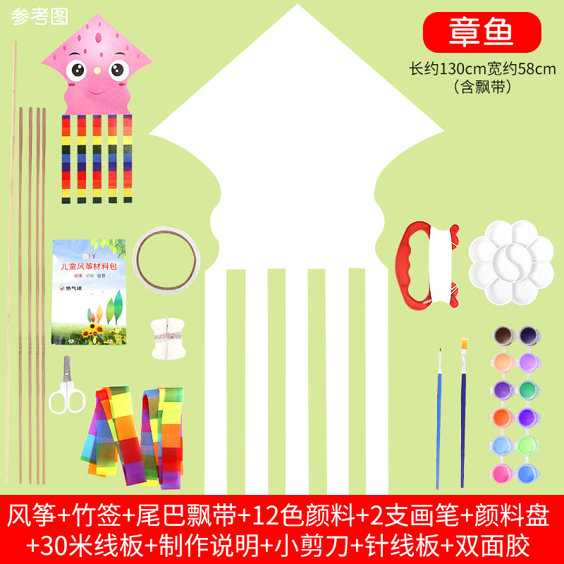 빈 수제 수채화 그림 DIY 어린이 부모-자식 대화 형 수제 대나무 연 재료 가방 수제 DIY 그림스토어 가기
