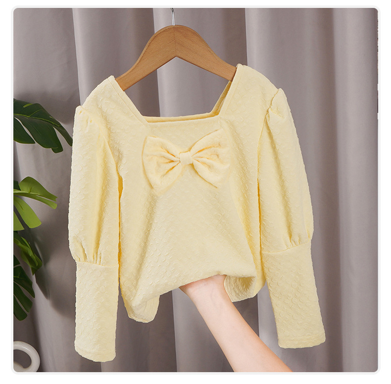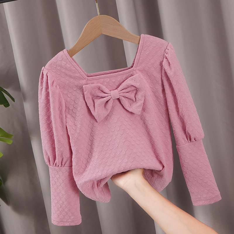 공장 도매 아동복 봄과 가을 새 여자 긴 소매 탑 서양 여자 탄성 커프스 베이스 셔츠