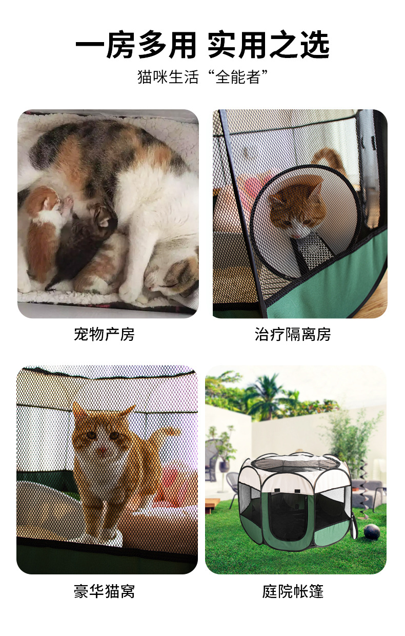 팔각형 고양이 케이지, 고양이 산만실, 접이식 울타리, 애완 동물 텐트, 사계절 범용, 가정용 실내 대형 고양이 개집 및 개 케이지