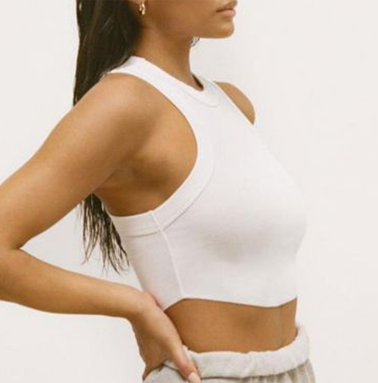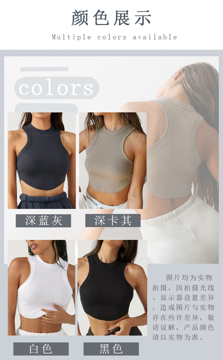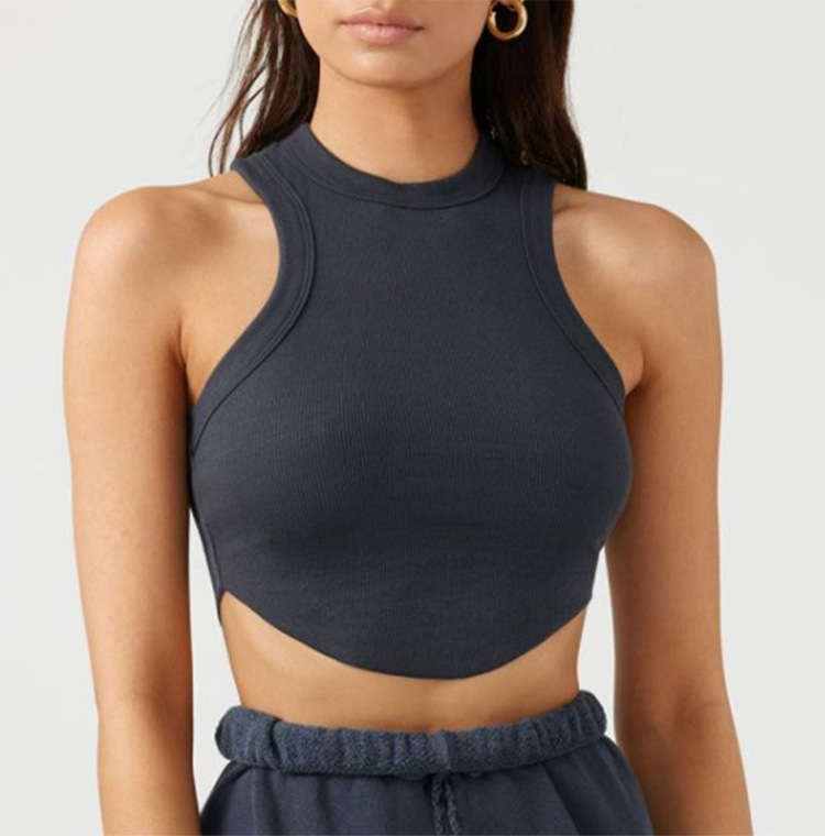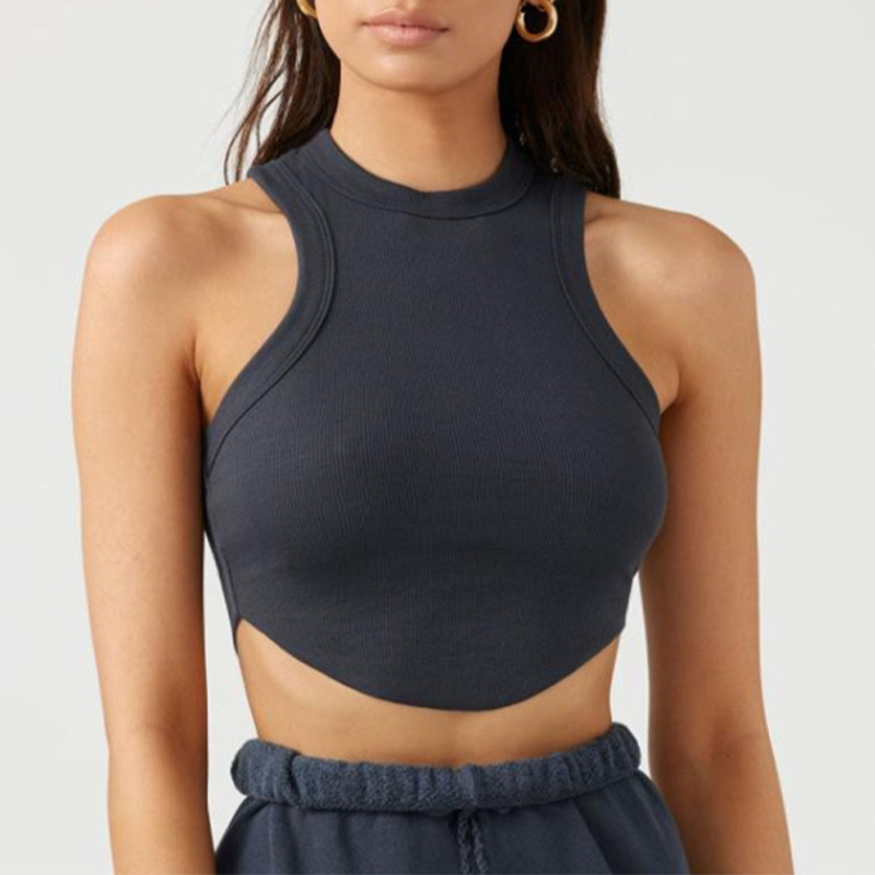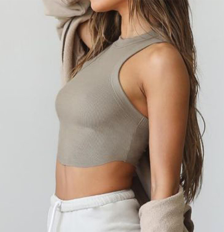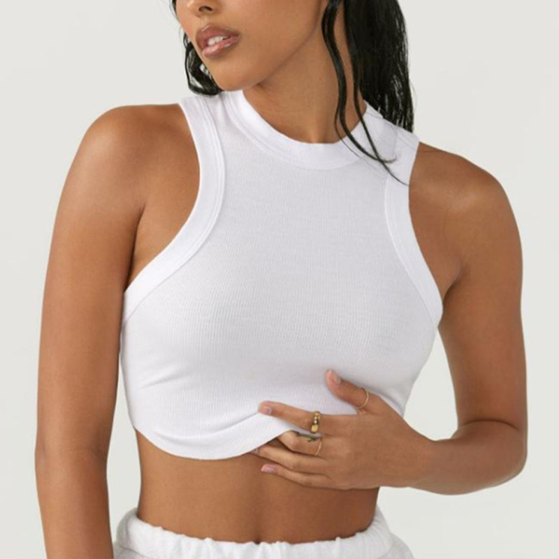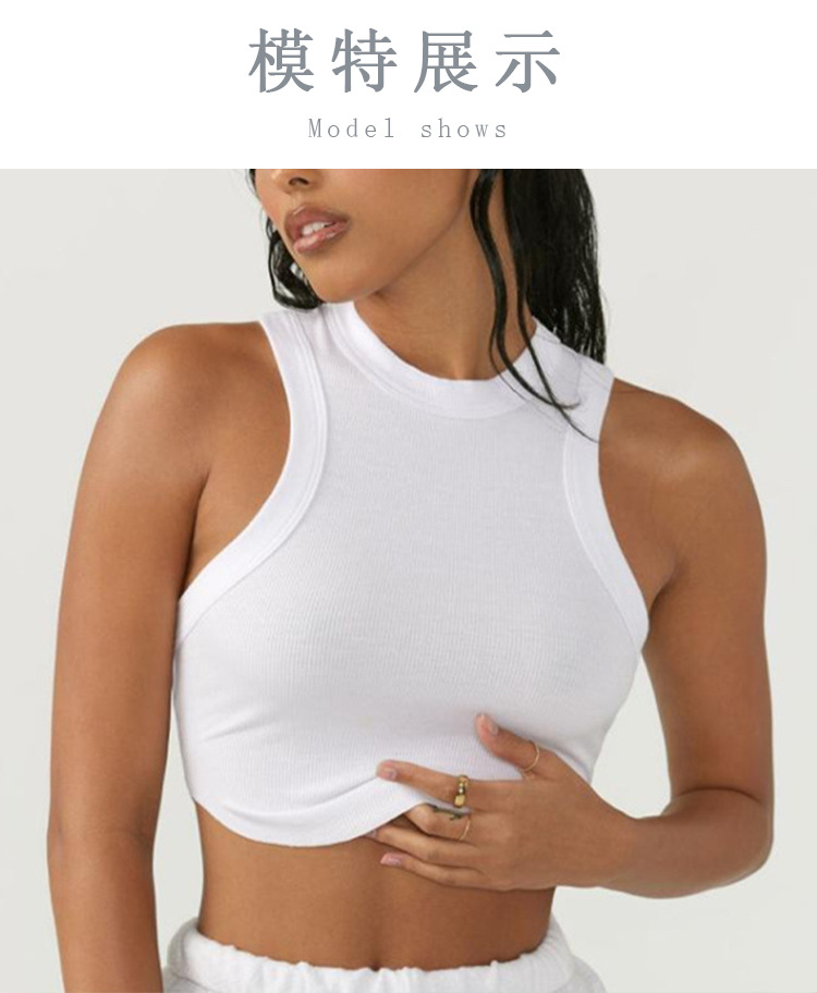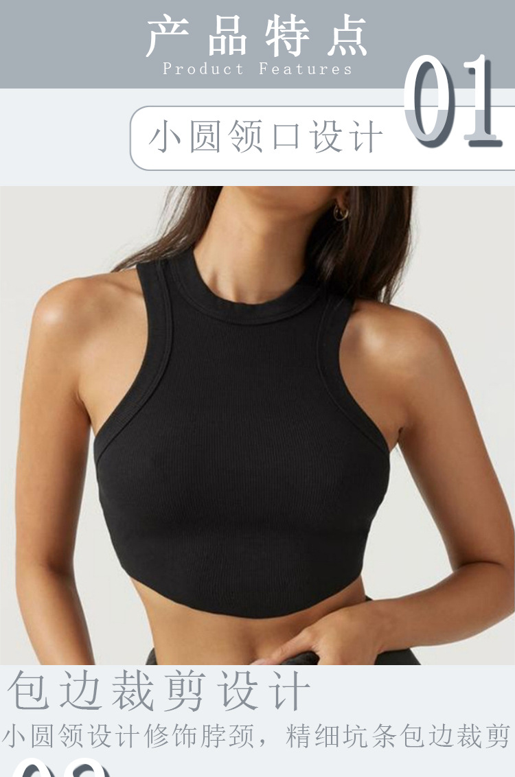 크로스보더 유럽 및 미국 스타일 여성용 스포츠 요가 조끼, 피트니스 요가 댄스 러닝용 가슴 패드 내장 골지형 빠른 건조 탑스토어 가기