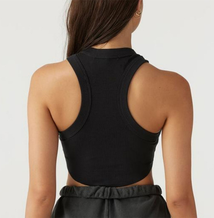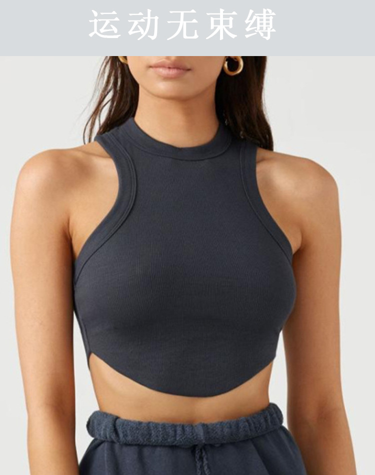 크로스보더 유럽 및 미국 스타일 여성용 스포츠 요가 조끼, 피트니스 요가 댄스 러닝용 가슴 패드 내장 골지형 빠른 건조 탑