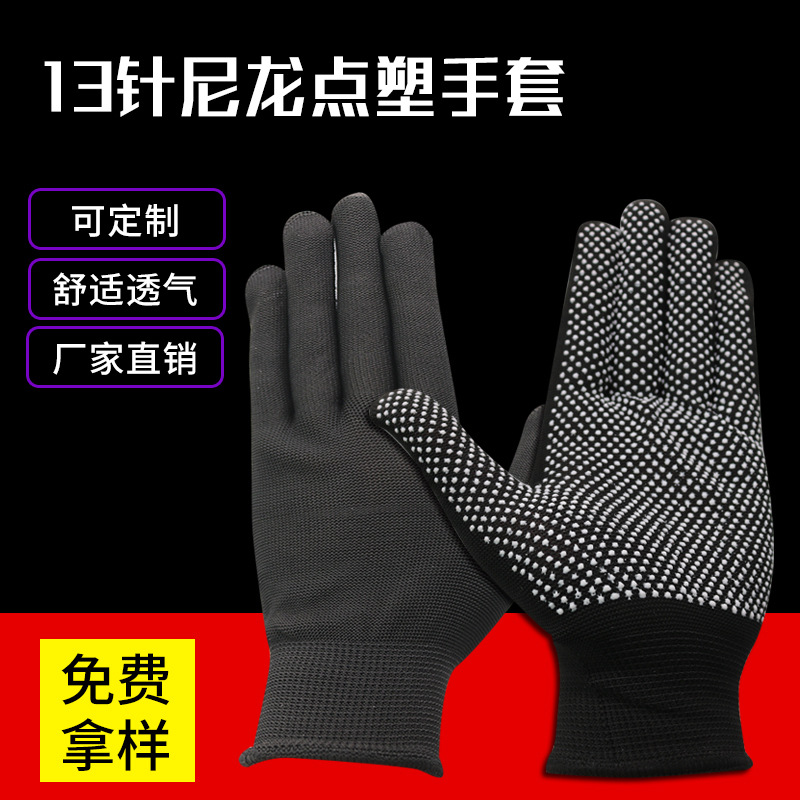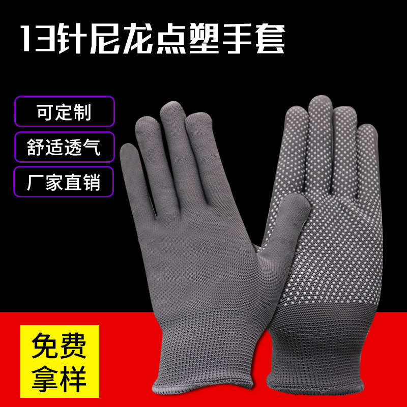 노동 장갑 13 핀 나일론 미끄럼 방지 PVC 디스펜스 비즈 정전기 방지 플라스틱 먼지없는 장갑 제조 업체 도매스토어 가기