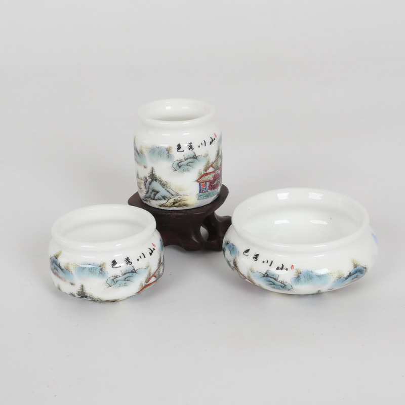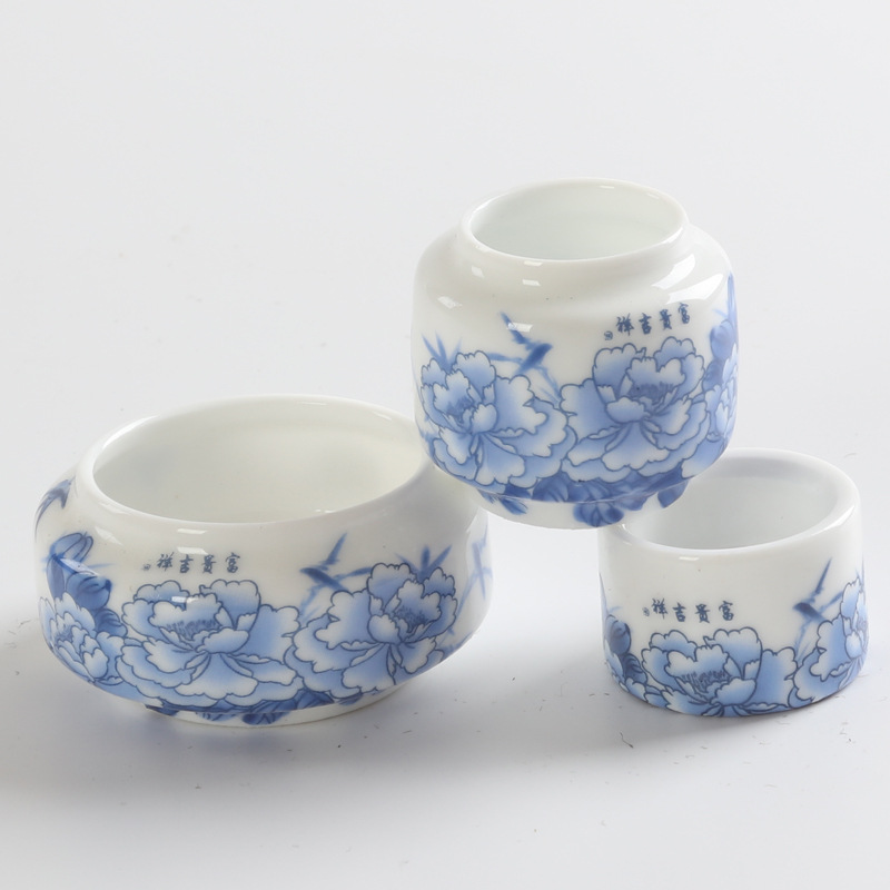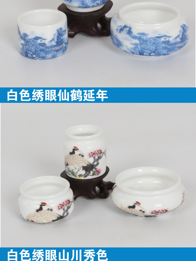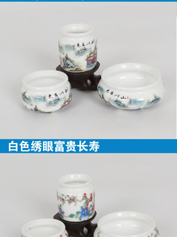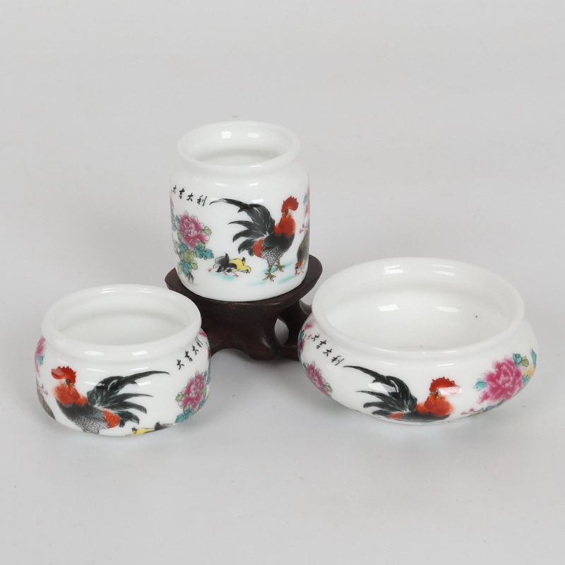 • 흰색 유약 수국 푸구이 길조 플라스틱 컵