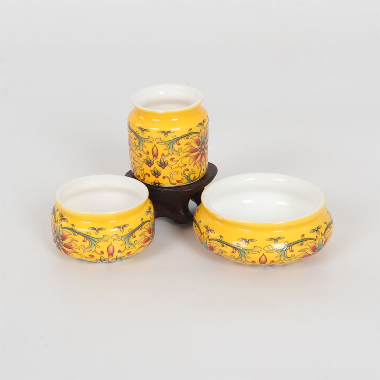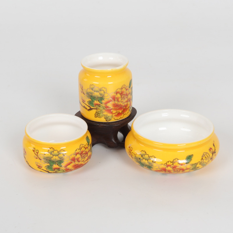 • 노란색 유약 수국 모란 플라스틱 컵