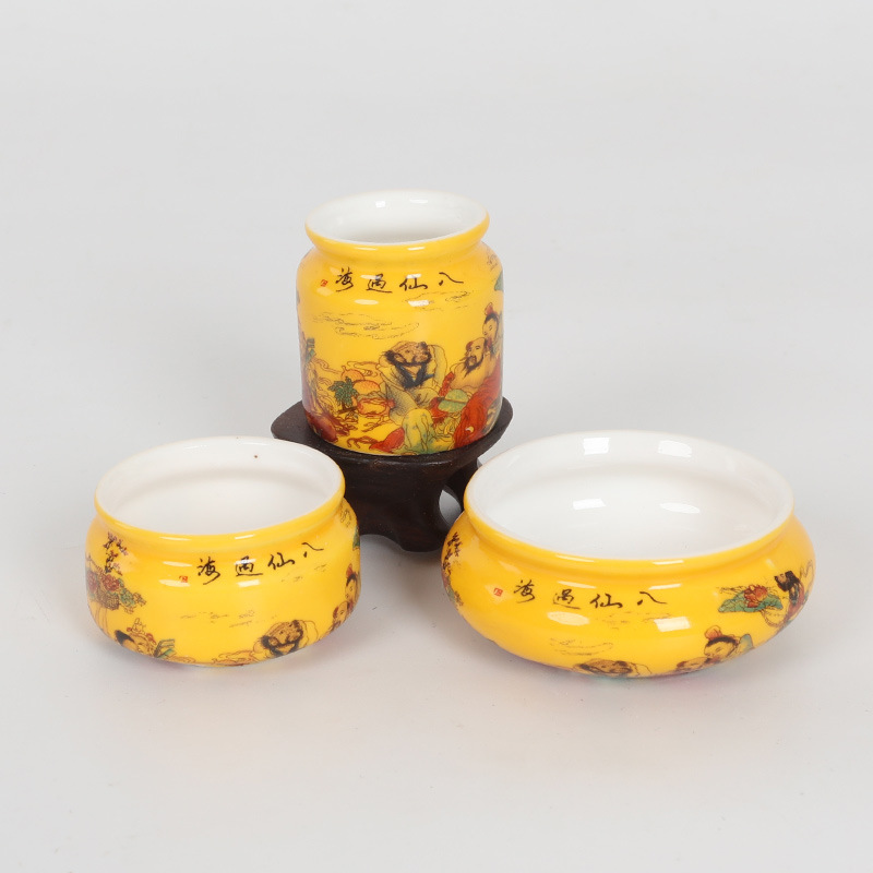 • 노란색 유약 수국 바다를 건너 여덟 불멸자 플라스틱 컵