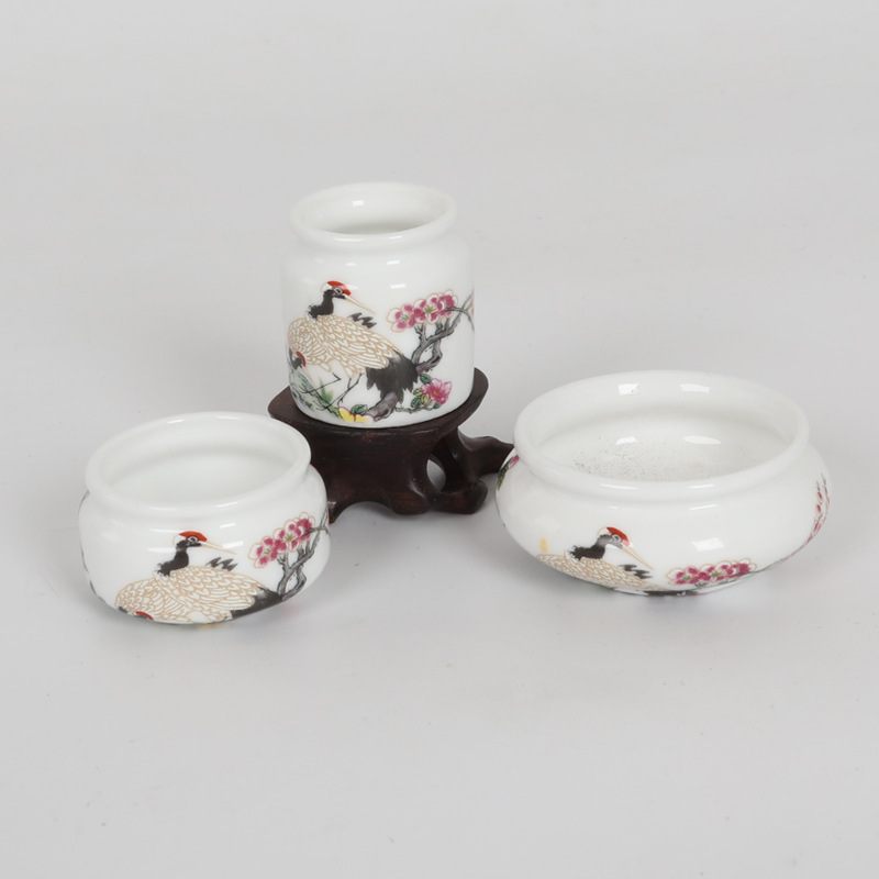 • 흰색 유약 수국 크레인 플라스틱 컵