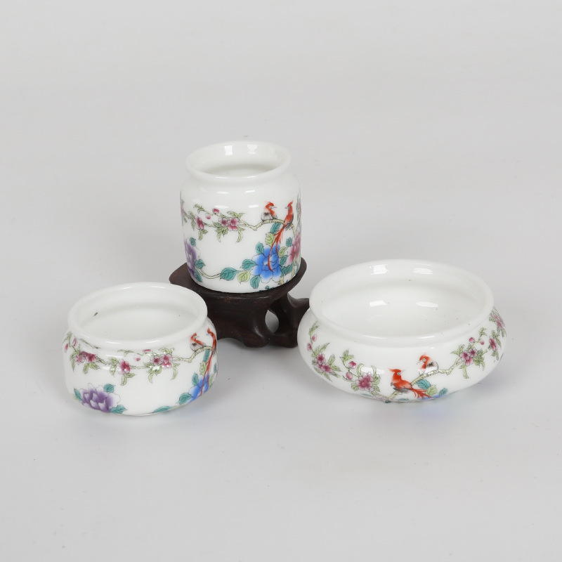• 흰색 유약 자수 꽃 풍부한 플라스틱 컵