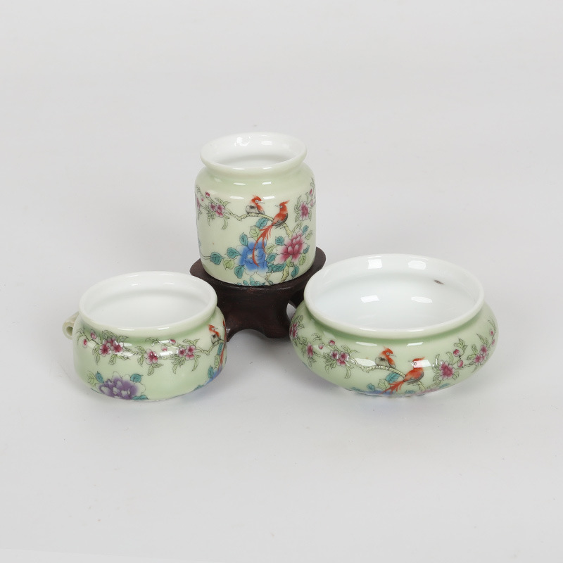 • 녹색 유약 모란 꽃 새 플라스틱 컵