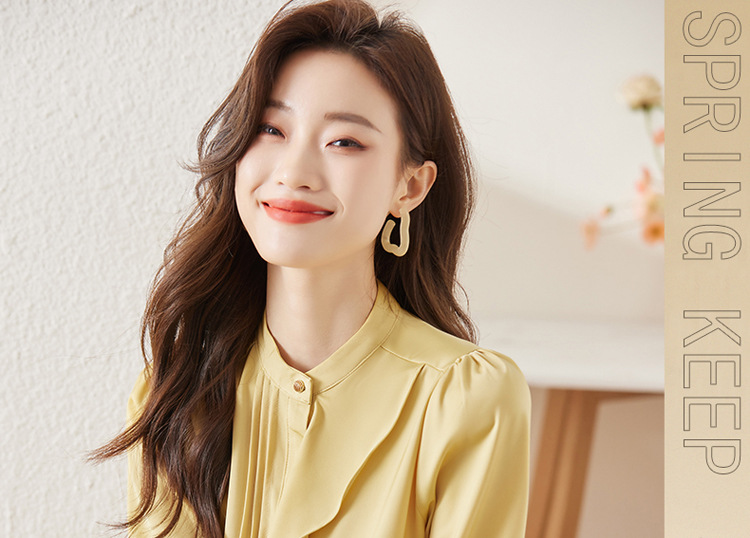 칠곡여성 고급스러운 스탠드 칼라 쉬폰 셔츠 여성 긴팔 가을 러플 셔츠 프랑스 스타일 독특하고 세련된 상의스토어 가기