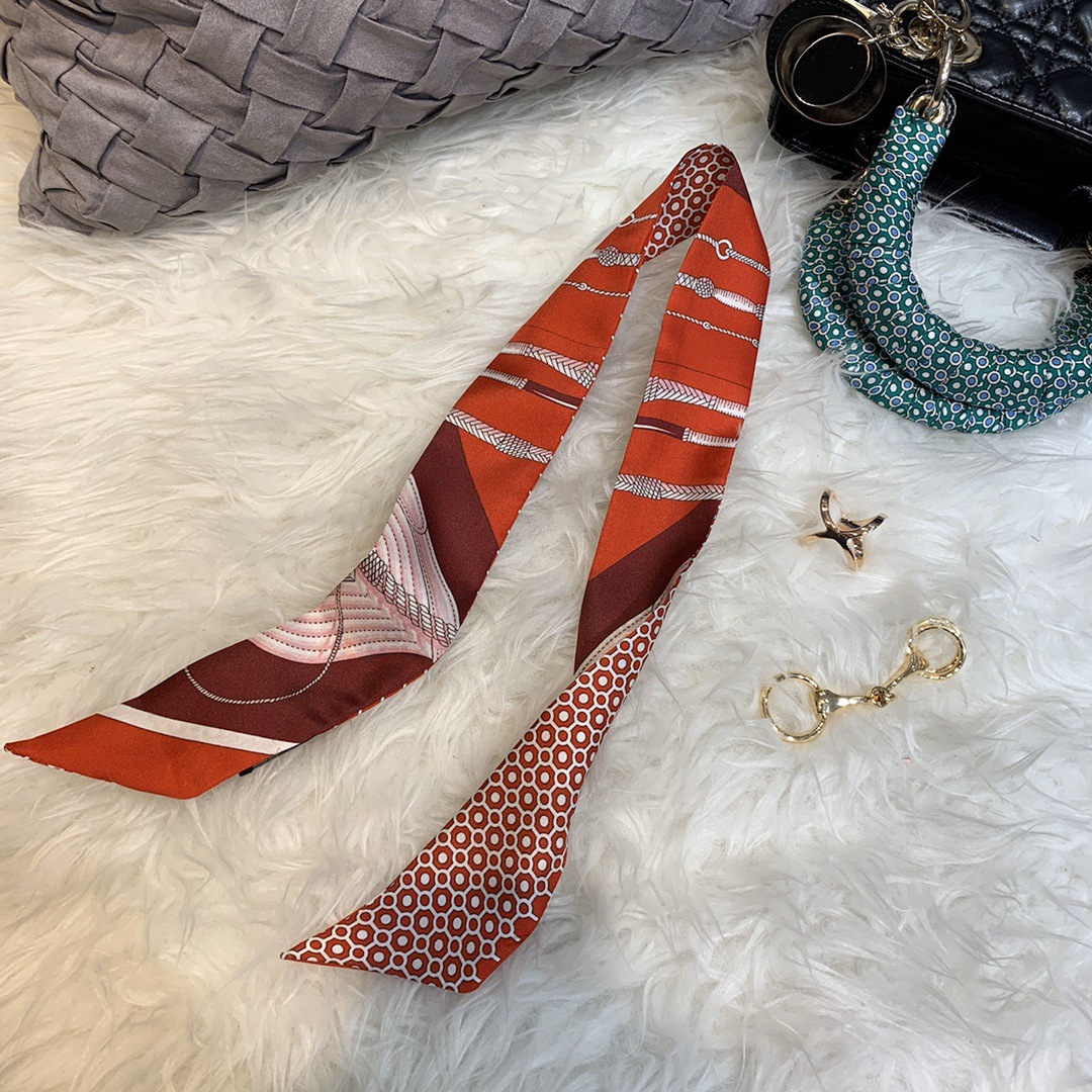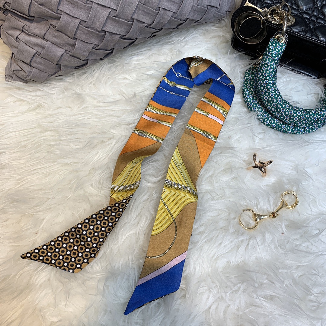 재고 비엔티안 트윌리 실크 스카프 여성용 헤어 벨트 넥타이 가방 장식 허리 팔찌 얇은 좁은 긴 리본스토어 가기