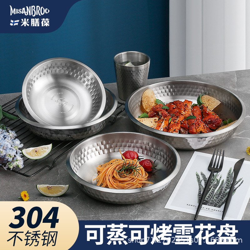 Baomisanbroo 스테인레스 스틸 접시 디스크 접시 가정용 접시 접시 접시 깊은 수프 접시 평면 접시스토어 가기