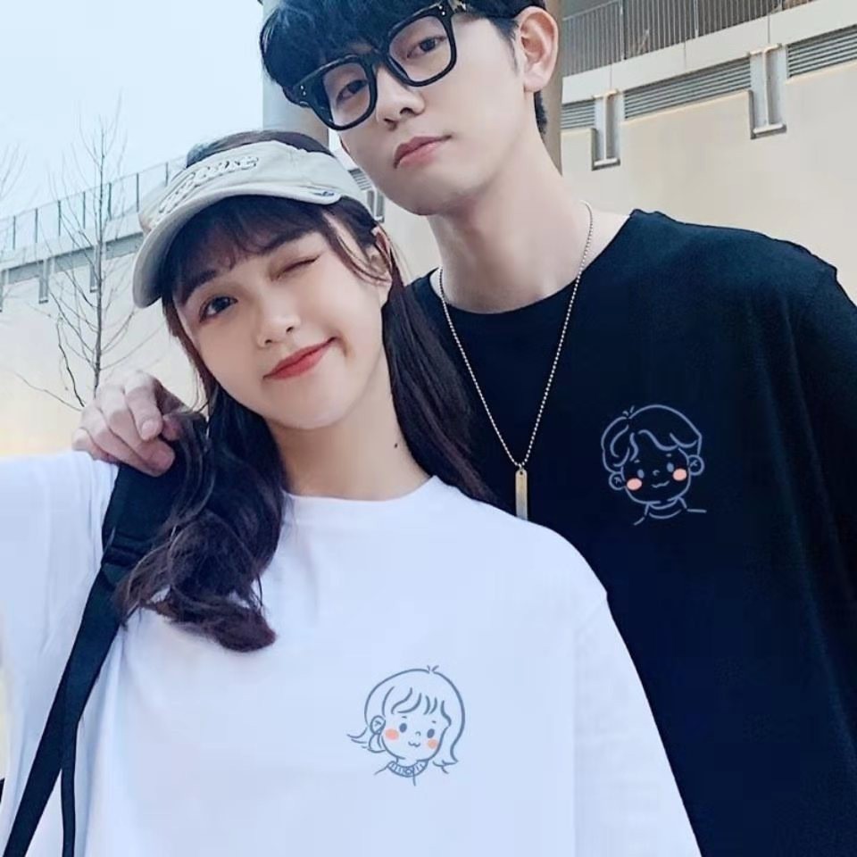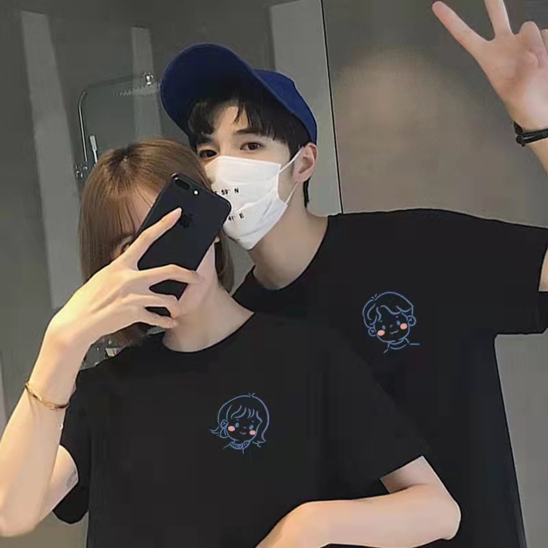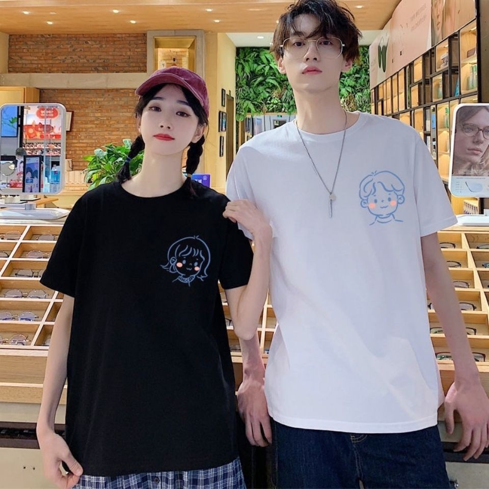 2024 새로운 커플 원피스 반팔 티셔츠 여름 남성과 여성의 유행 반팔 라운드 넥 슬림 핏 슬리밍 티셔츠스토어 가기
