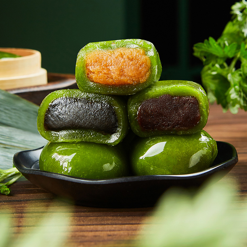 재고 도매 녹색 공 투명 필름 녹색 공 콩 페이스트 계란 노른자 고기 치실 멀티 맛 녹색 공 전통 과자 녹색 공