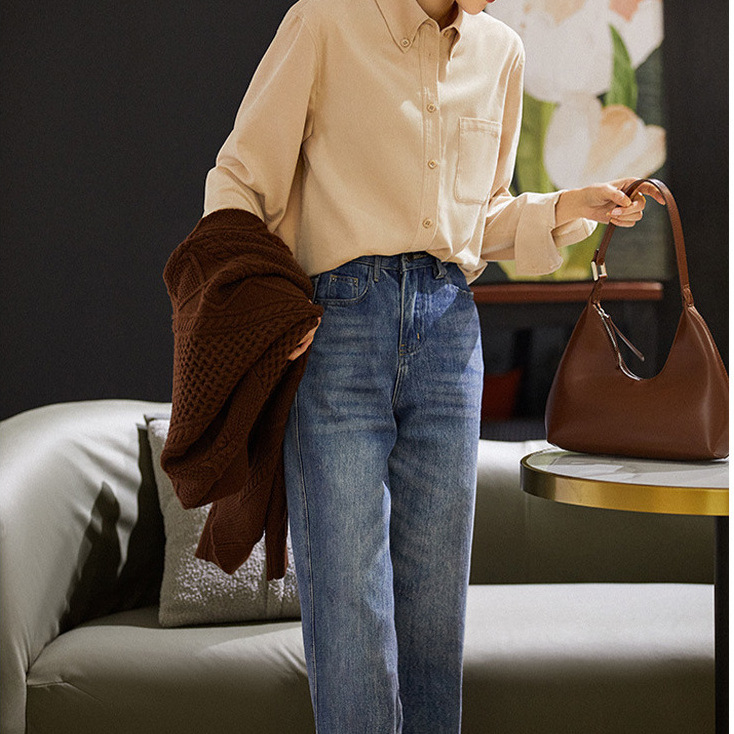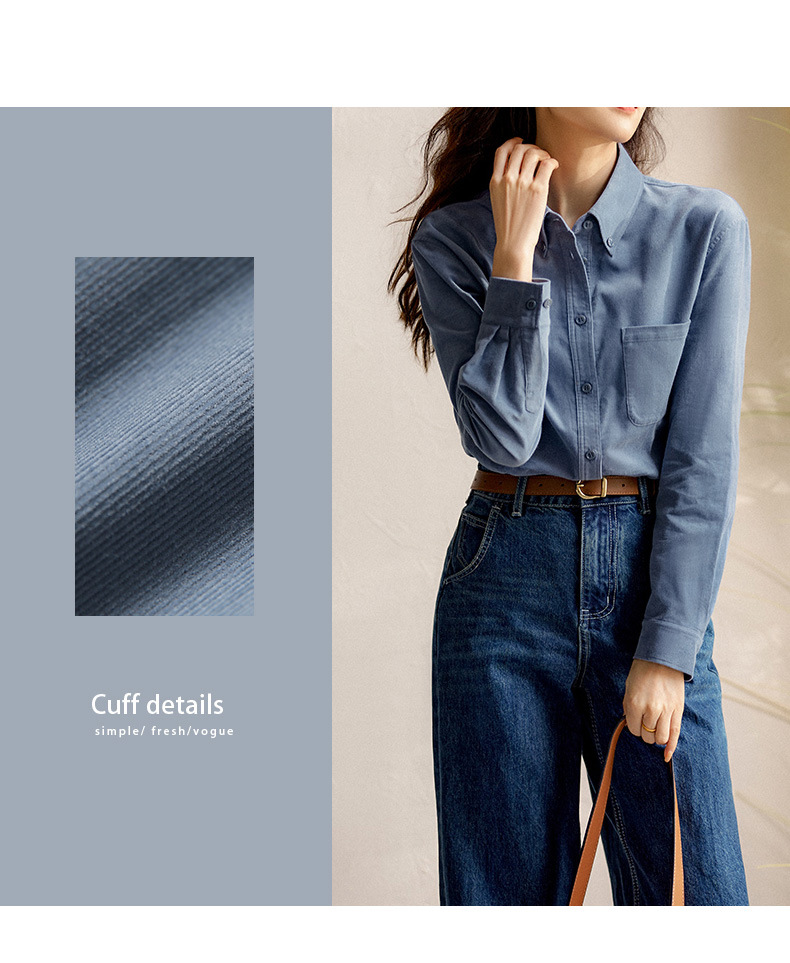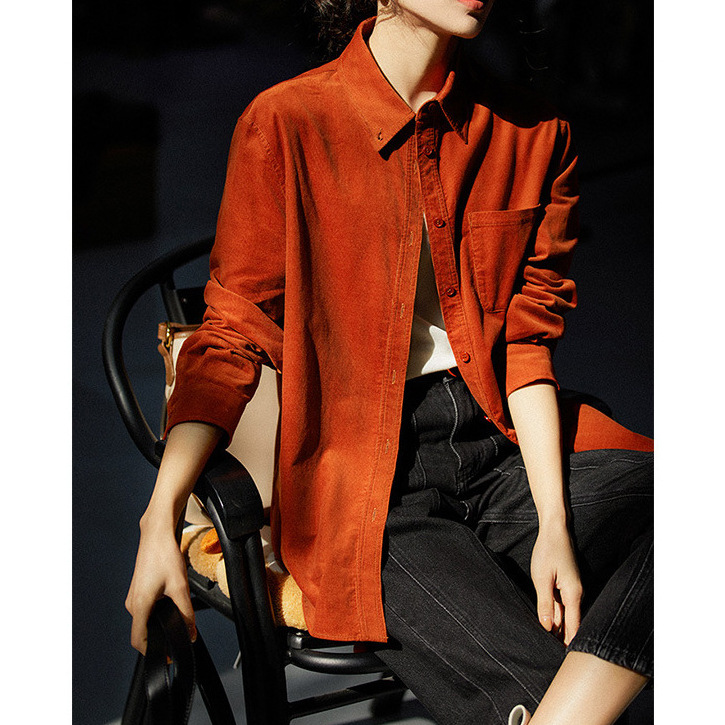 코듀로이 데님 셔츠 6 색 여성 셔츠 재킷 2023 가을 여성 최고 디자인 감각