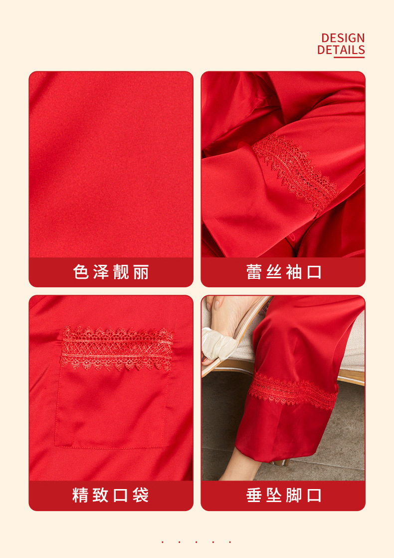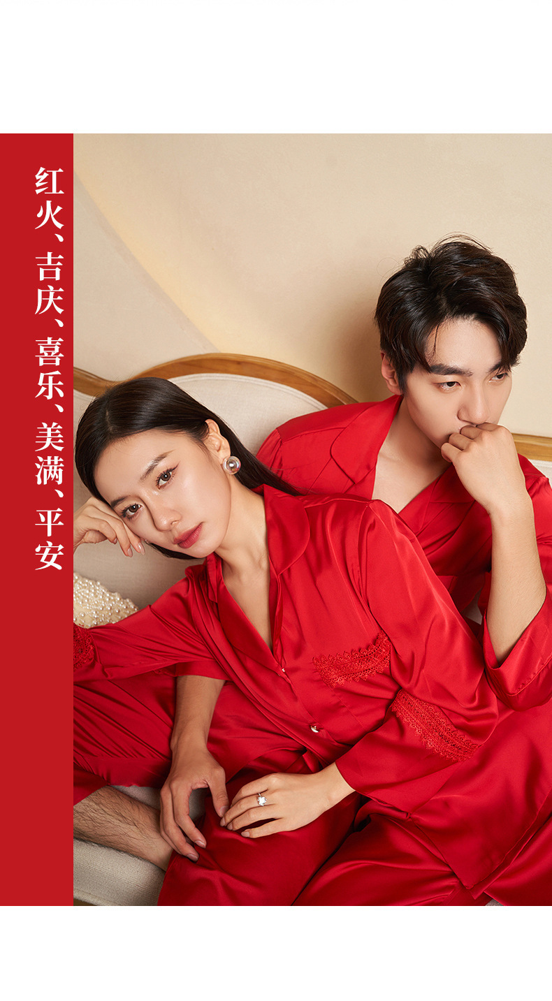 커플 잠옷 봄 아이스 실크 레이스 스티치 웨딩 세트 고급스러운 결혼 축하 홈웨어 라이트 럭셔리스토어 가기