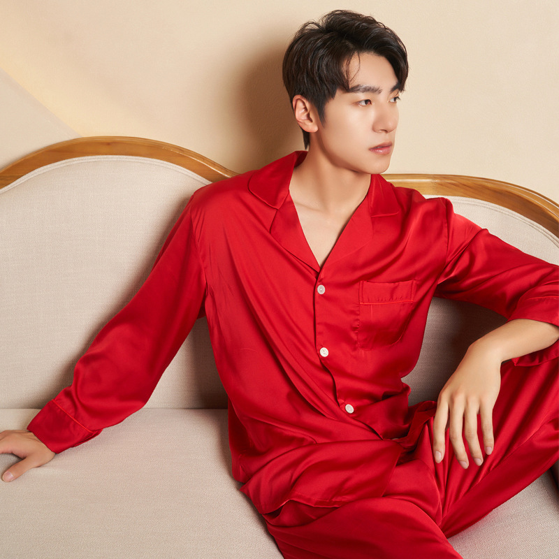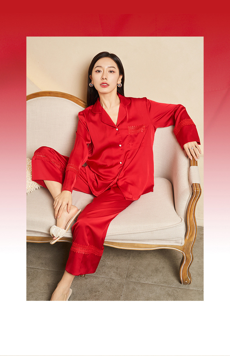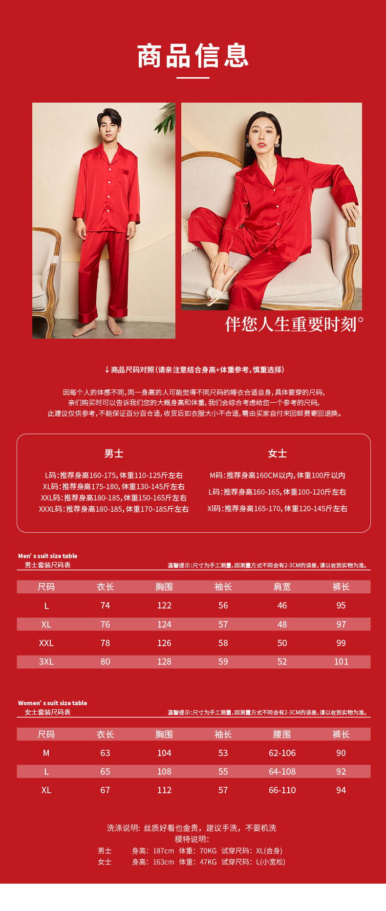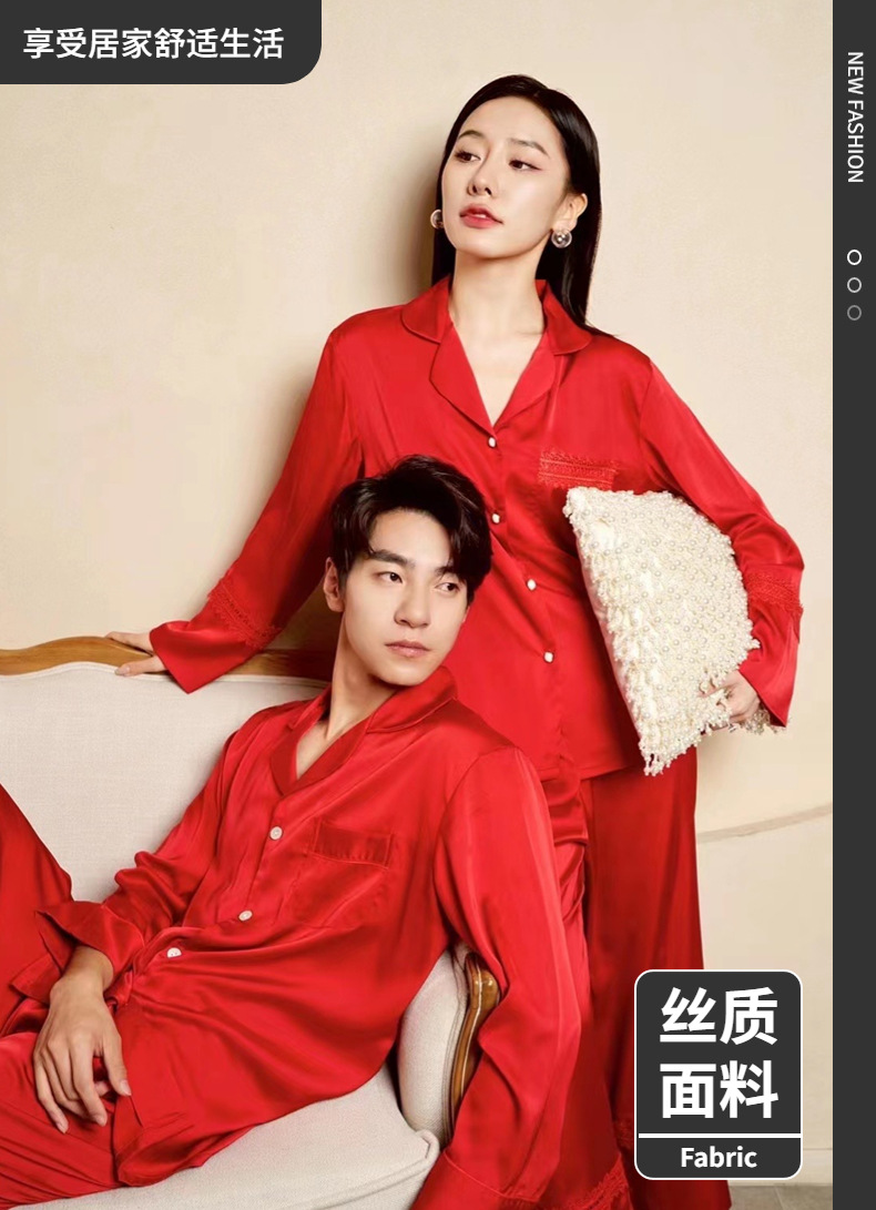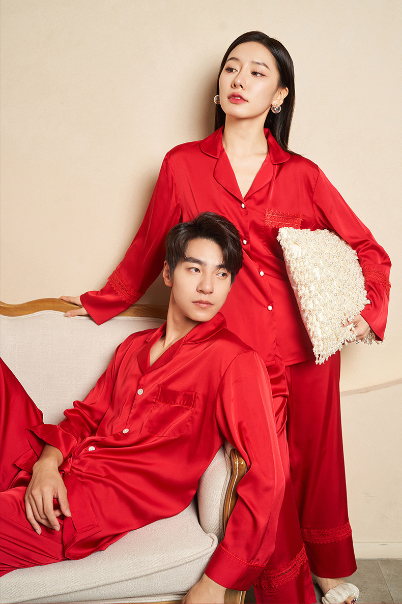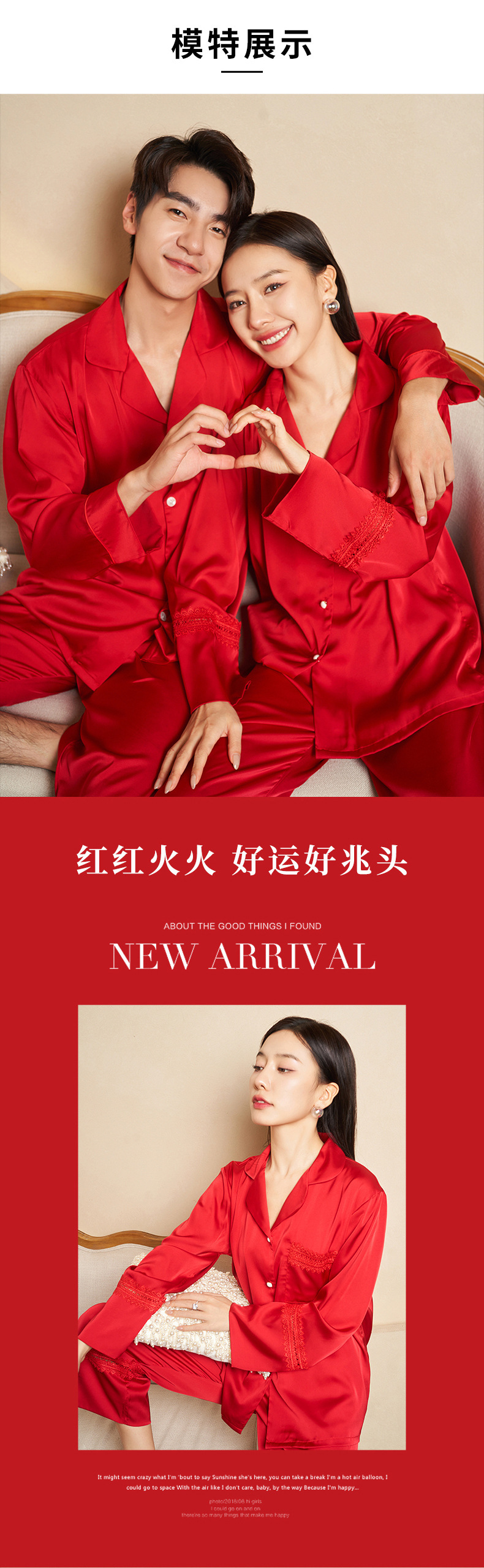 커플 잠옷 봄 아이스 실크 레이스 스티치 웨딩 세트 고급스러운 결혼 축하 홈웨어 라이트 럭셔리