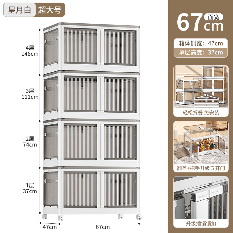 • [대형 폭 47.5cm] 스타 문 화이트 업그레이드 5 도어 강화 잠금 장치