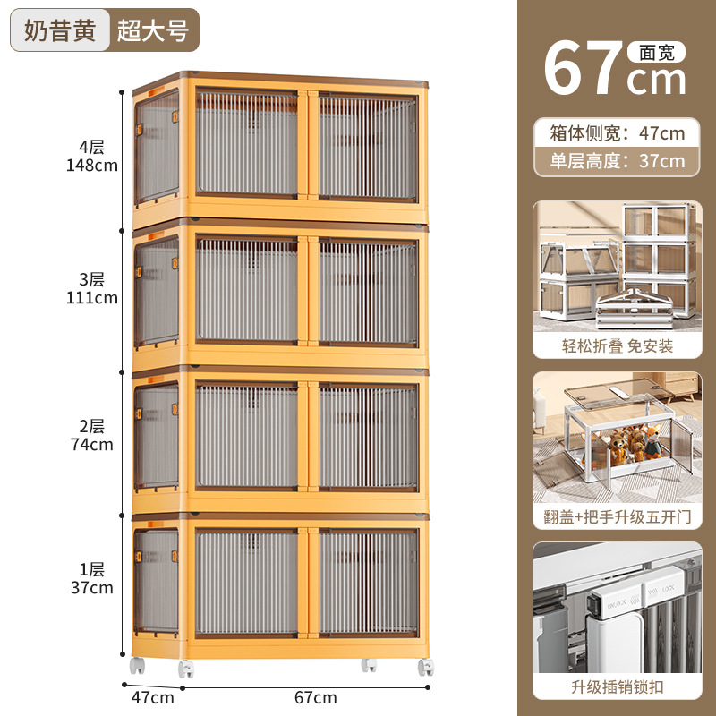 • [초대형 폭 60cm] 밀크 쉐이크 옐로우 업그레이드 5 도어 강화 잠금 장치
