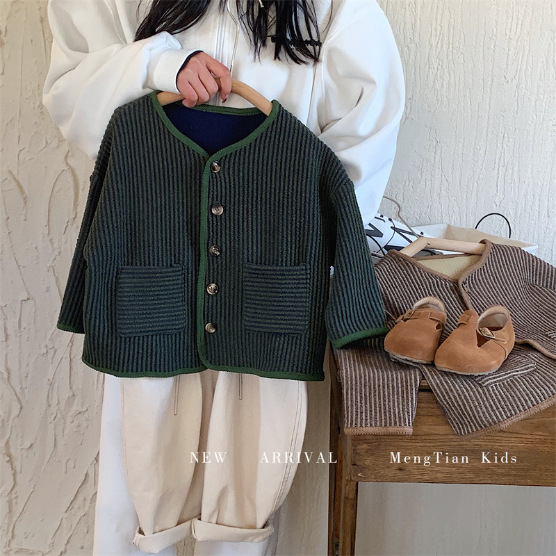 Montaigne 2024ins 샤넬 스타일 아동복 봄 새로운 어린이 봄 가을 한국 코트 카디건 소년 소녀