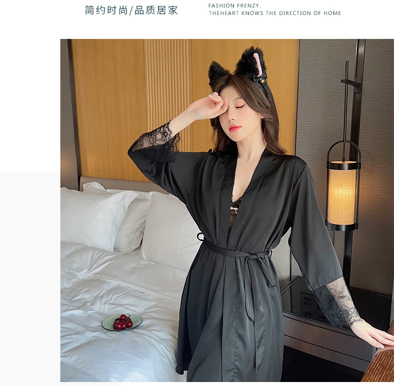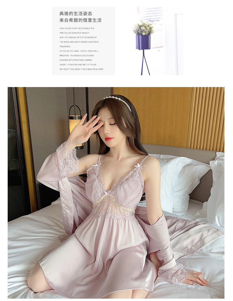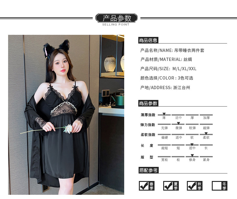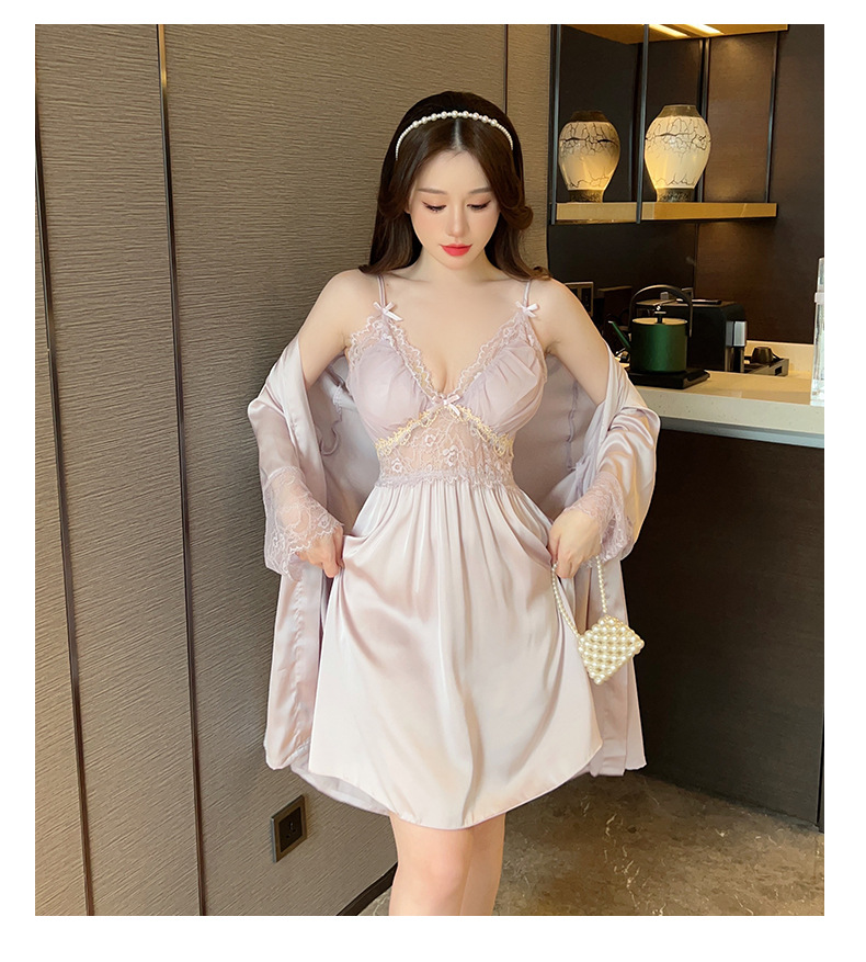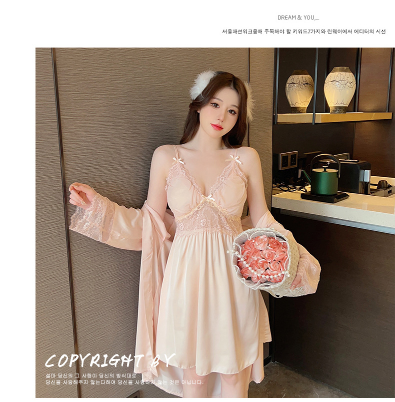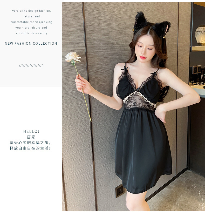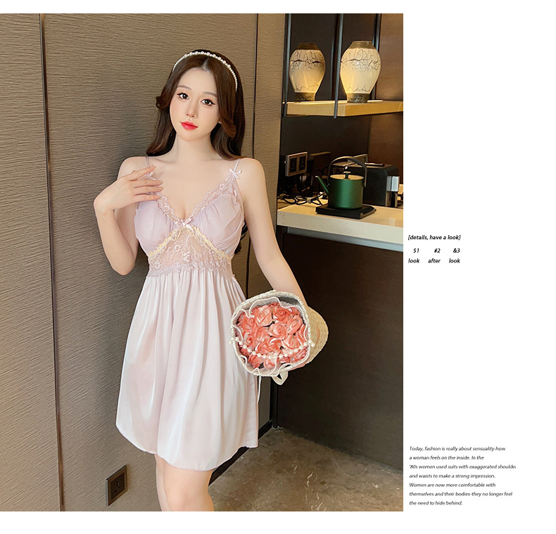가슴 패드 슬링 파자마와 새로운 깊은 V 여자의 여름 모조 아이스 실크 잠옷 레이스 유혹 순수한 세트스토어 가기