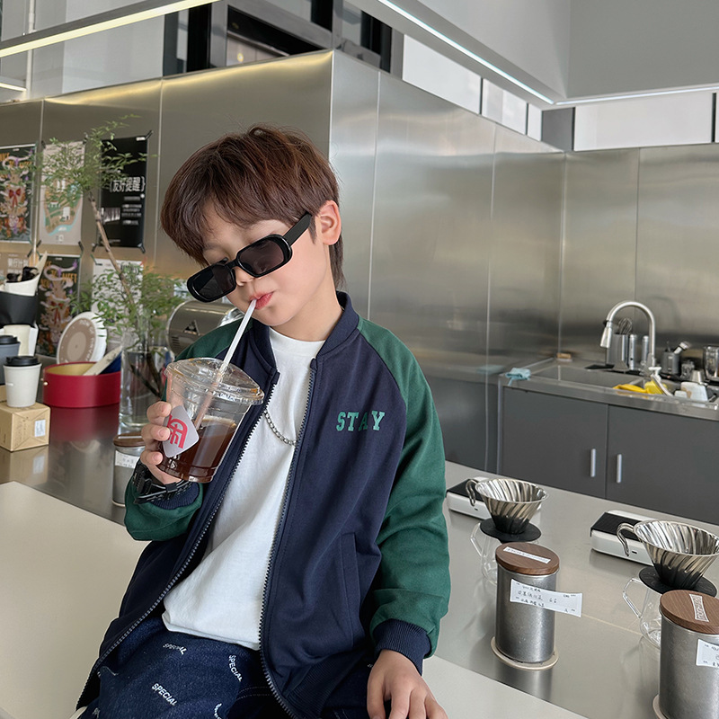 통 첸첸의 엄마 소년 어린이 코트 가을 야구 세트 코트 느슨한 캐주얼 카디건 탑 컬러 매치 프라이팬 스트리트스토어 가기