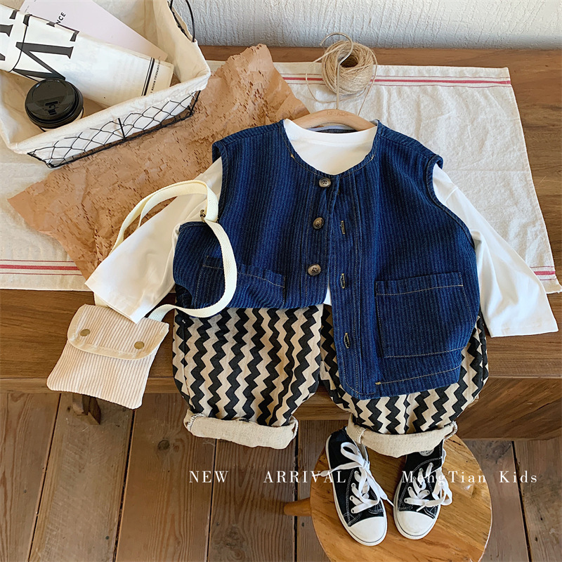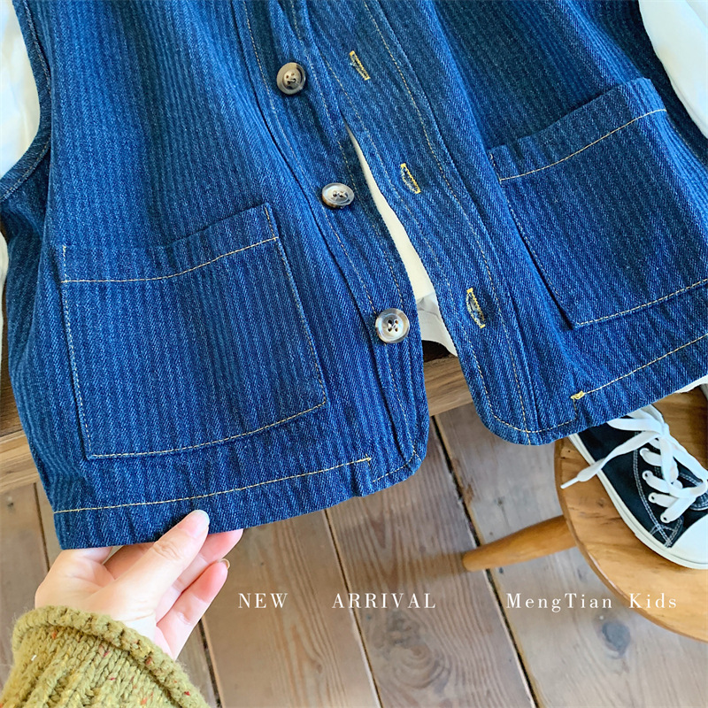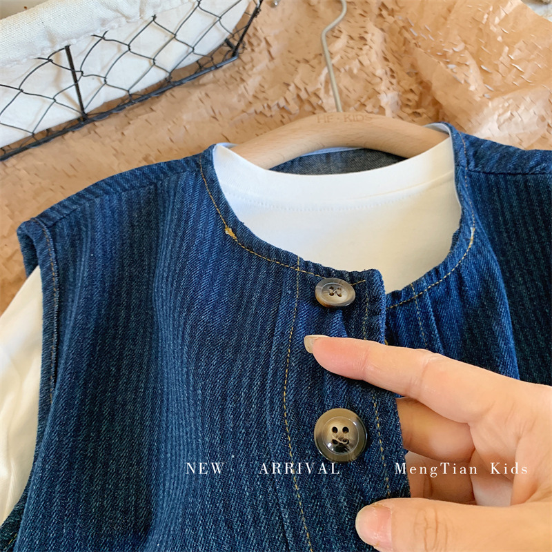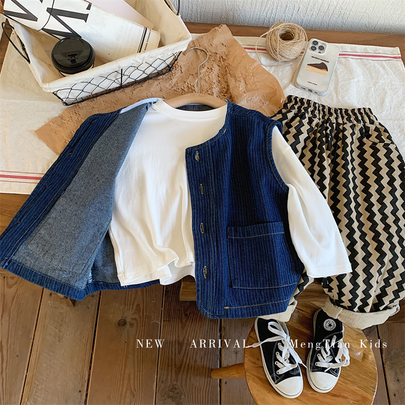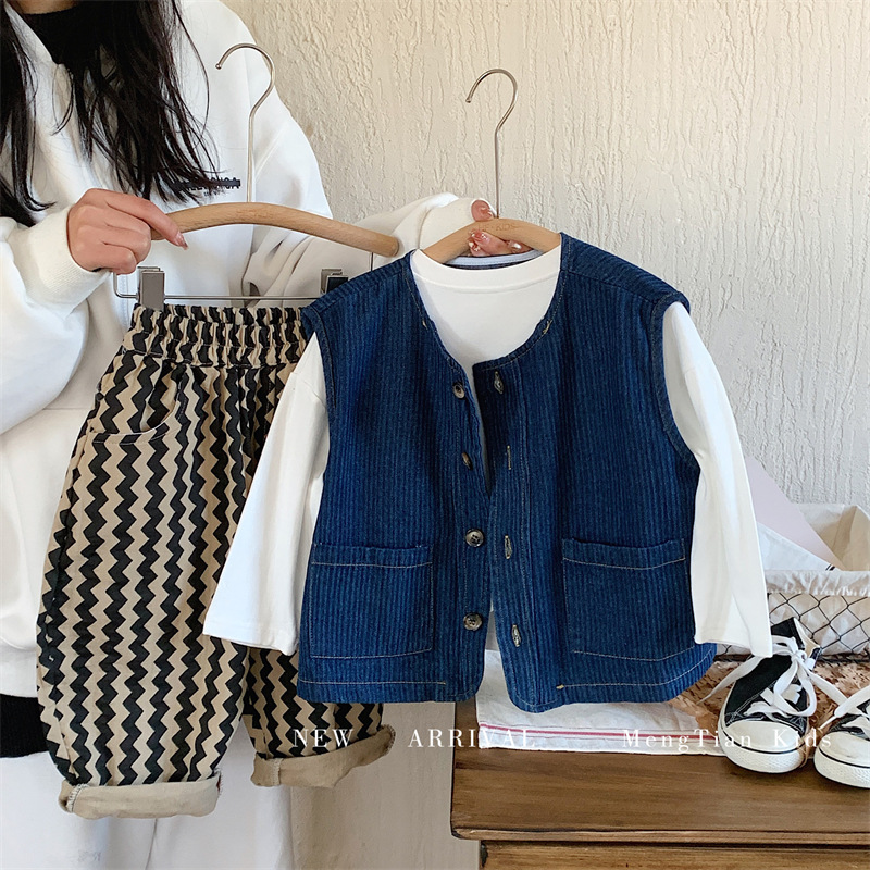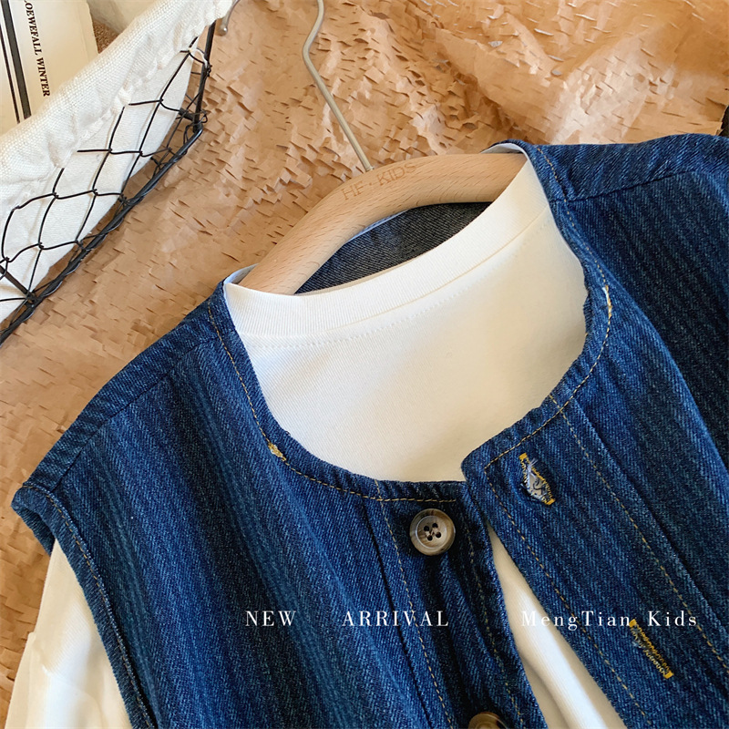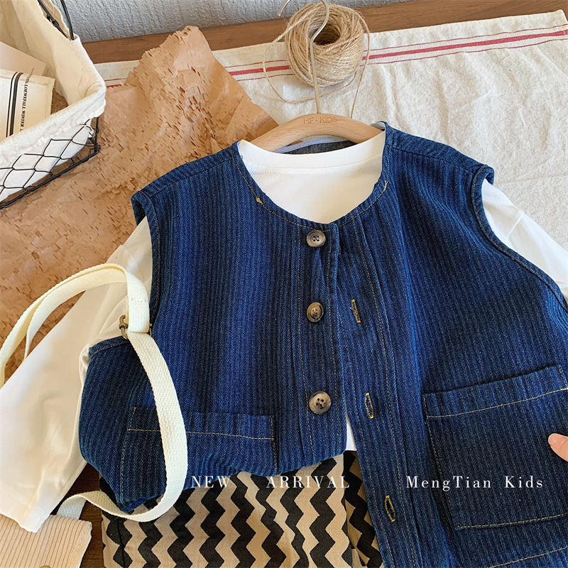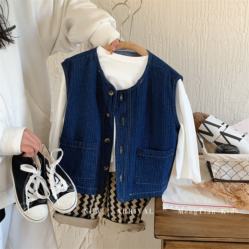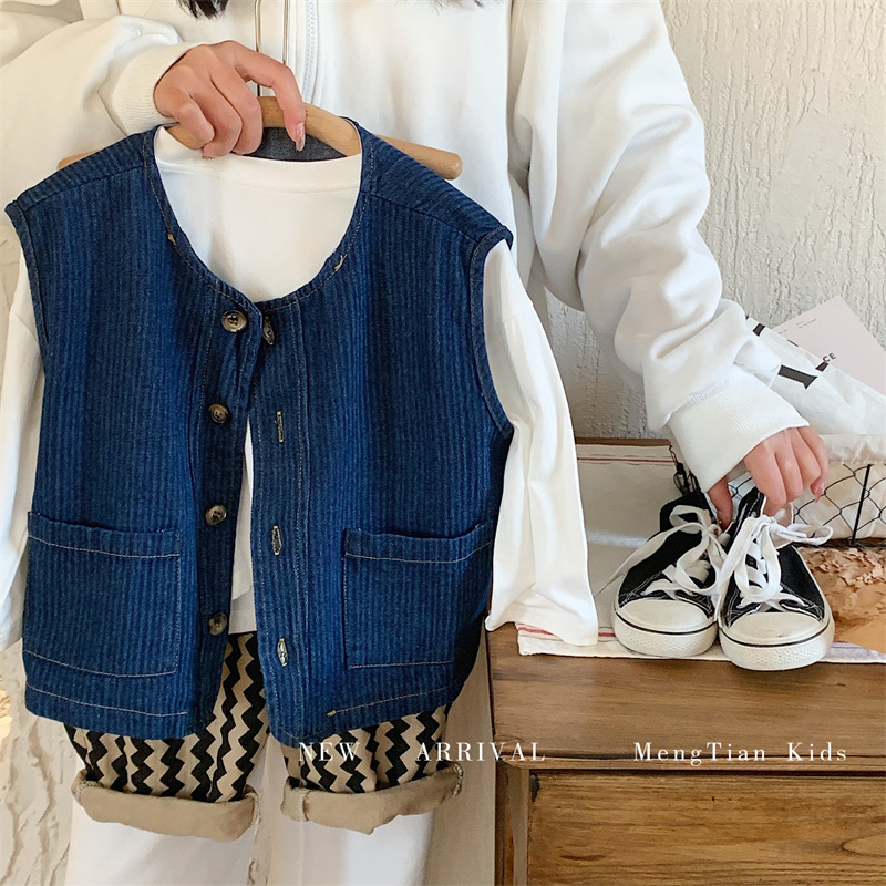 몽테뉴 어린이 데님 조끼 2023 봄과 가을 새로운 한국식 소프트 트렌디 탑 남아 여아 조끼스토어 가기