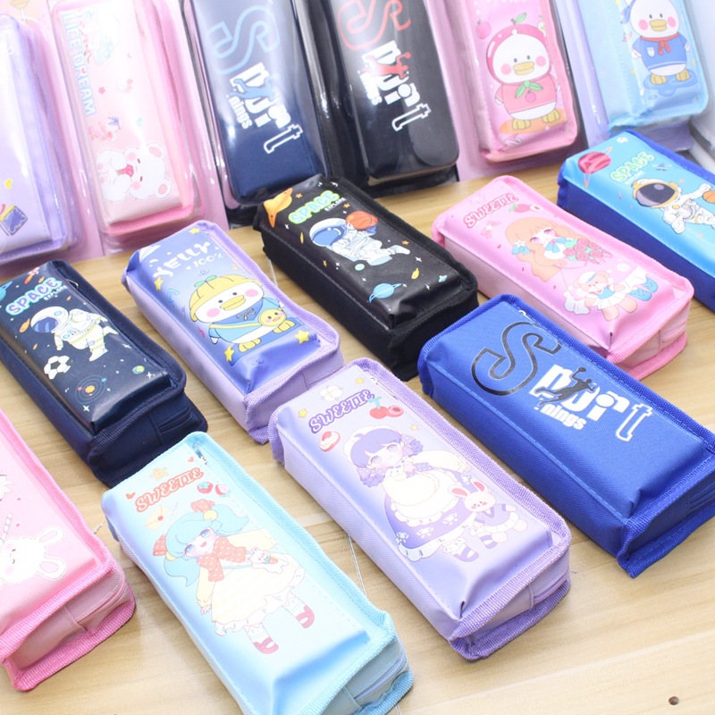 학생 더블 대용량 옥스포드 천 필통 연필 문구 보관 가방 필통 문구 상자 만화 귀여운
