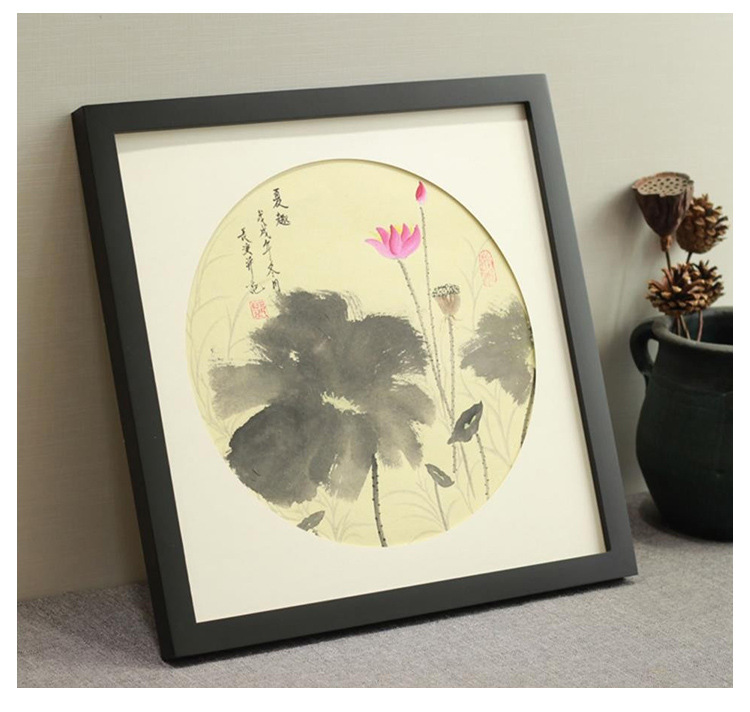 정사각형 사진 프레임 액자 벽걸이 간단한 마운트 프레임 로그 40x40 나무 미술 전시회 벽 프레임스토어 가기