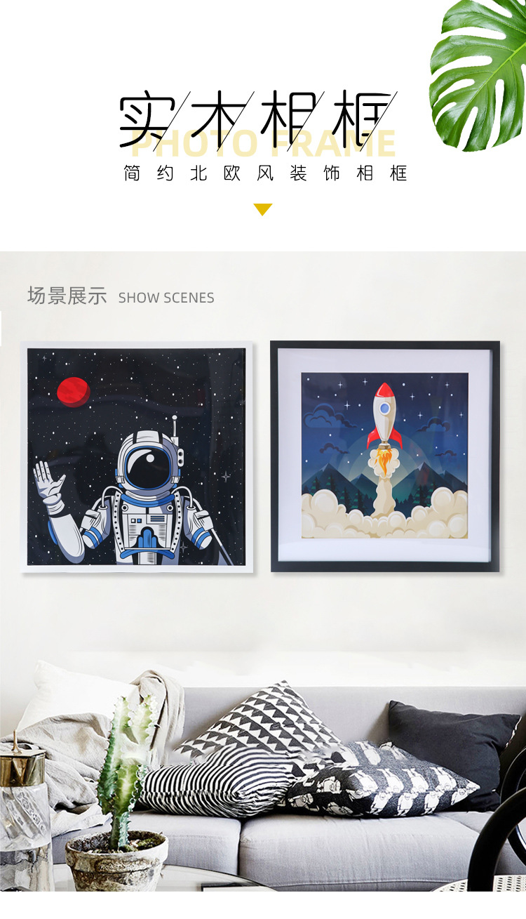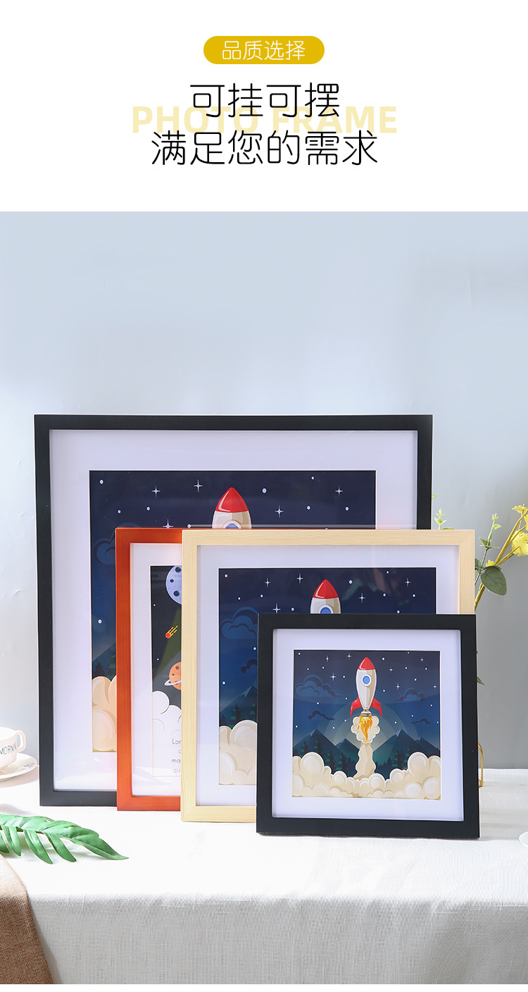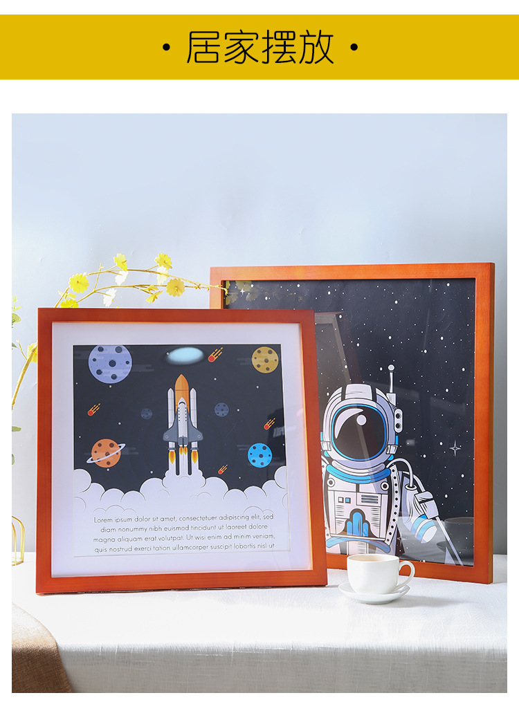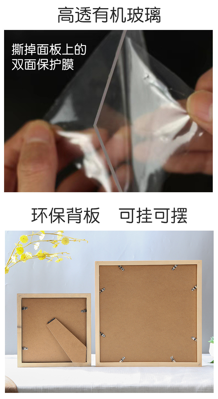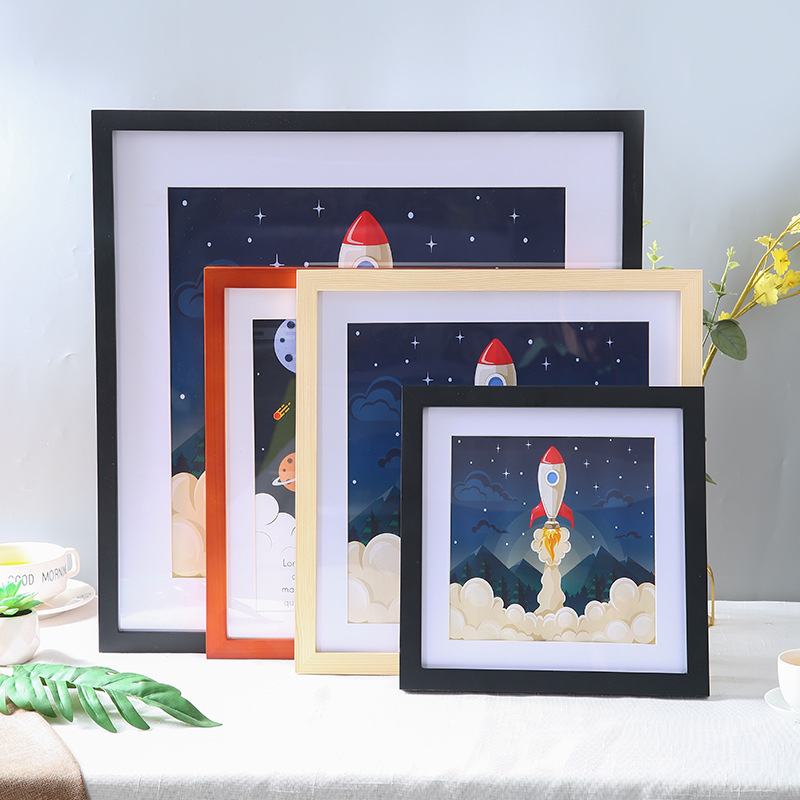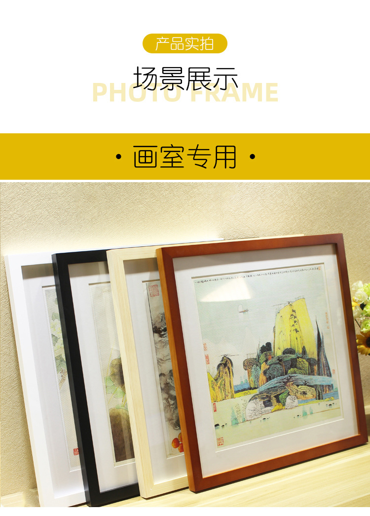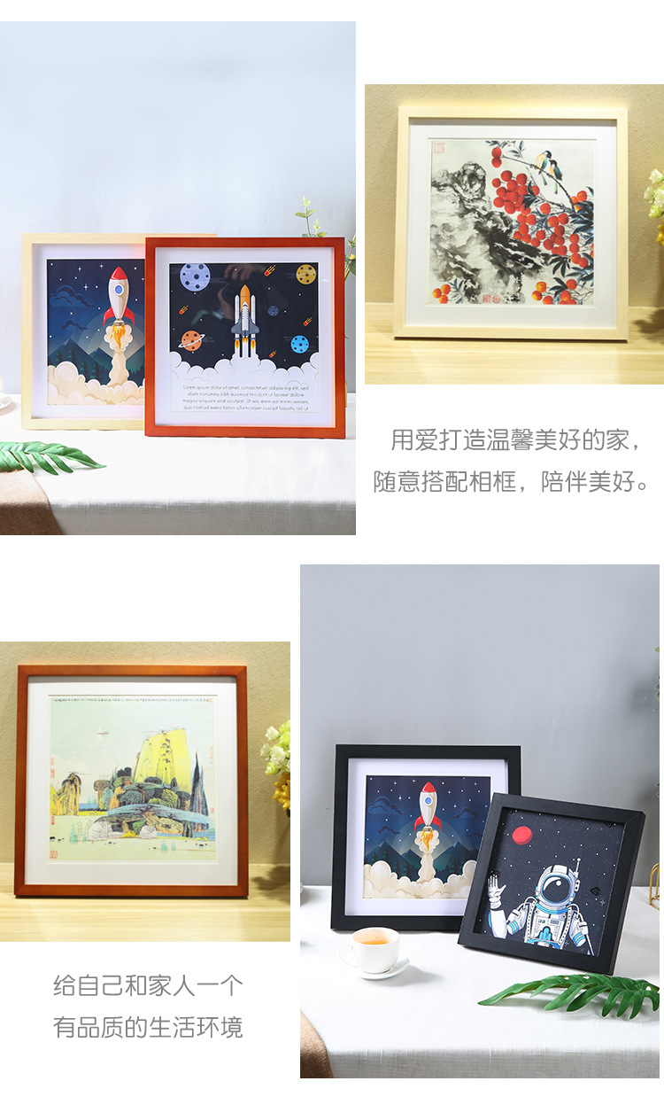 정사각형 사진 프레임 액자 벽걸이 간단한 마운트 프레임 로그 40x40 나무 미술 전시회 벽 프레임