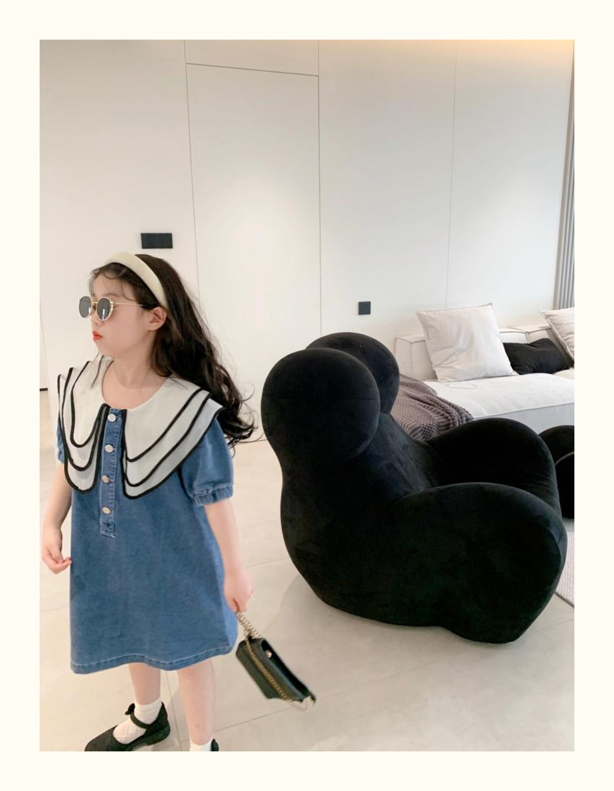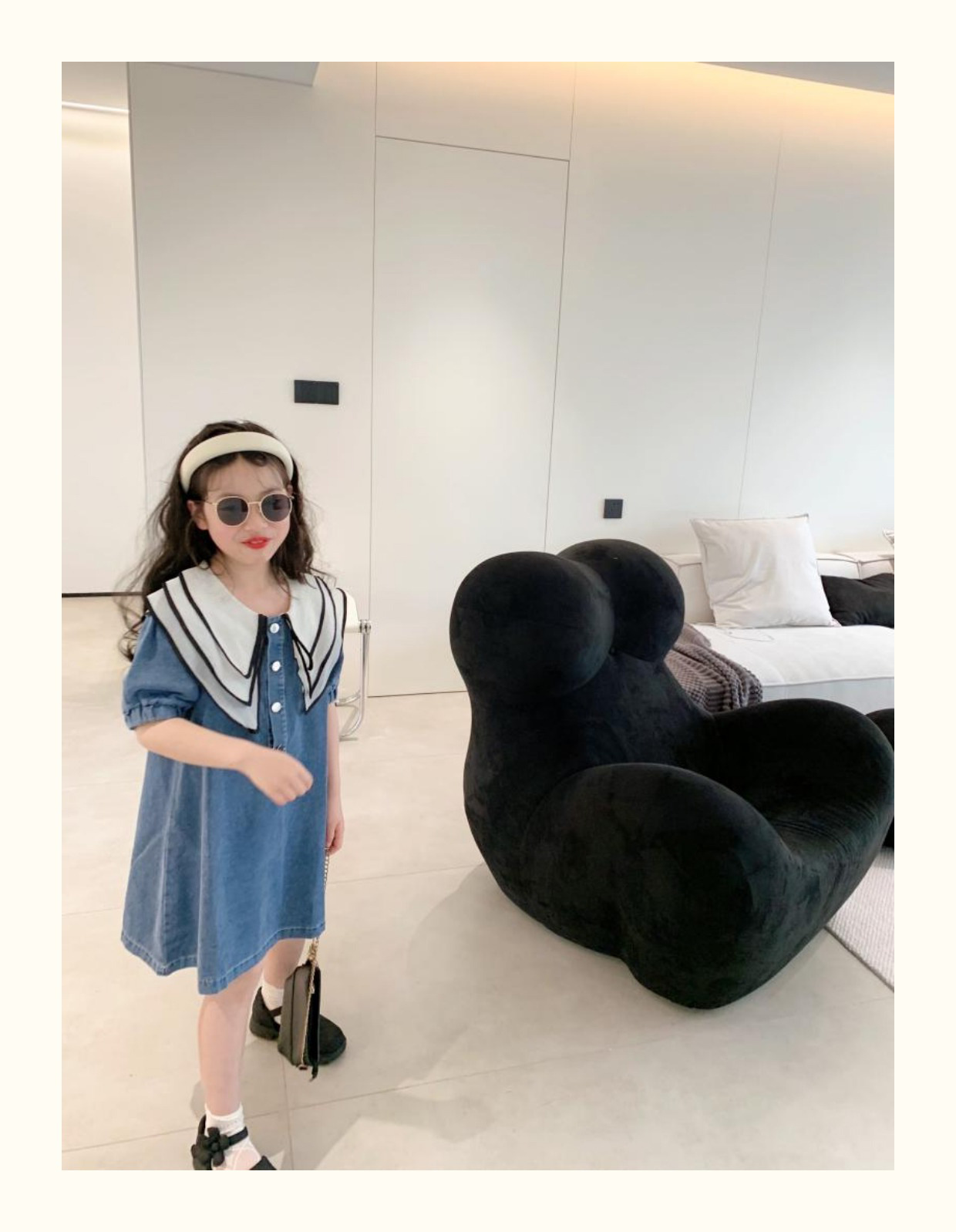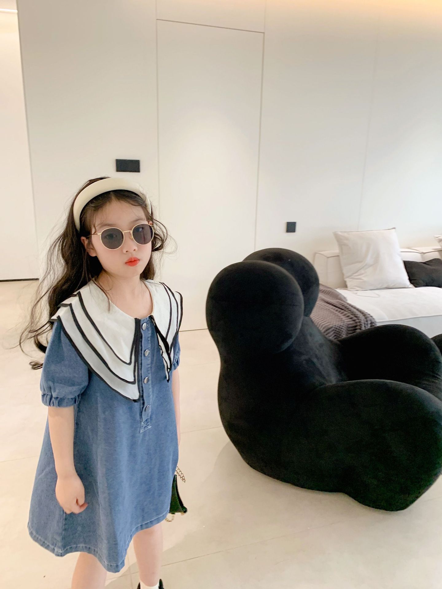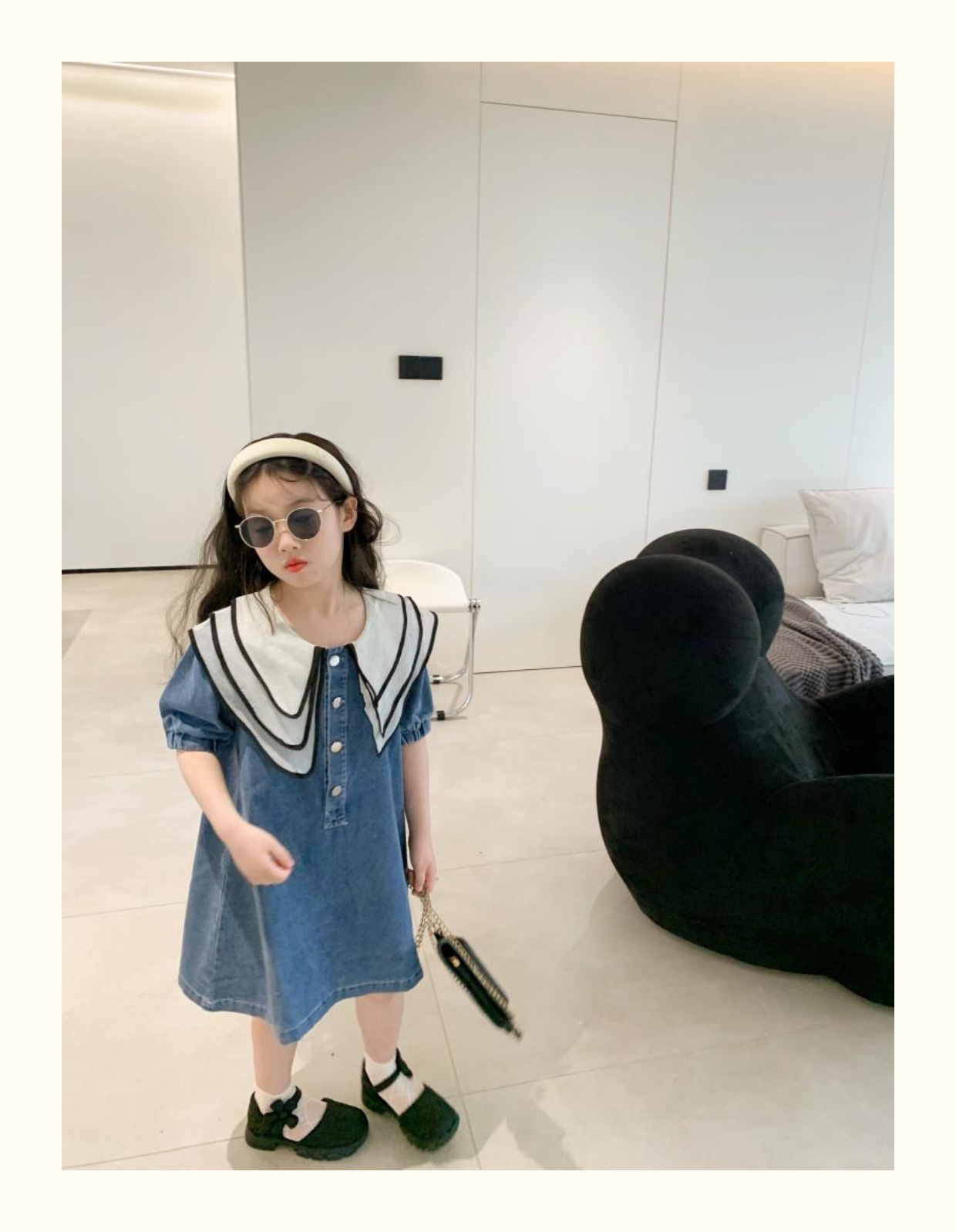 데님 치마 인형 칼라 반팔 공주 치마 데님 원피스 어린이 머리카락의 세대의 여름 소녀 한국어 버전스토어 가기