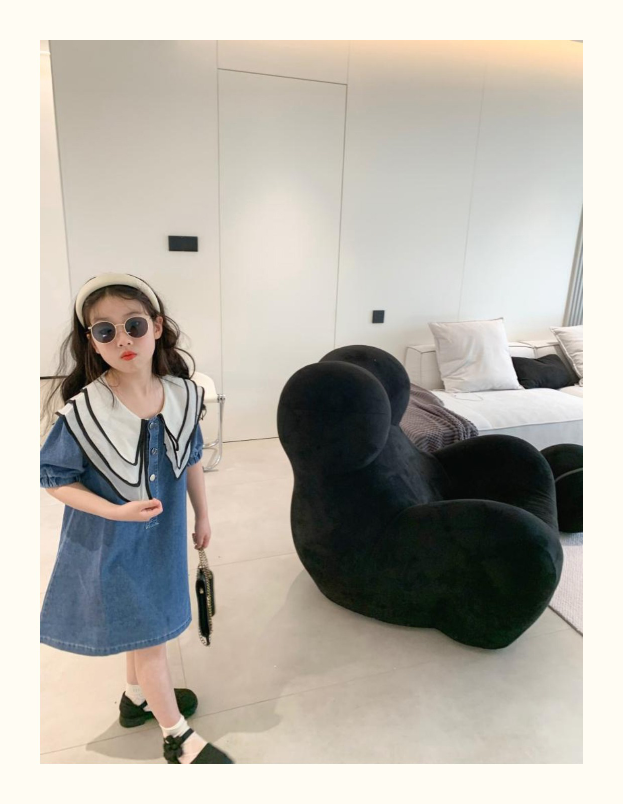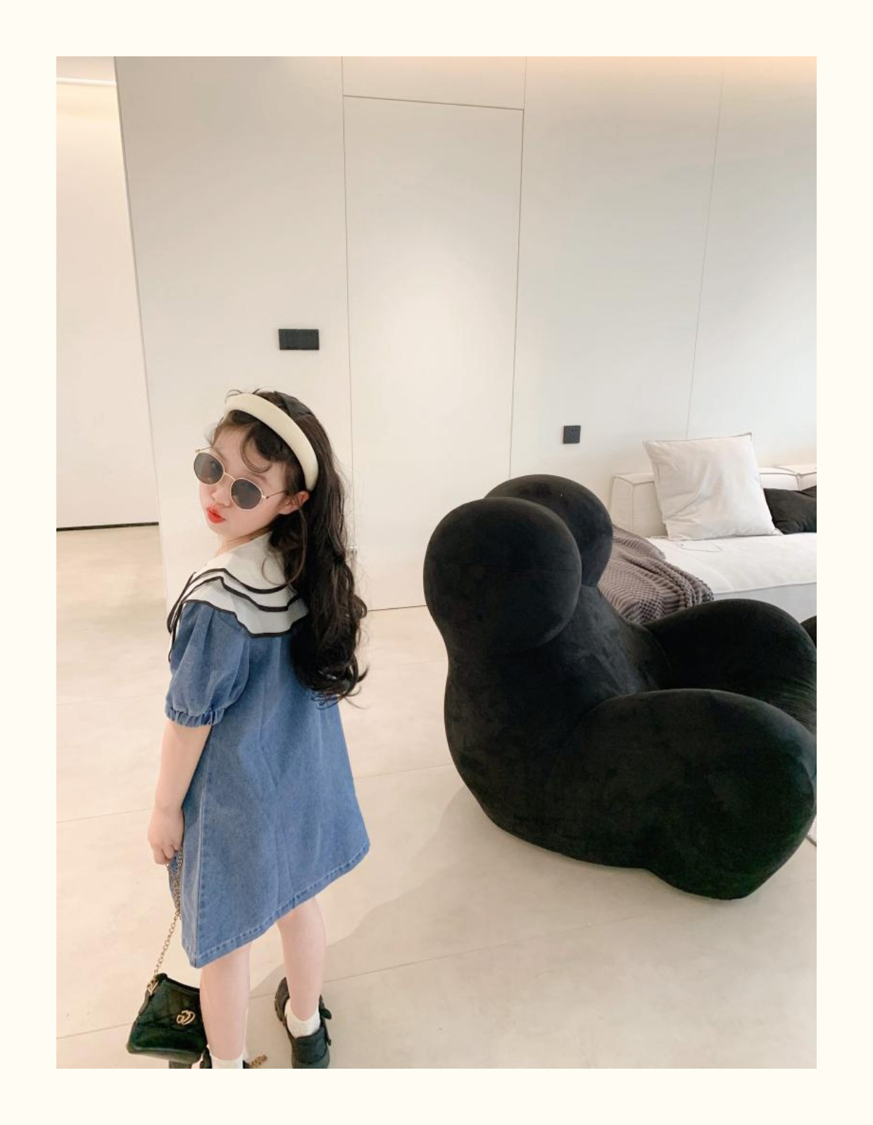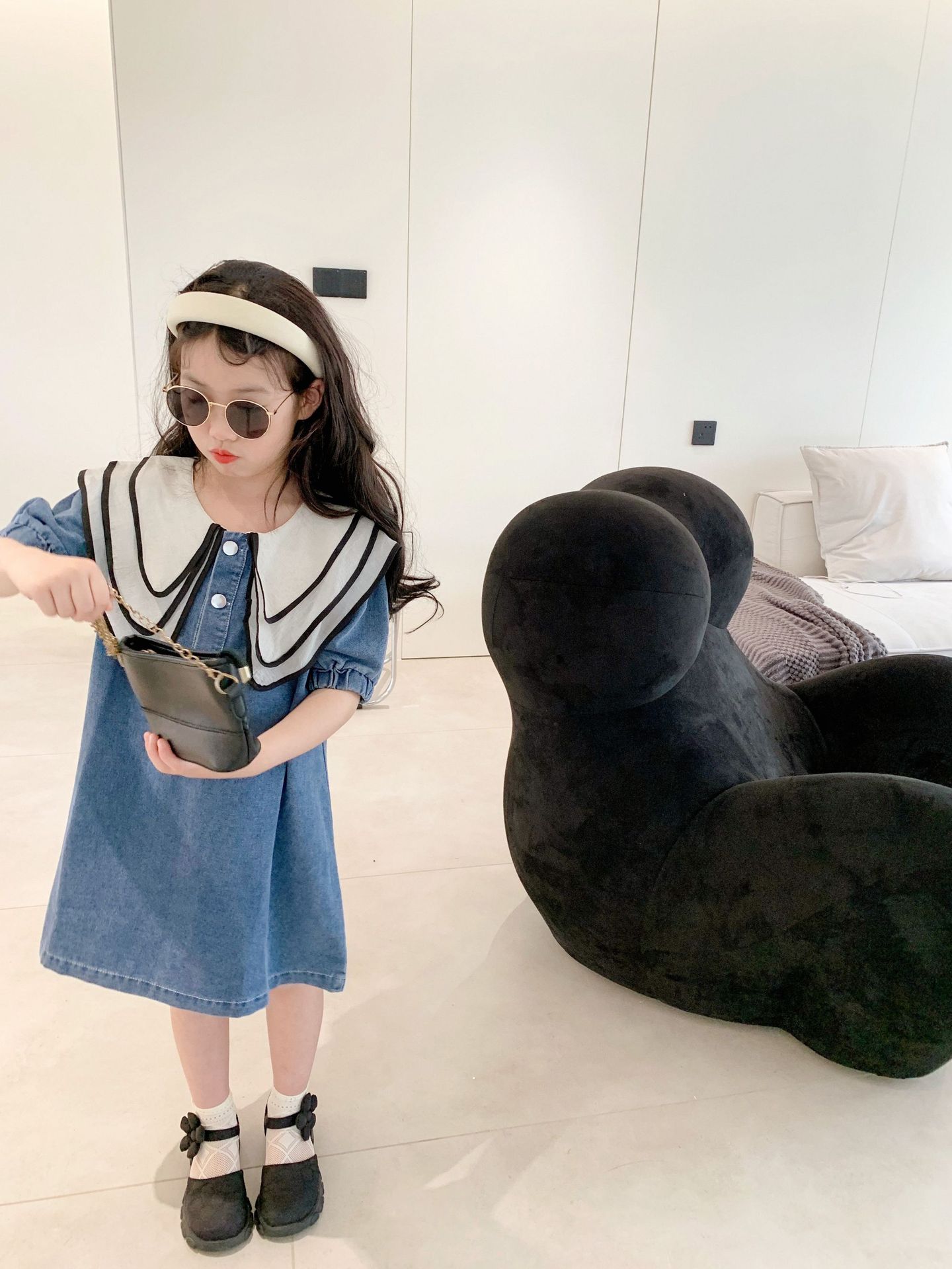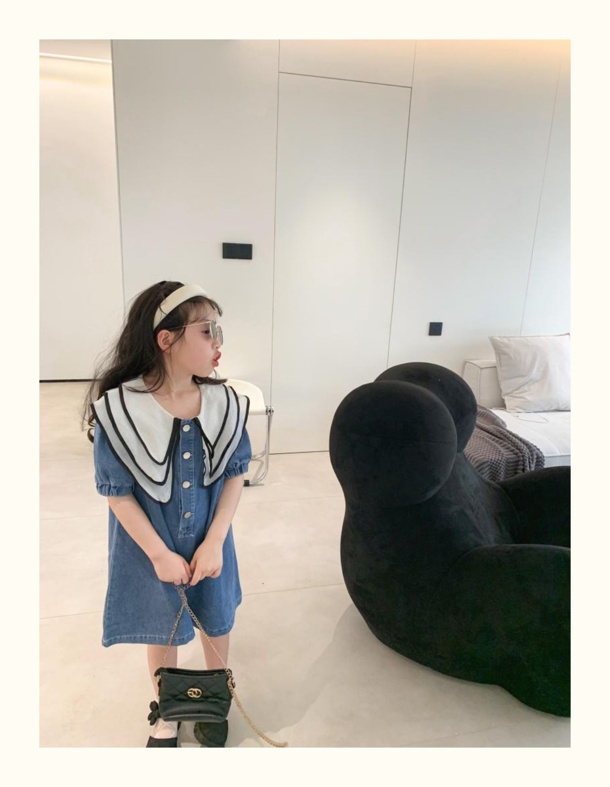 데님 치마 인형 칼라 반팔 공주 치마 데님 원피스 어린이 머리카락의 세대의 여름 소녀 한국어 버전스토어 가기