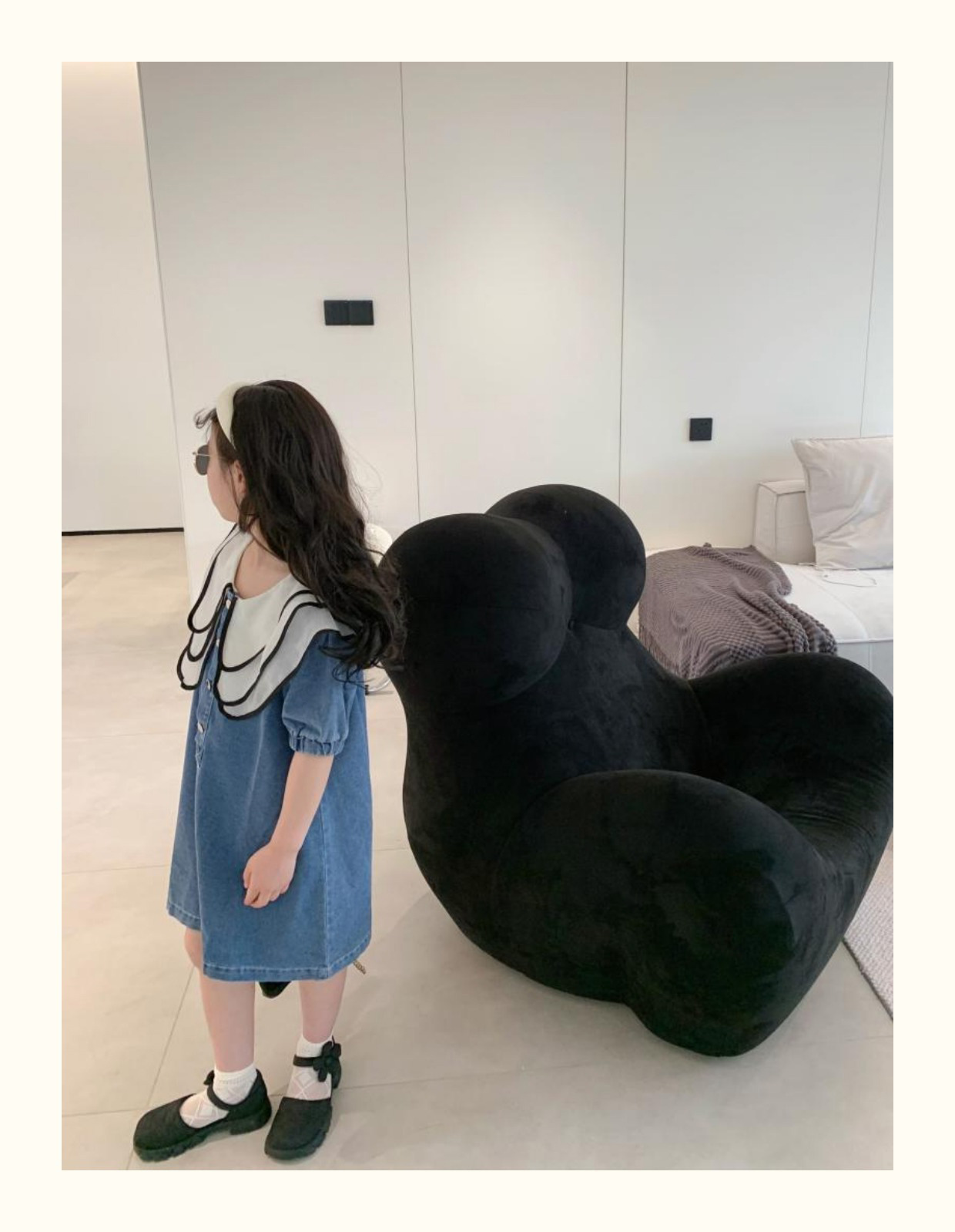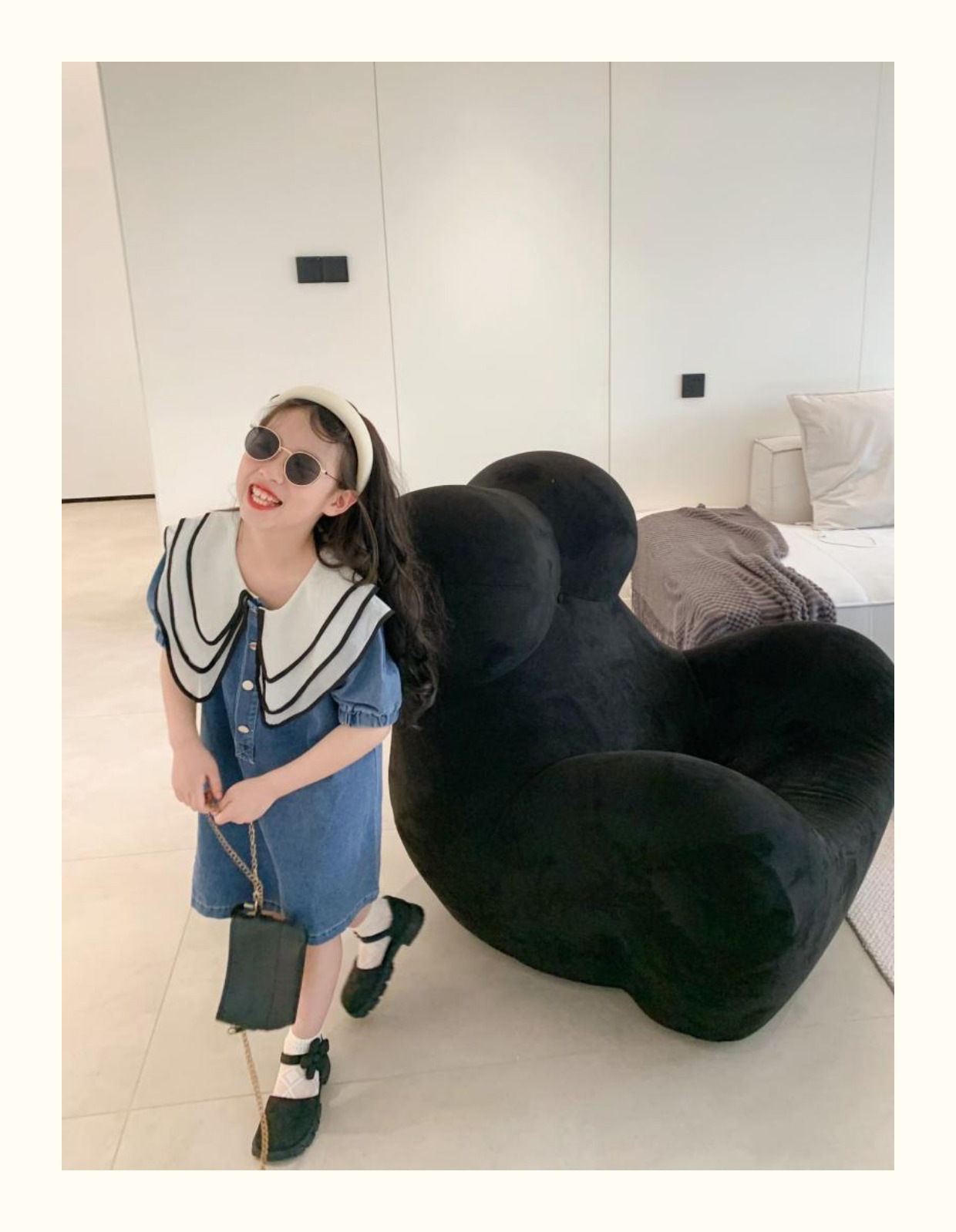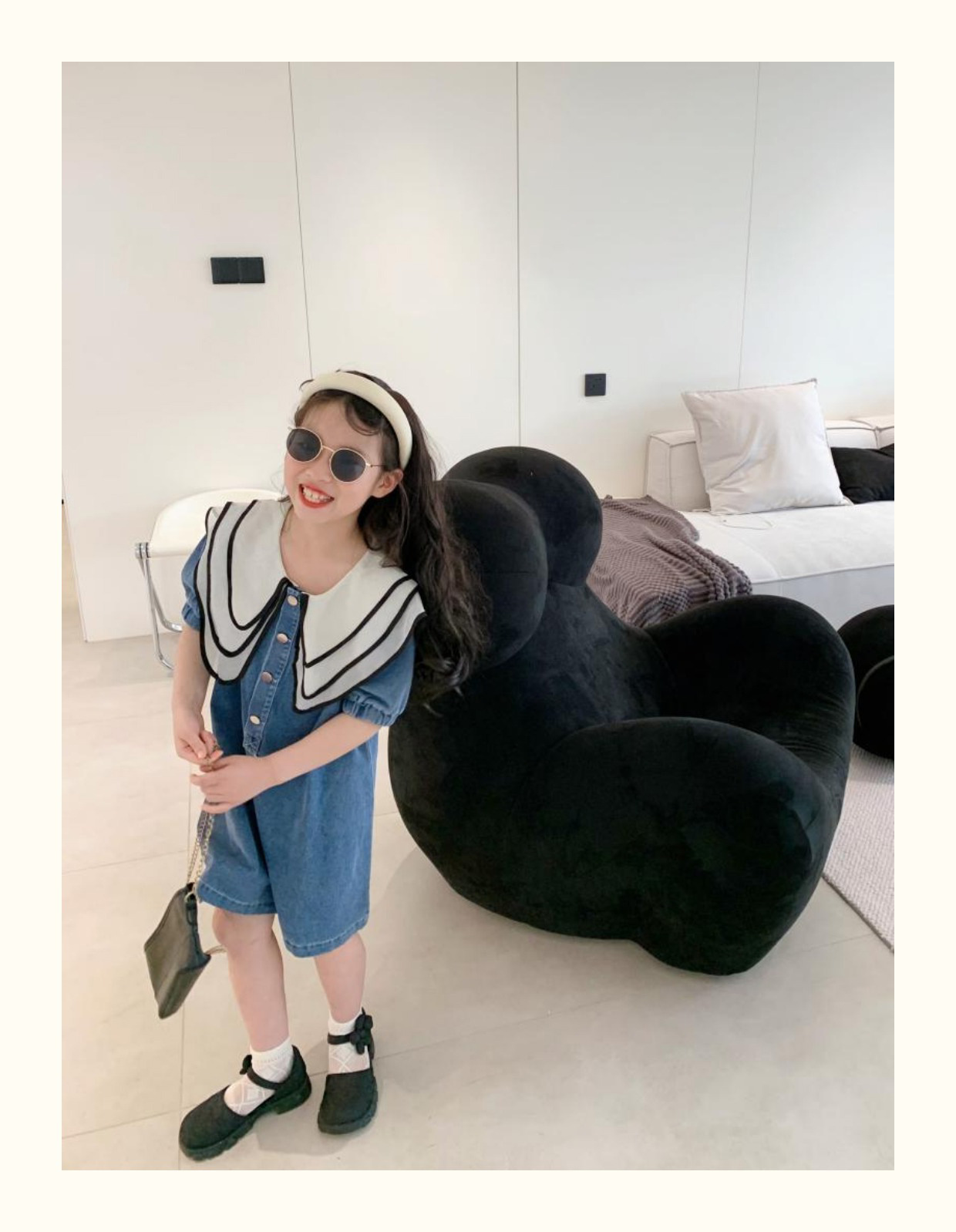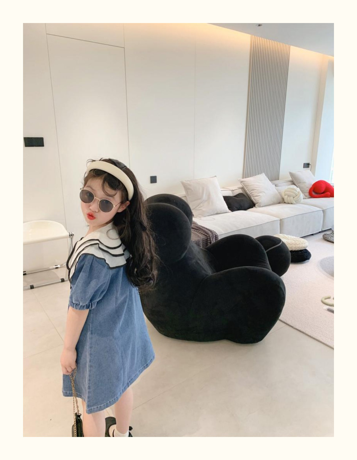 데님 치마 인형 칼라 반팔 공주 치마 데님 원피스 어린이 머리카락의 세대의 여름 소녀 한국어 버전스토어 가기