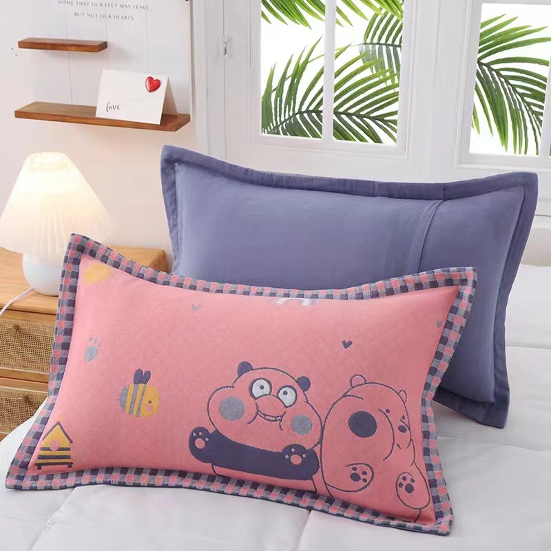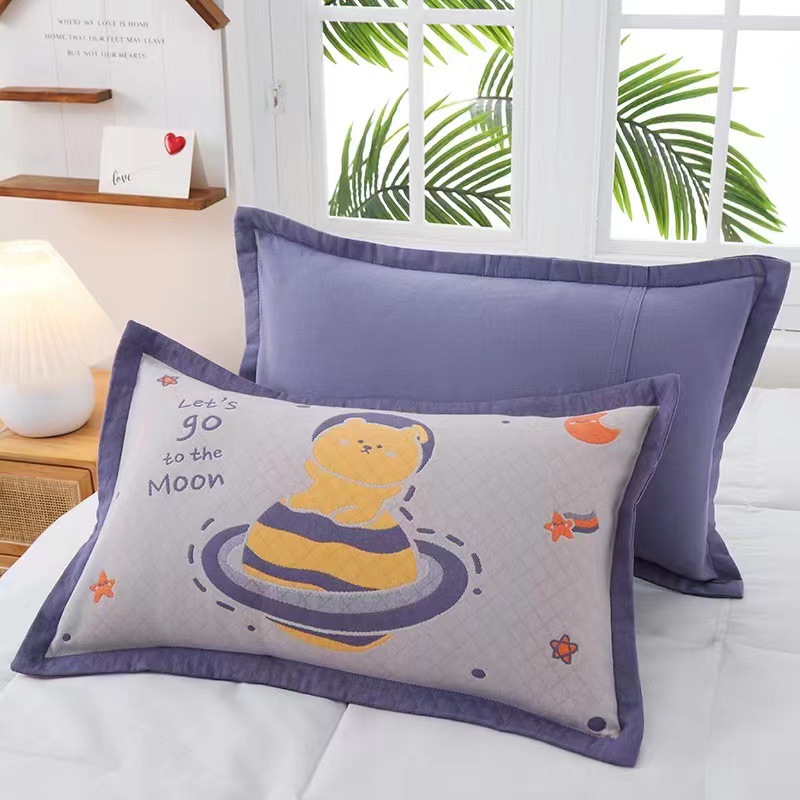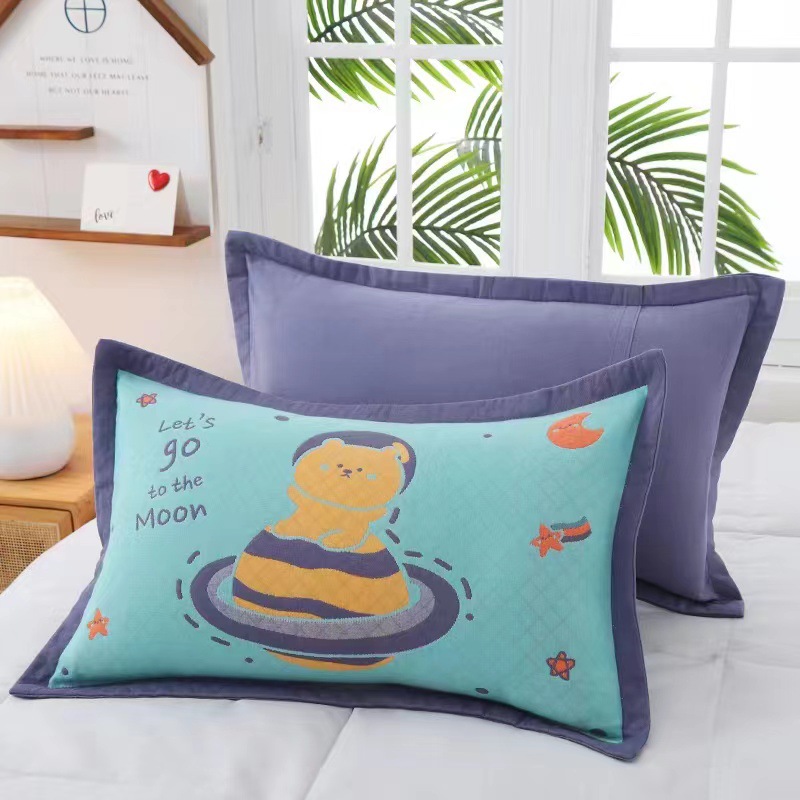 중간 거즈 베갯잇 35*55 넓은 챙 귀여운 만화 어린이 베갯잇 원사 염색 자카드 먼지-절연 내구성 소프트
