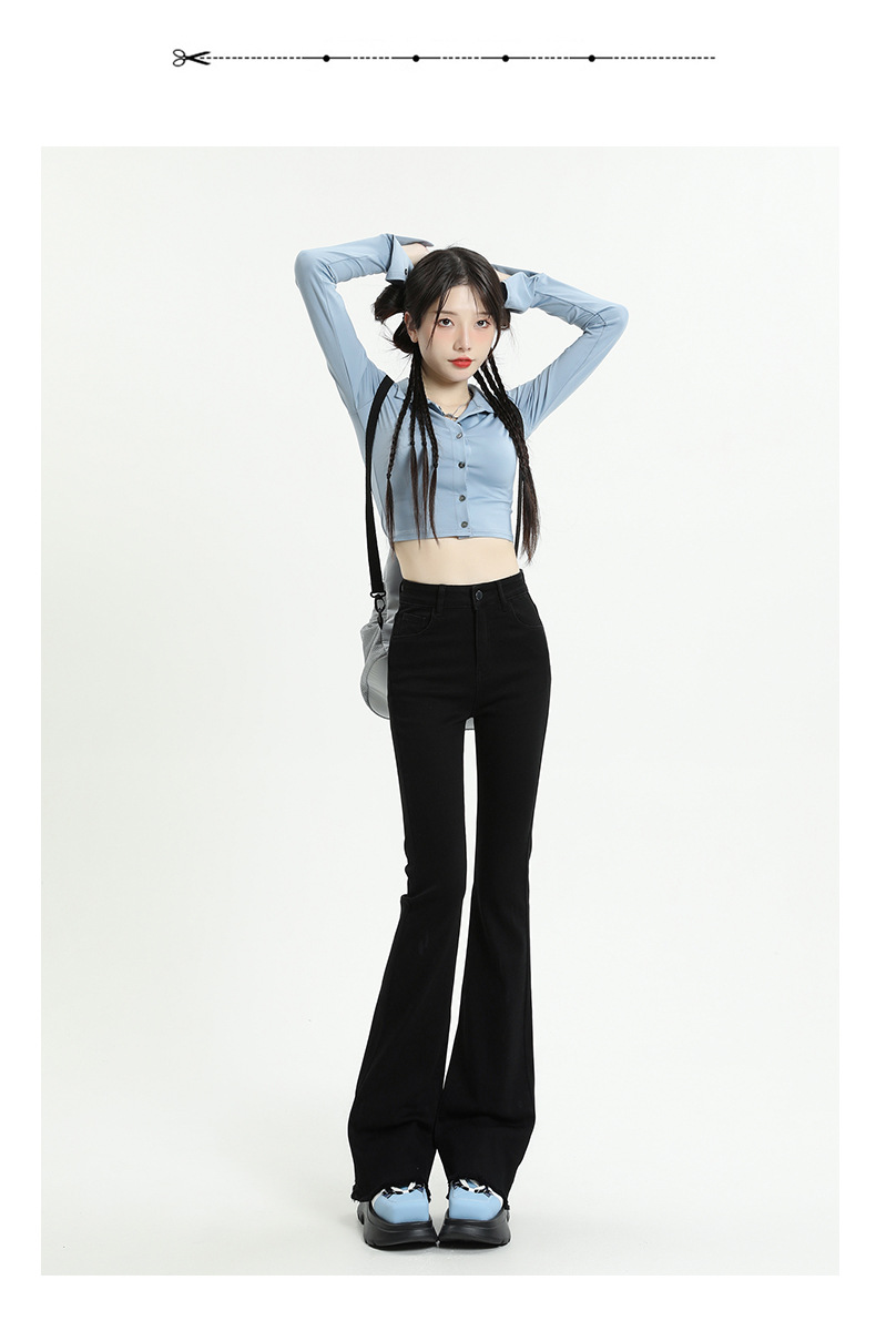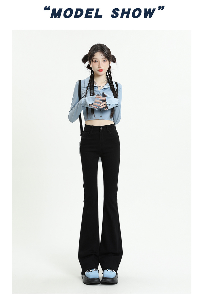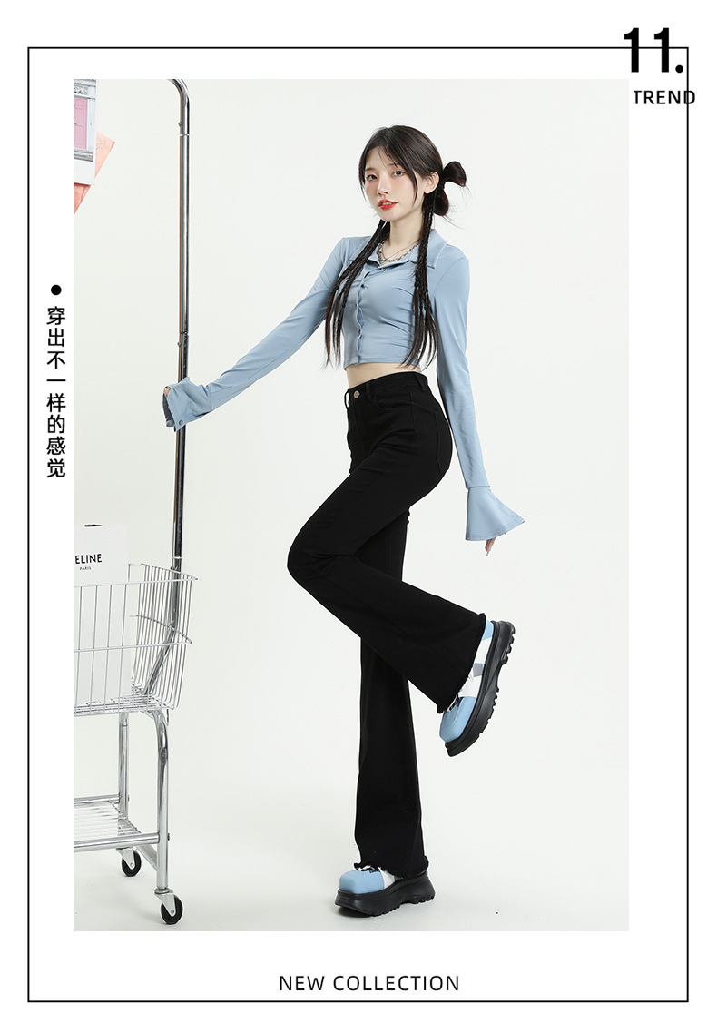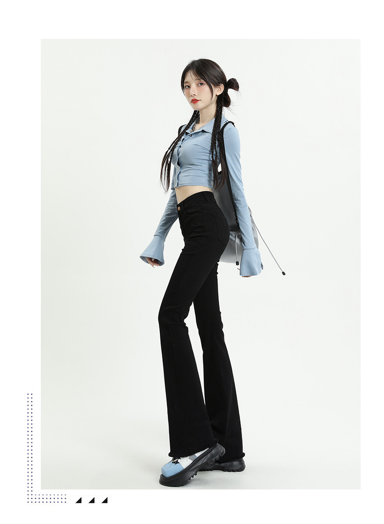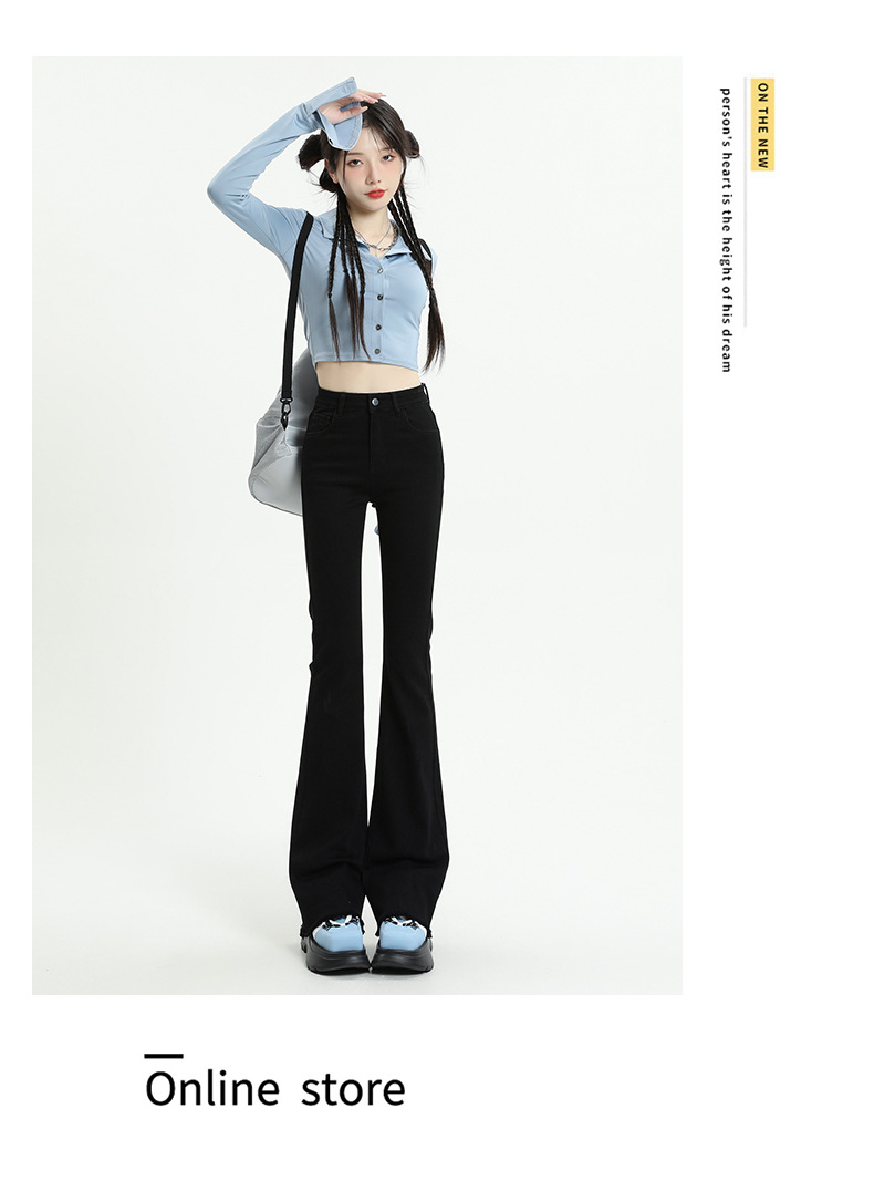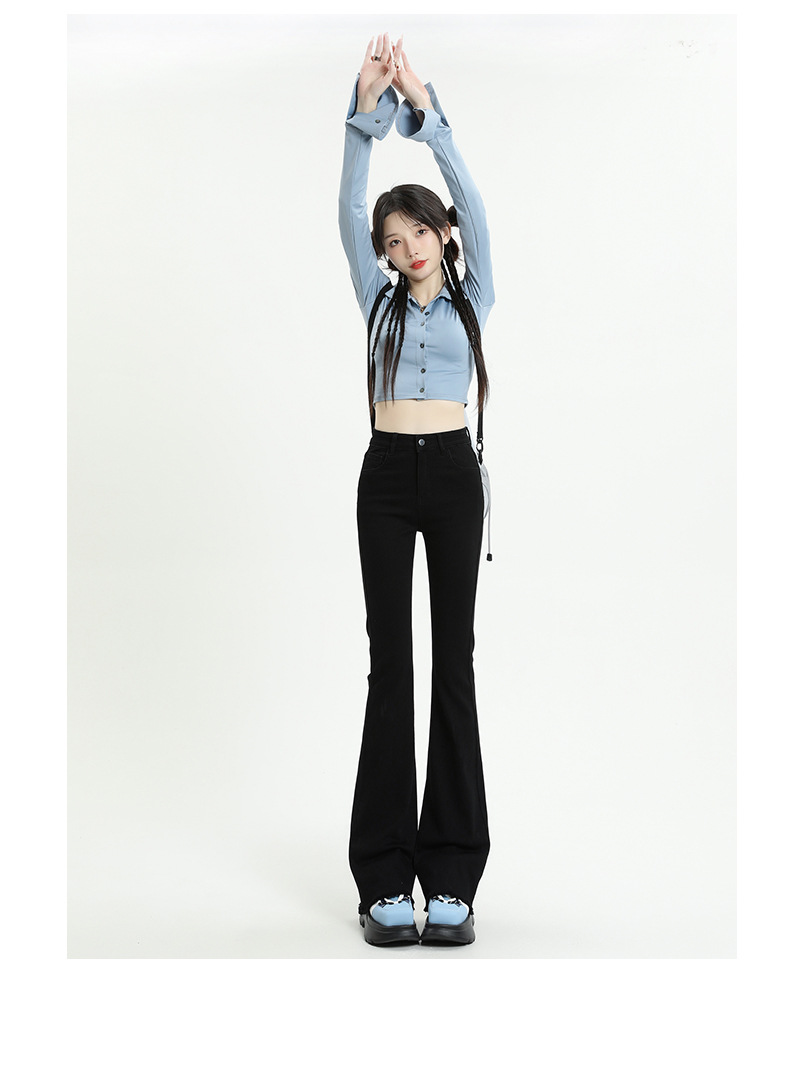 마이크로 플레어 청바지 여성용 가을과 겨울 기모 두꺼운 검은 색 높은 허리 탄성 헝겊 바지 슬림 핏 슬림 바지스토어 가기