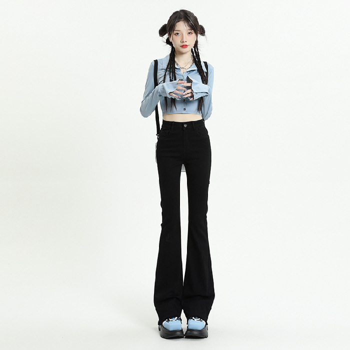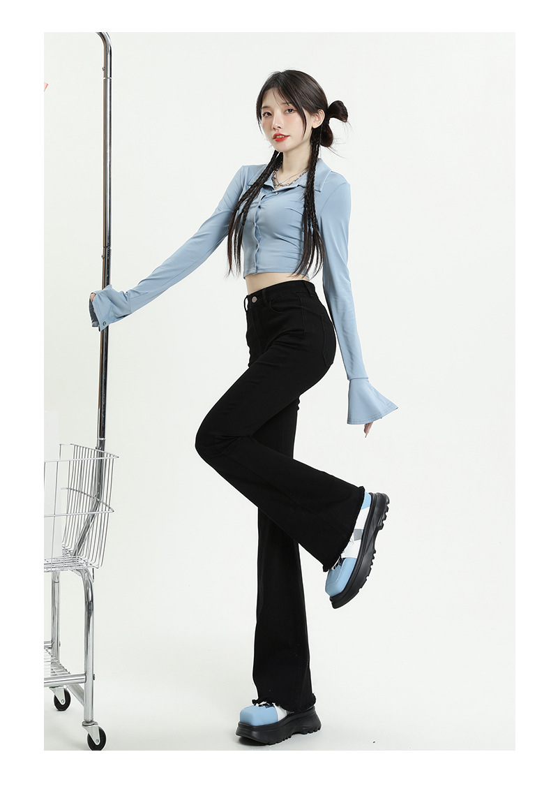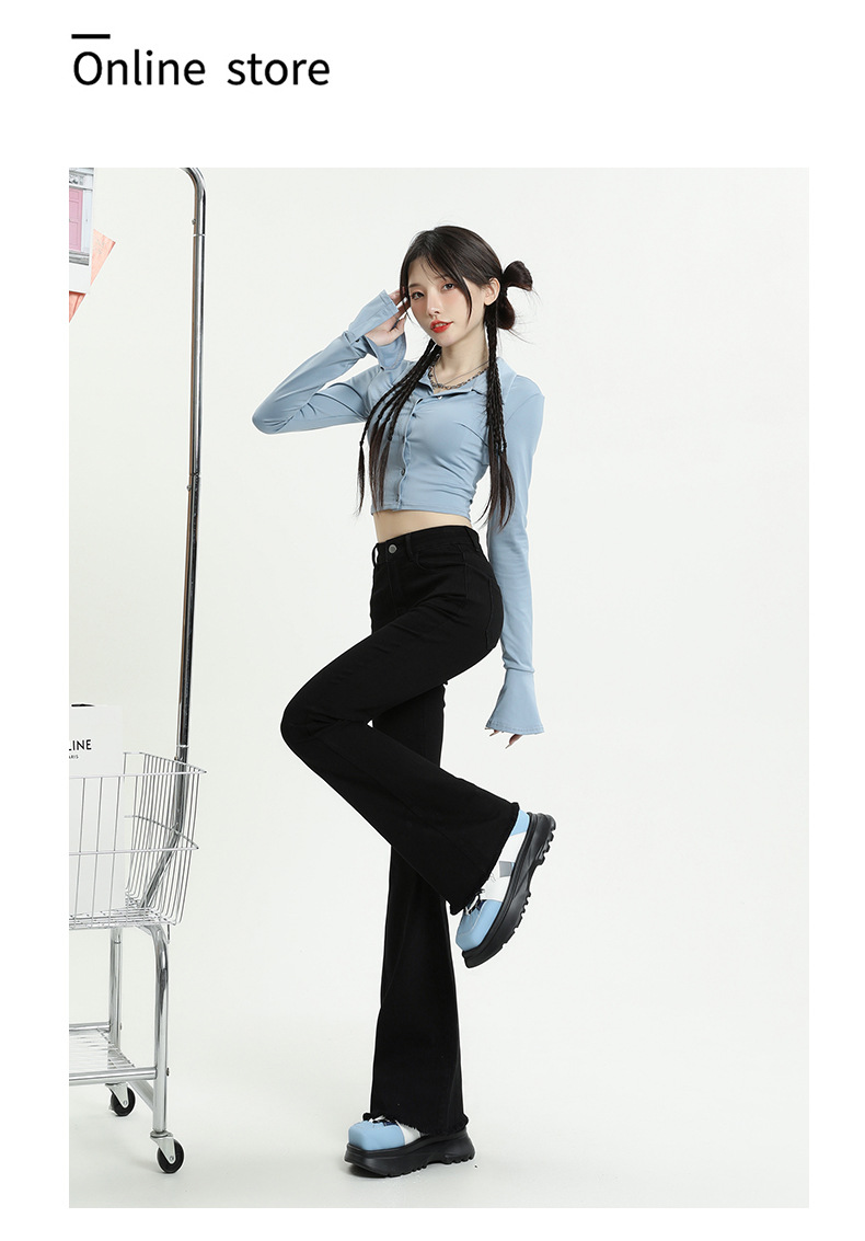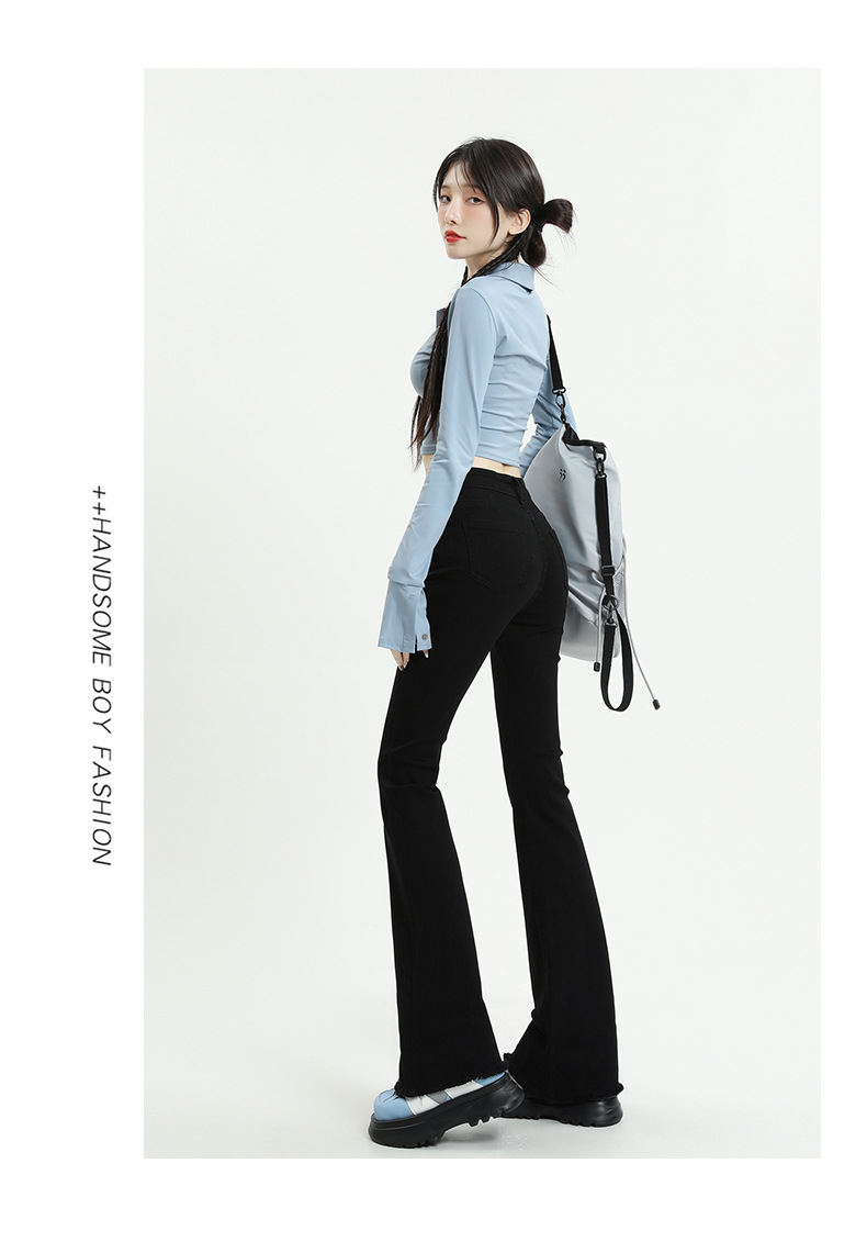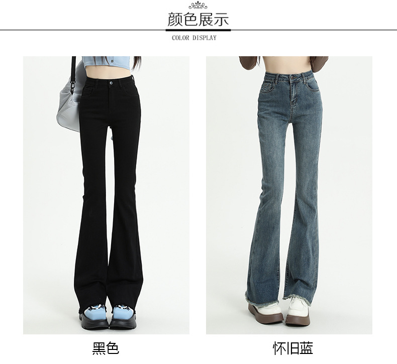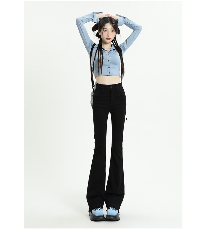 마이크로 플레어 청바지 여성용 가을과 겨울 기모 두꺼운 검은 색 높은 허리 탄성 헝겊 바지 슬림 핏 슬림 바지스토어 가기