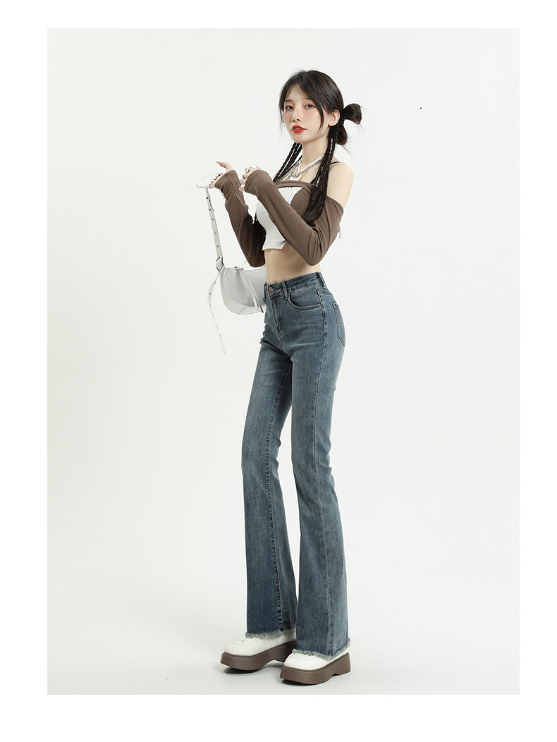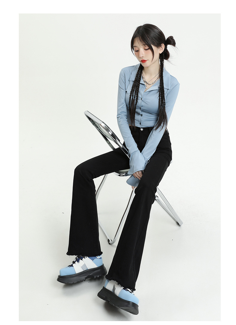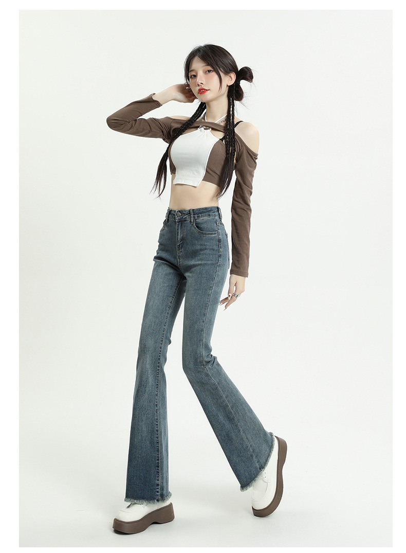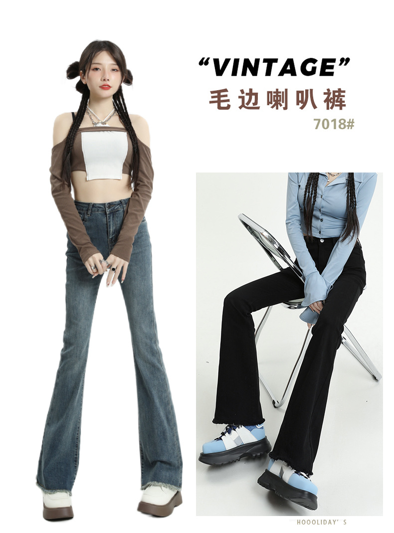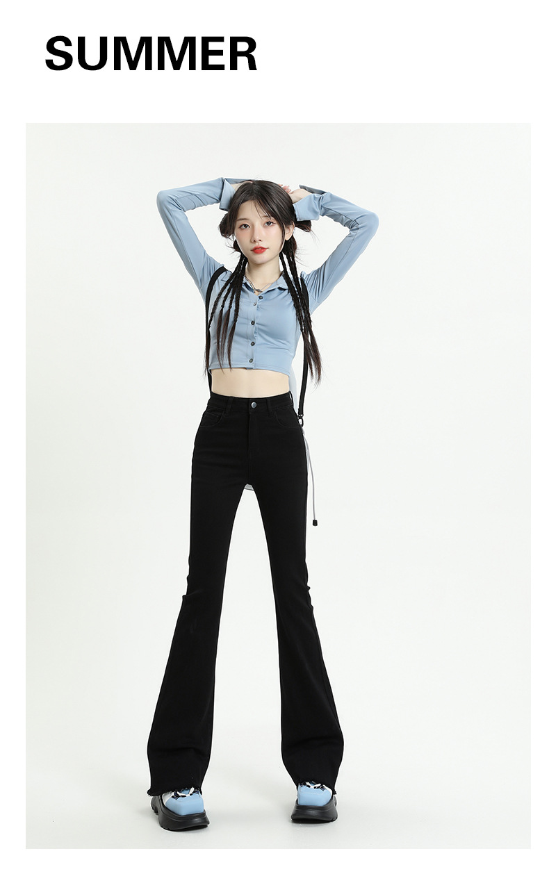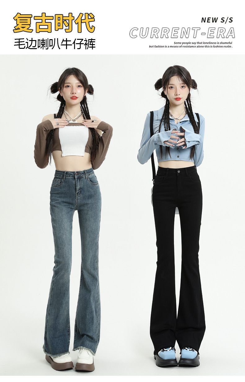 마이크로 플레어 청바지 여성용 가을과 겨울 기모 두꺼운 검은 색 높은 허리 탄성 헝겊 바지 슬림 핏 슬림 바지스토어 가기