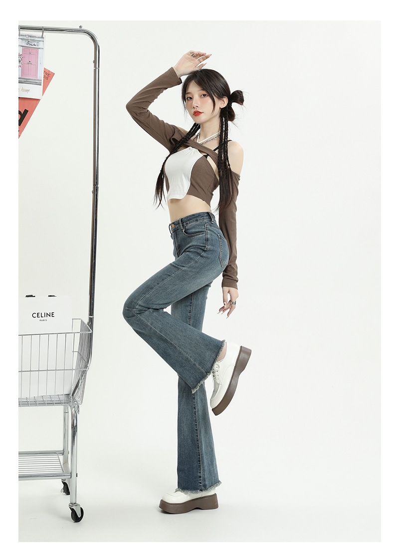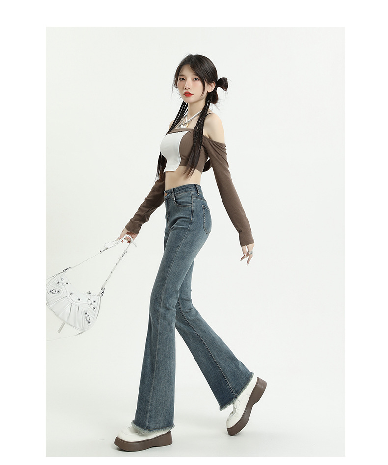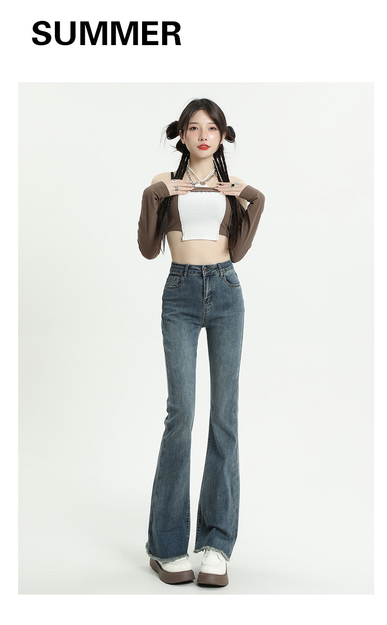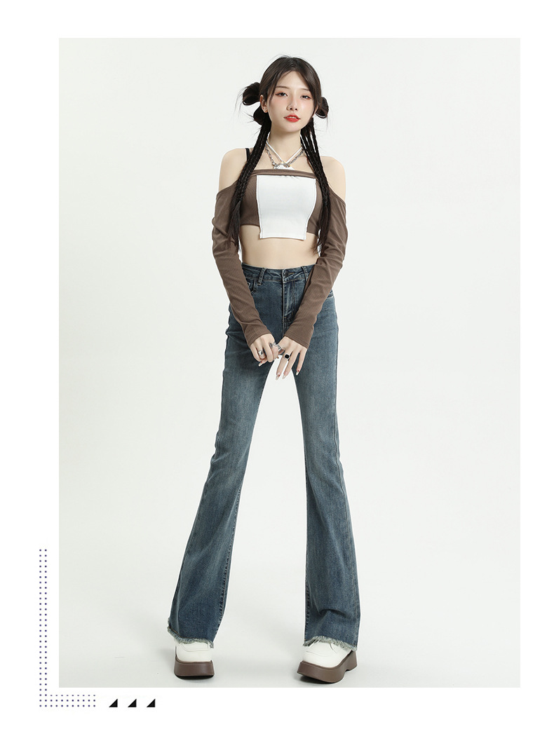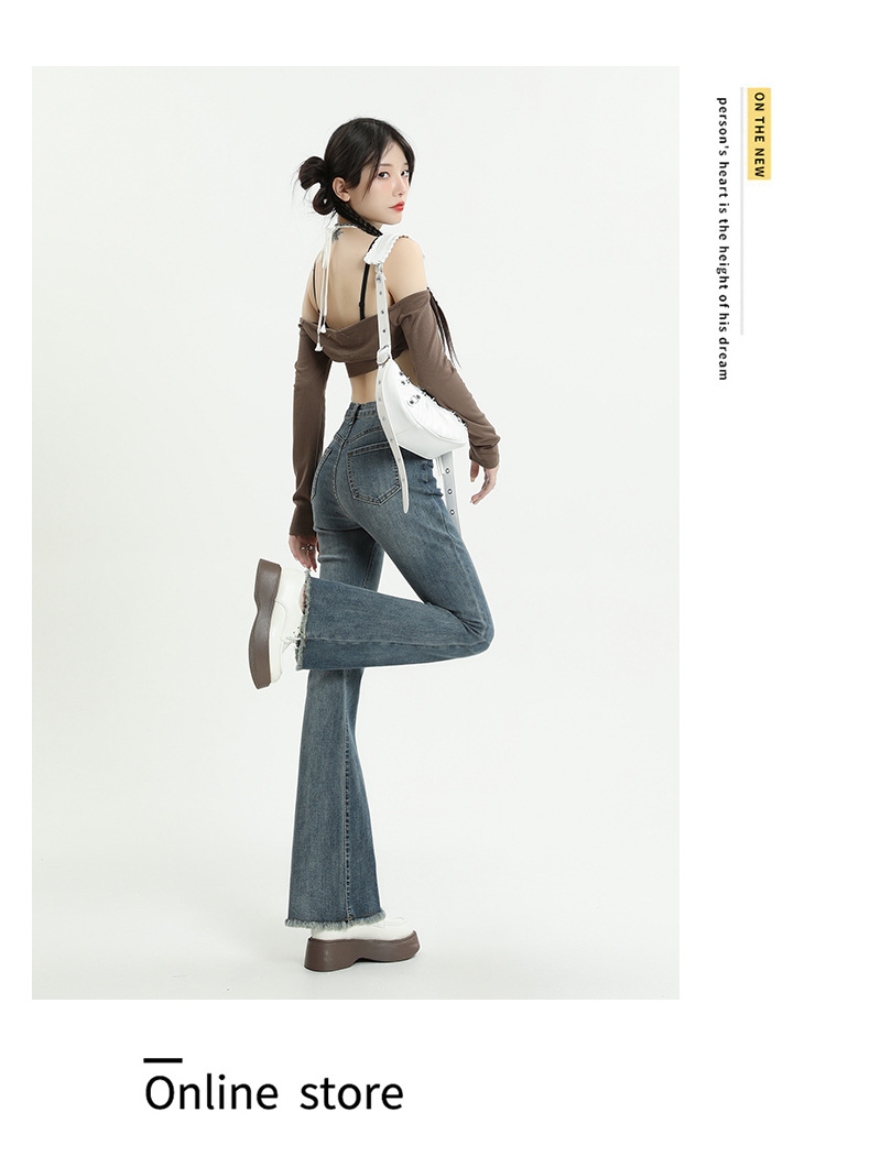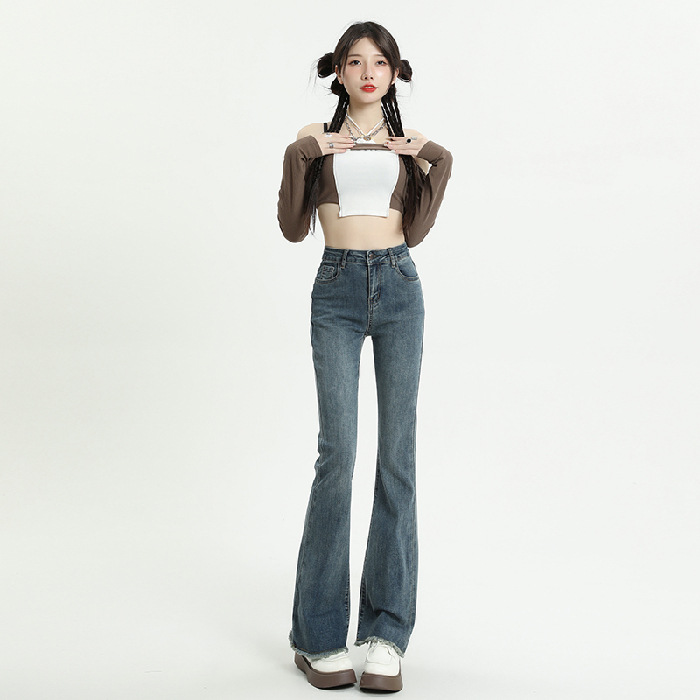 마이크로 플레어 청바지 여성용 가을과 겨울 기모 두꺼운 검은 색 높은 허리 탄성 헝겊 바지 슬림 핏 슬림 바지스토어 가기