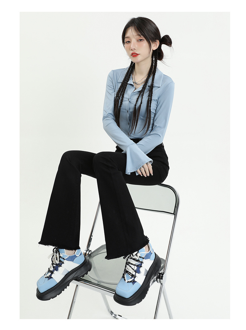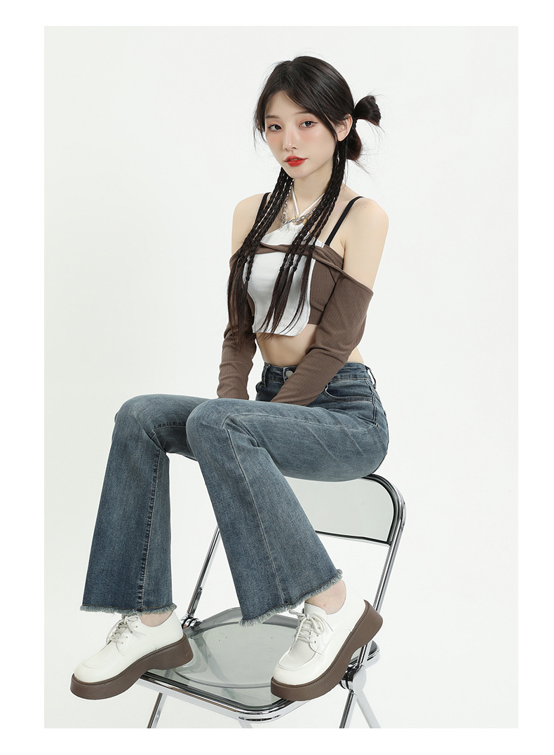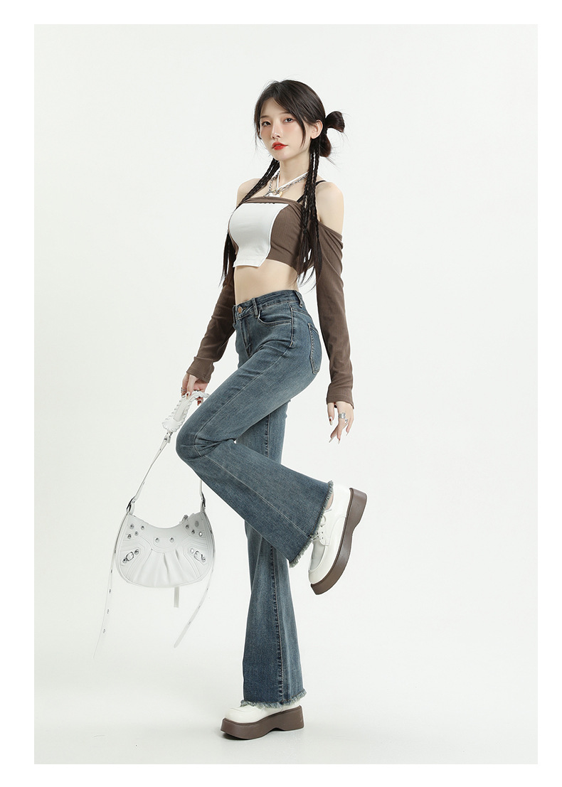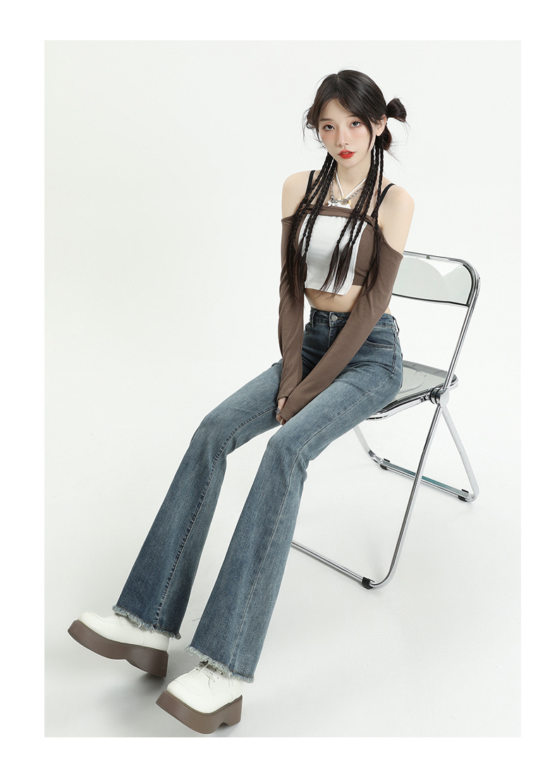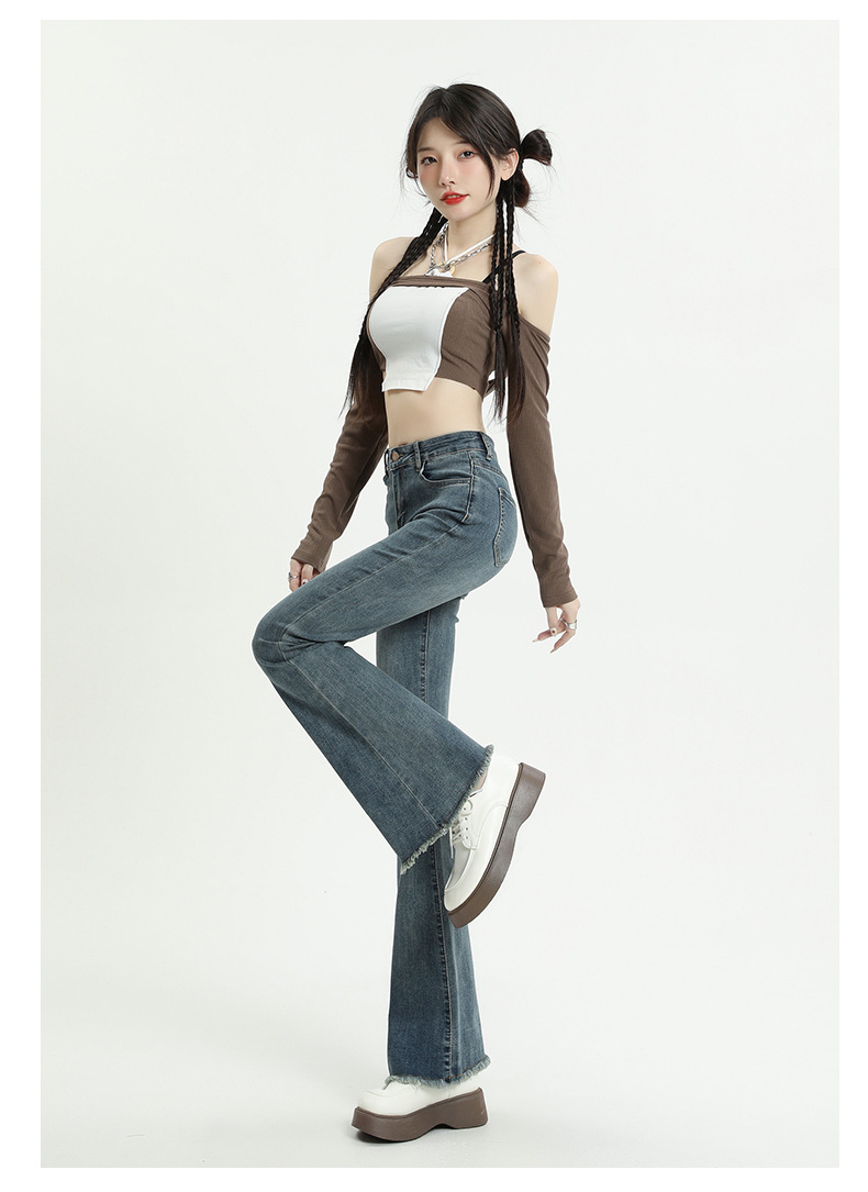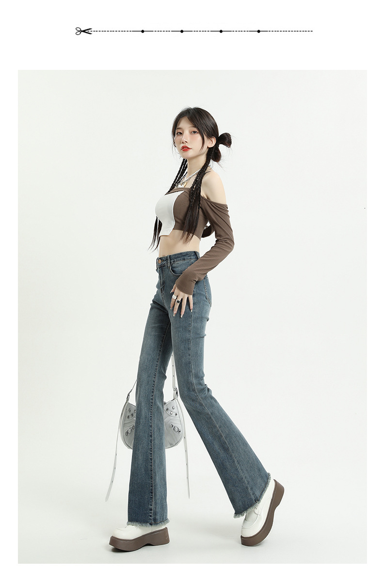 마이크로 플레어 청바지 여성용 가을과 겨울 기모 두꺼운 검은 색 높은 허리 탄성 헝겊 바지 슬림 핏 슬림 바지스토어 가기