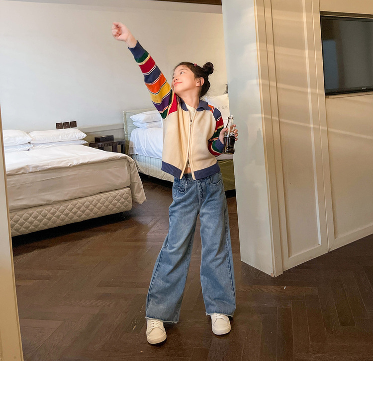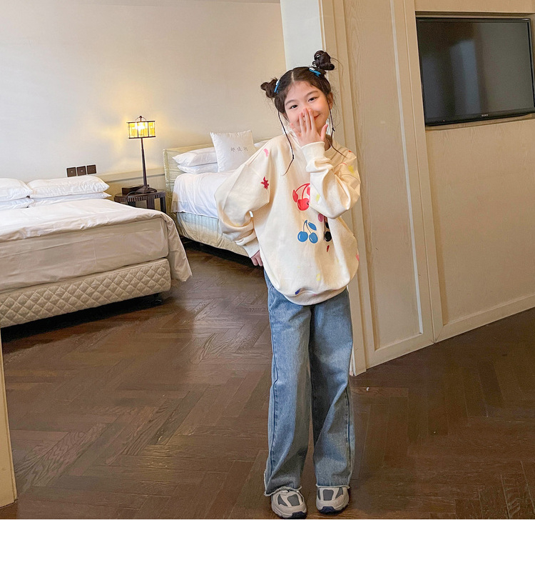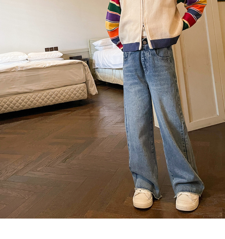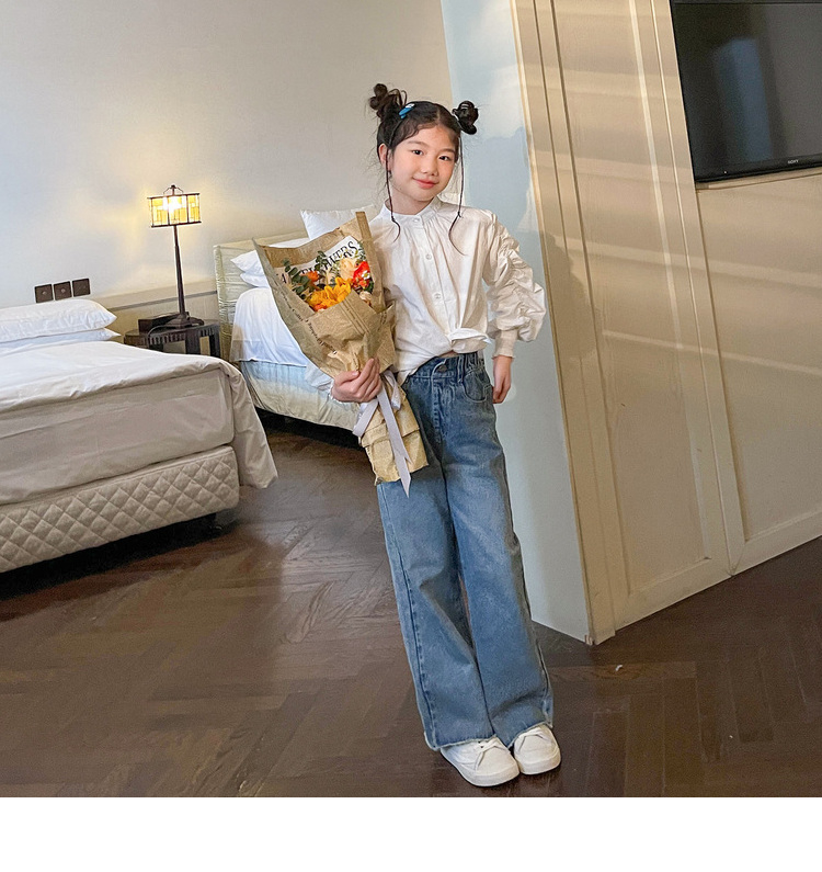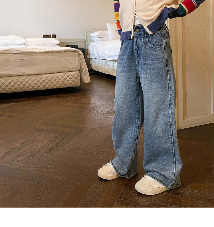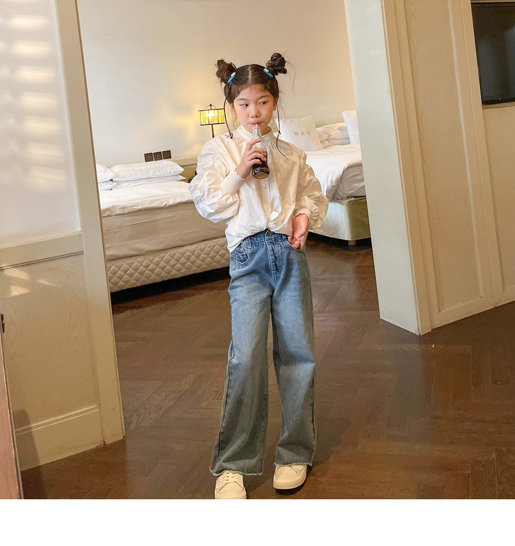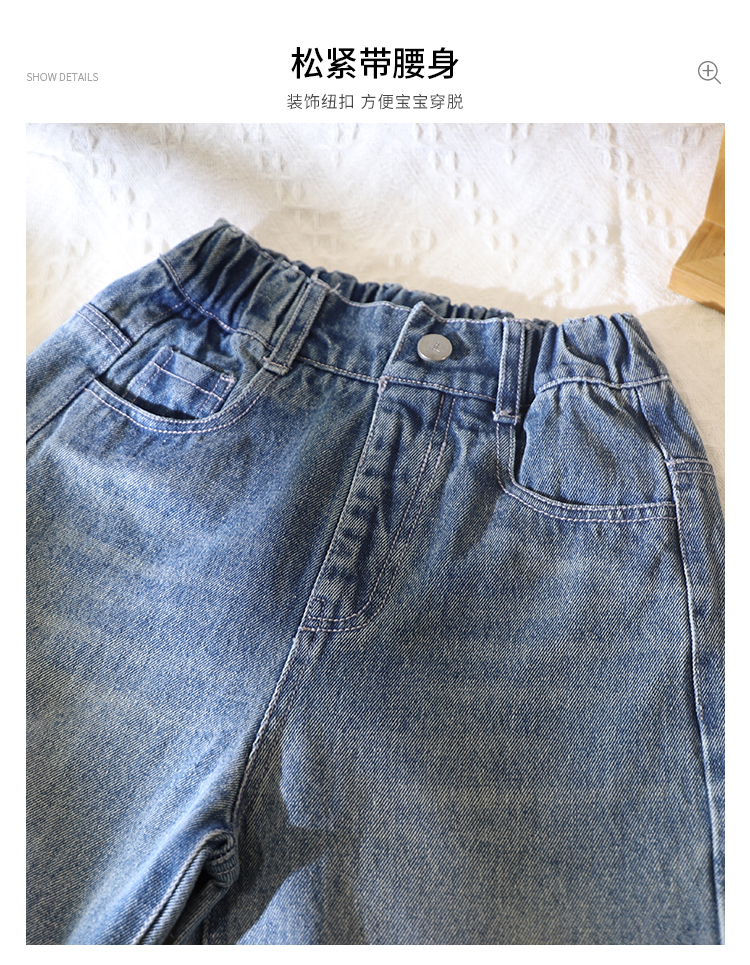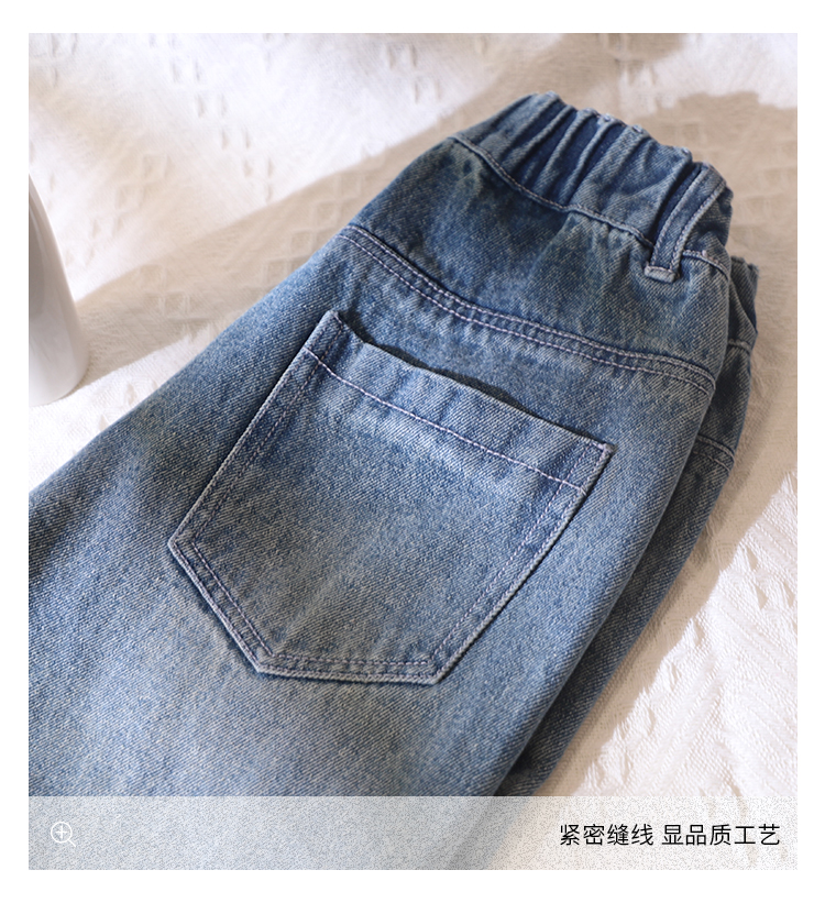 소녀 바지 2025 봄 새로운 어린이 한국식 느슨한 랩 청바지 유행 봄 가을 스트레이트 바지스토어 가기