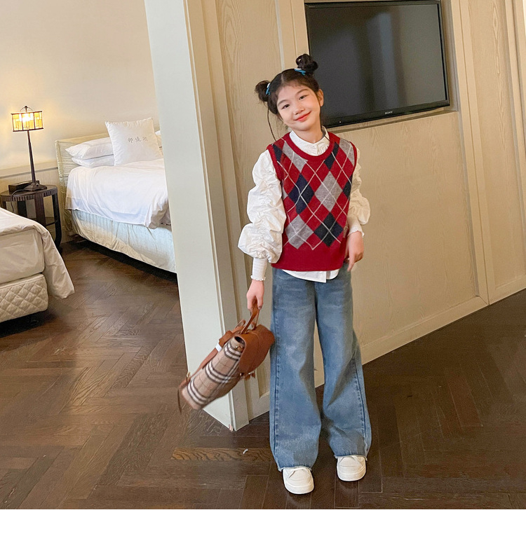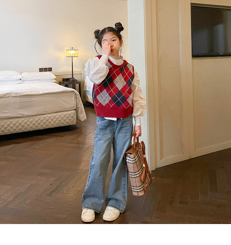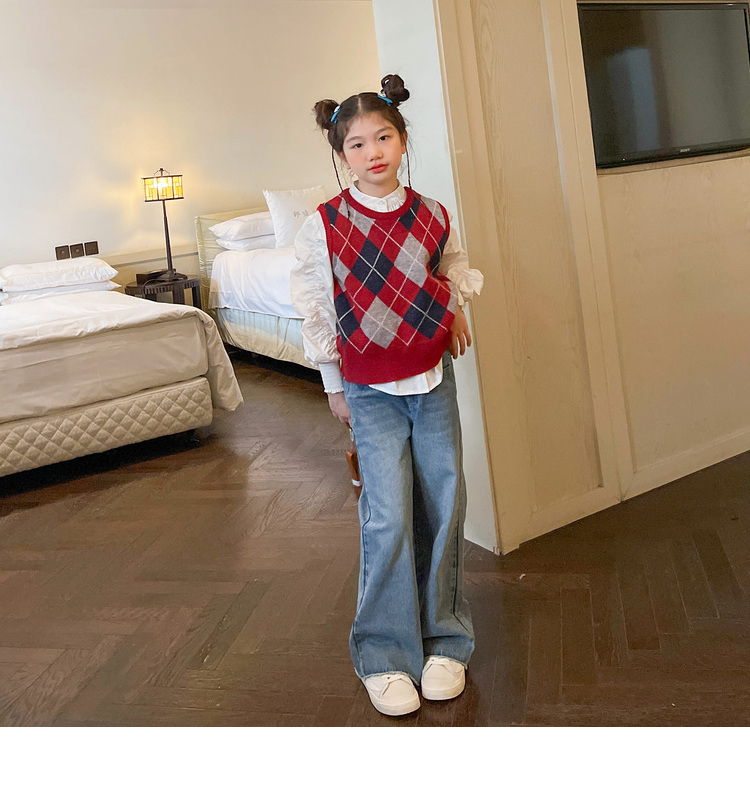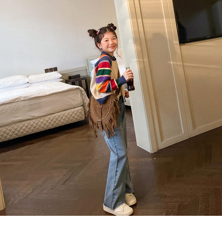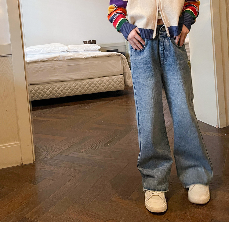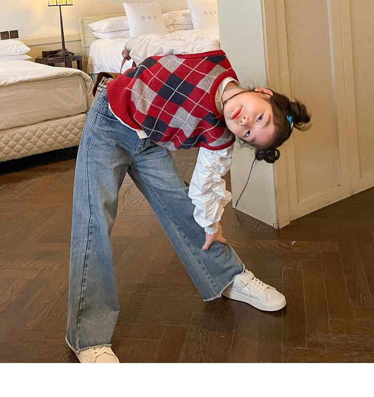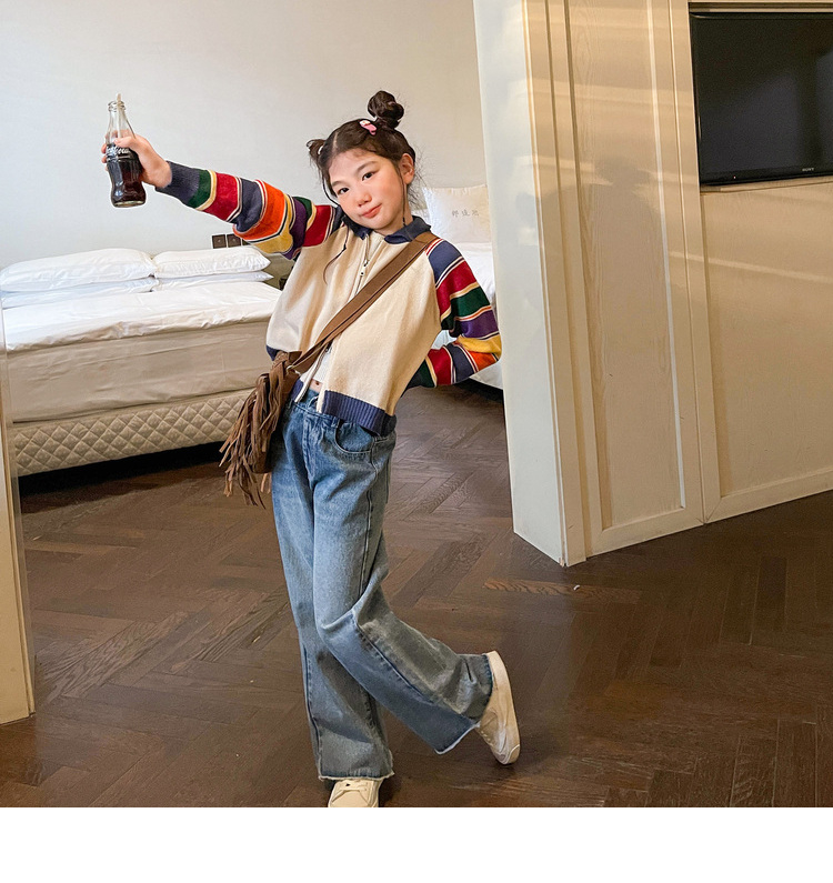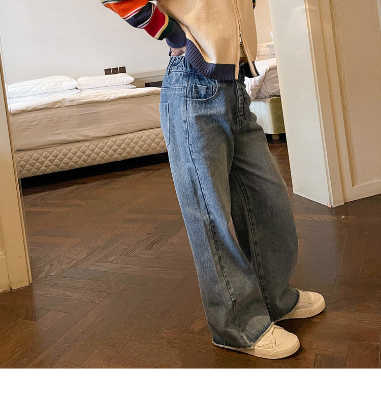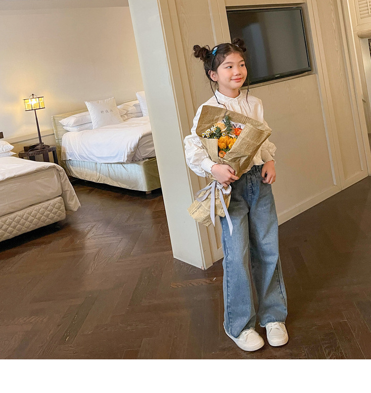 소녀 바지 2025 봄 새로운 어린이 한국식 느슨한 랩 청바지 유행 봄 가을 스트레이트 바지스토어 가기