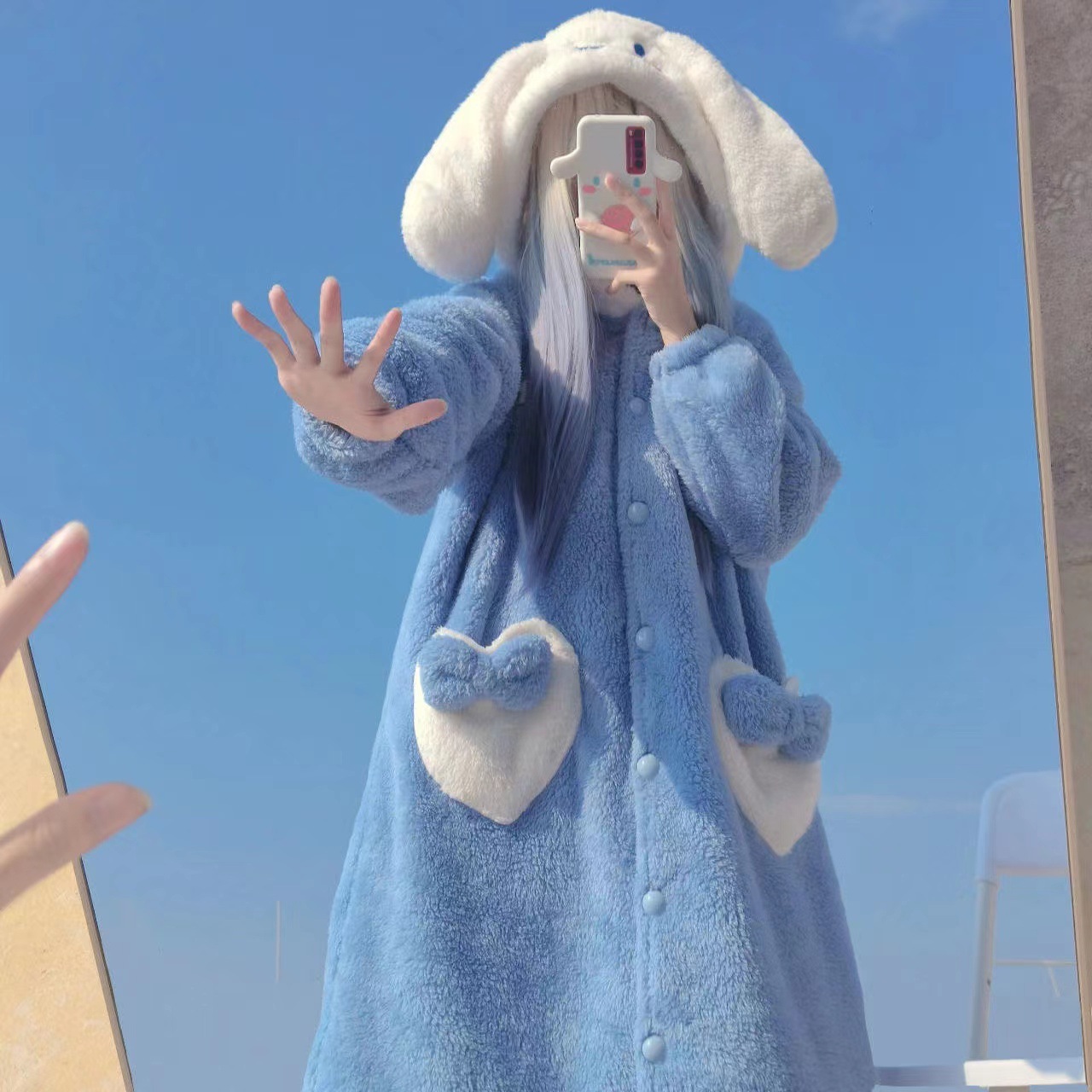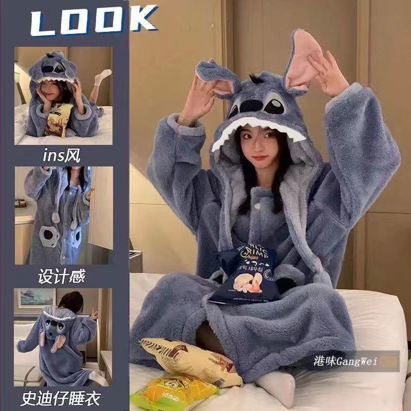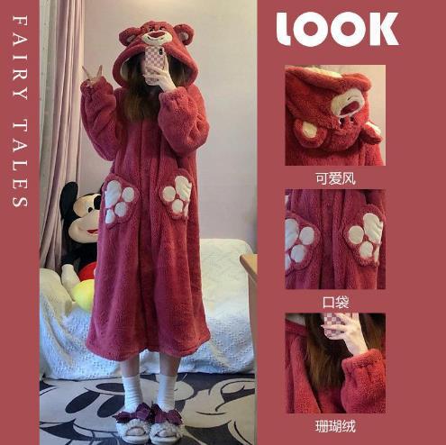 산호 양털 잠옷 여자의 가을과 겨울 두꺼운 따뜻한 세트 딸기 곰 포켓 겉옷에 대 한 산호 양털 가정 옷스토어 가기