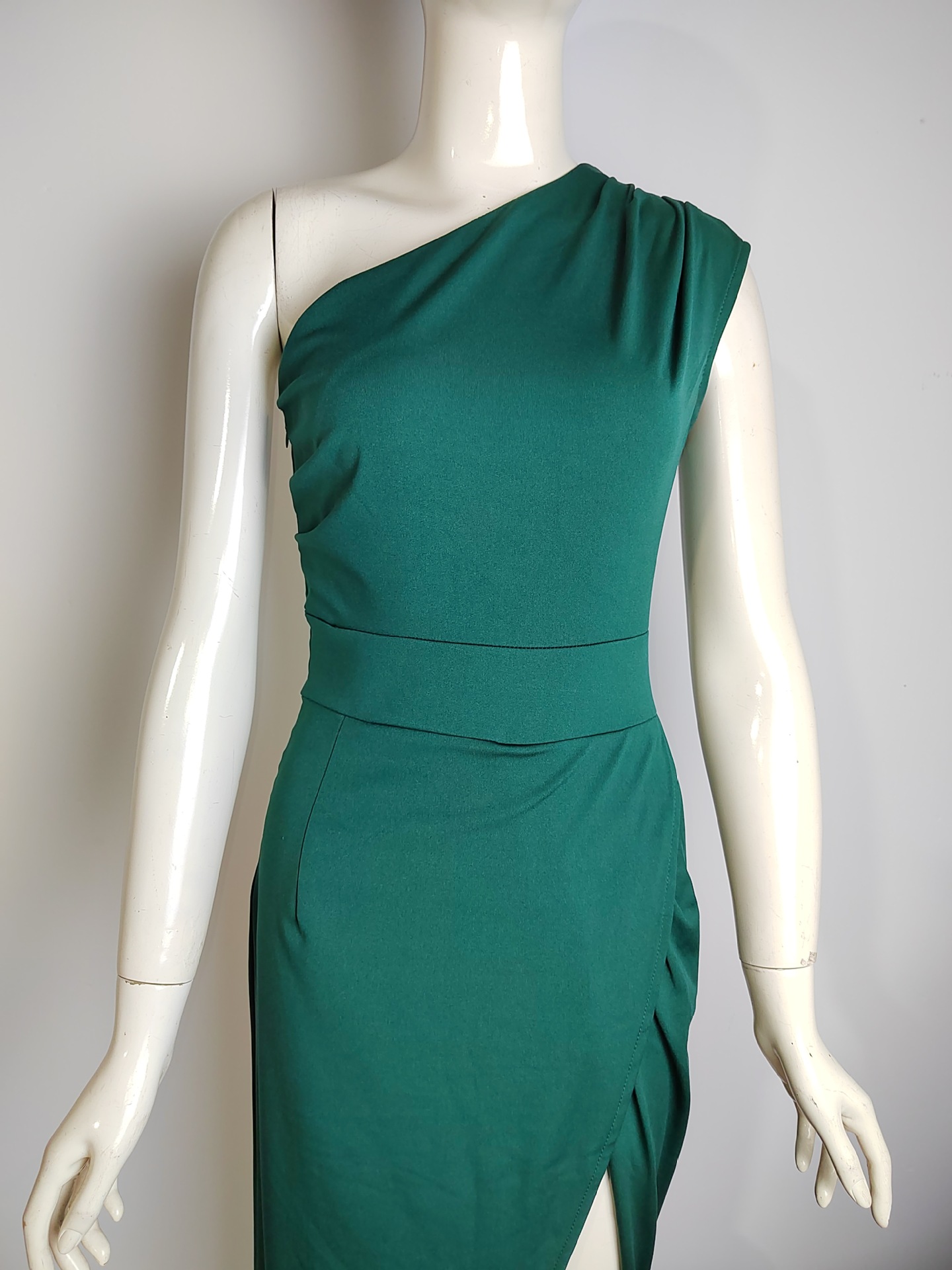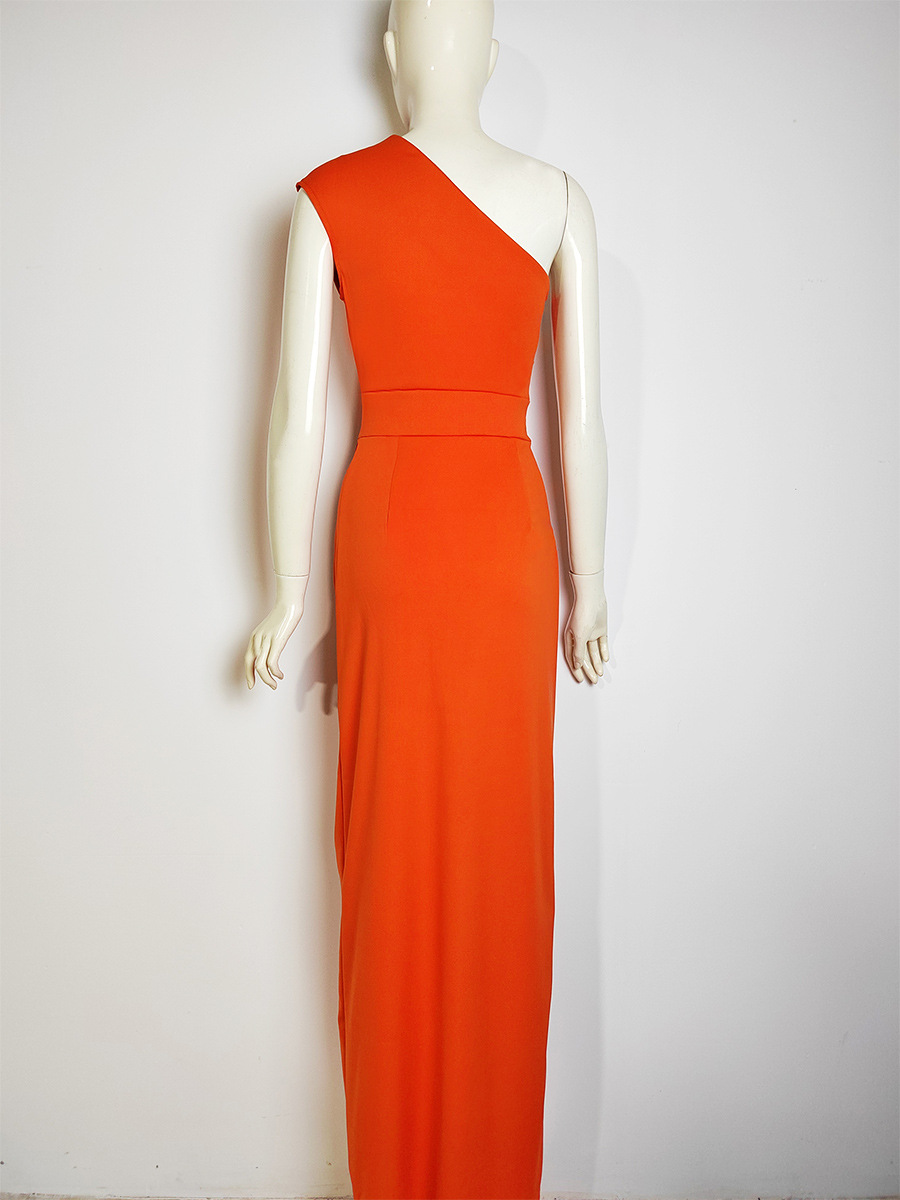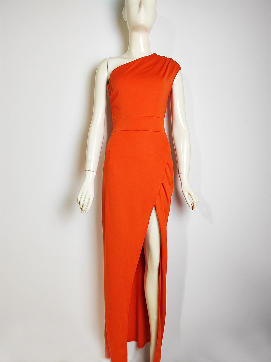 2024 새로운 유럽과 미국의 폭발 여성 싱글 어깨 높은 허리 전면 분할 우아한 원피스 아마존 핫 원피스 스커트스토어 가기