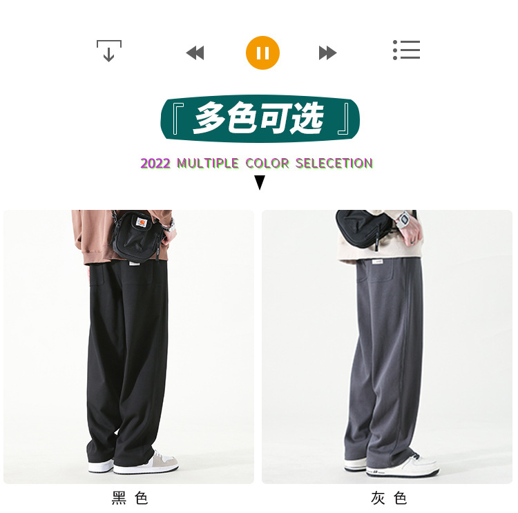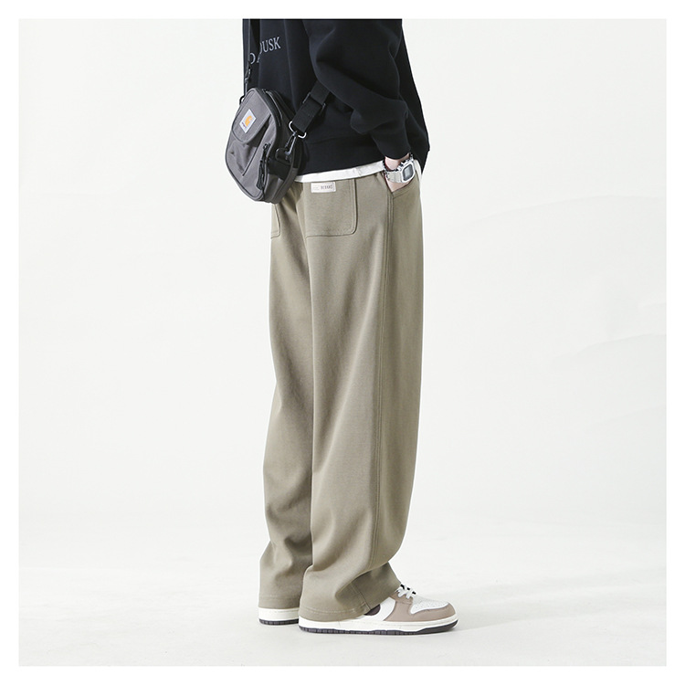 아메리칸 스타일 스트레이트 캐주얼 바지 남성용 봄과 가을 새로운 하이 스트리트 와이드 레그 팬츠 더피 잘 생긴 무거운 드레이핑 스포츠 바지