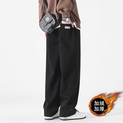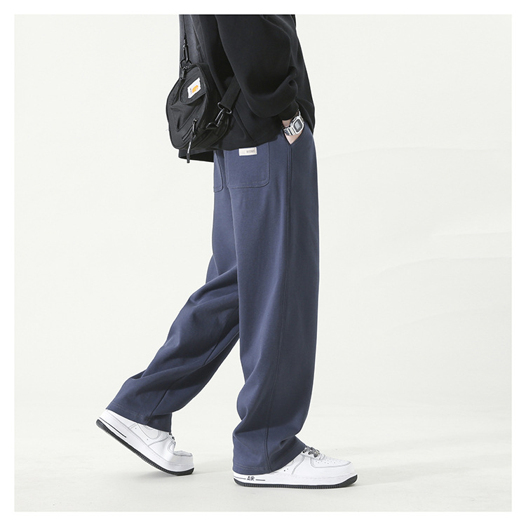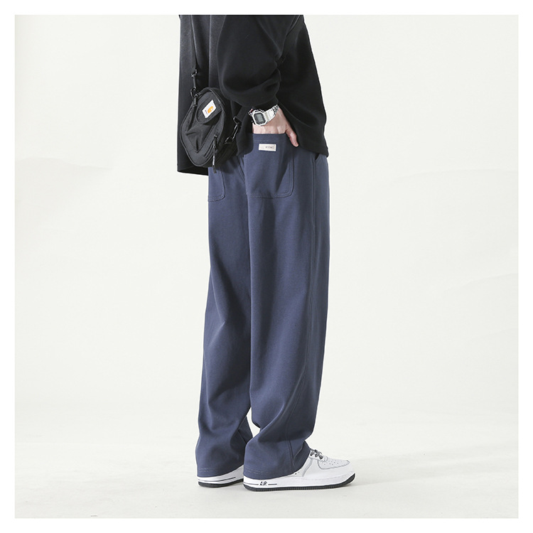 아메리칸 스타일 스트레이트 캐주얼 바지 남성용 봄과 가을 새로운 하이 스트리트 와이드 레그 팬츠 더피 잘 생긴 무거운 드레이핑 스포츠 바지스토어 가기